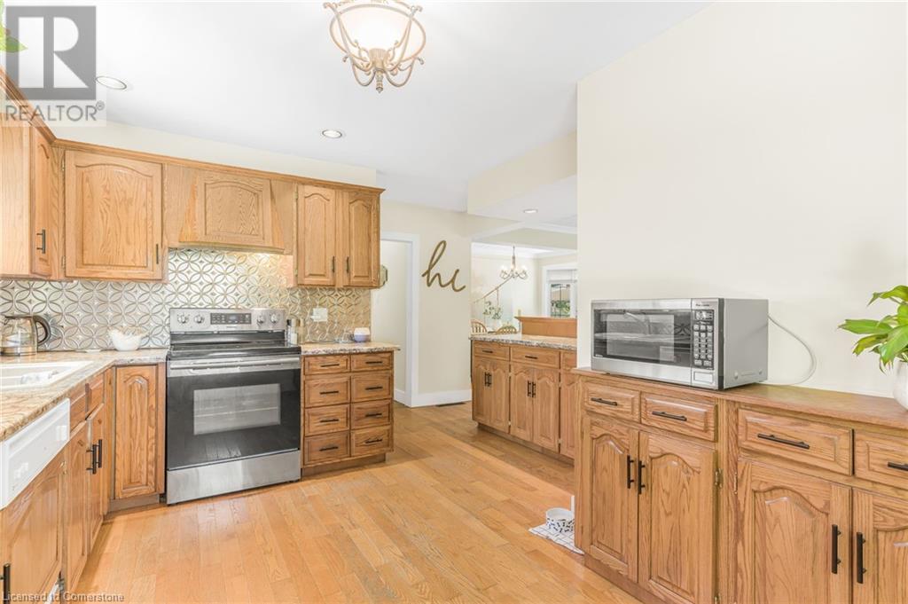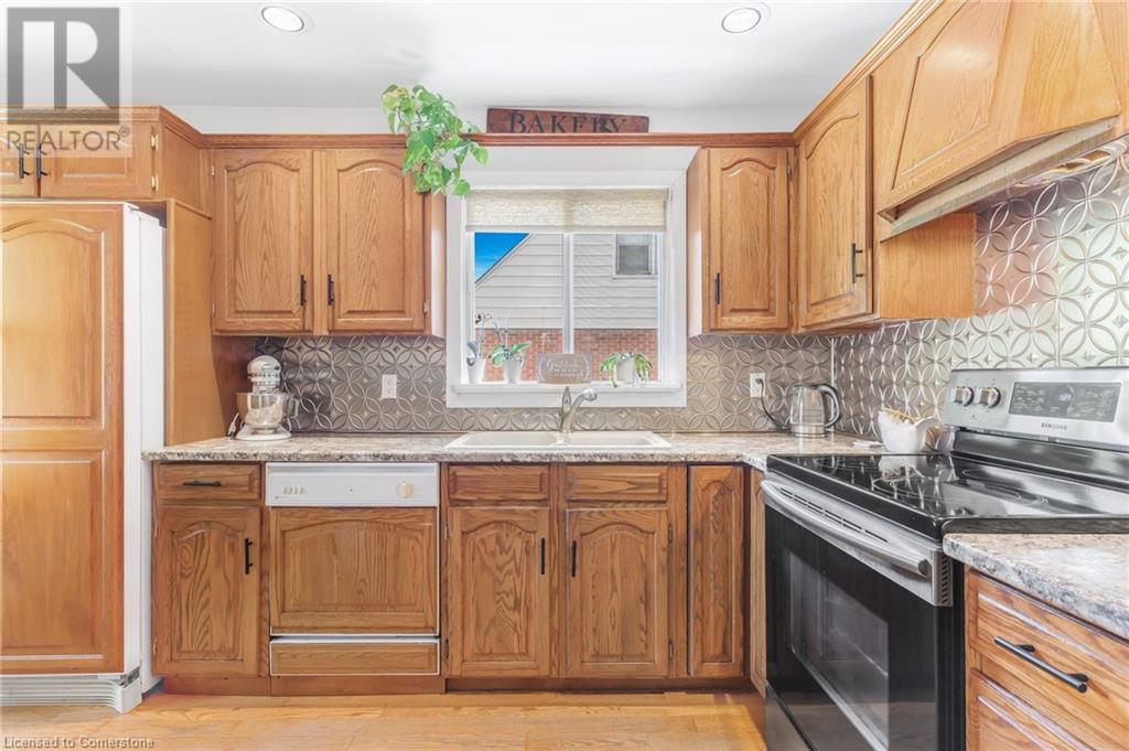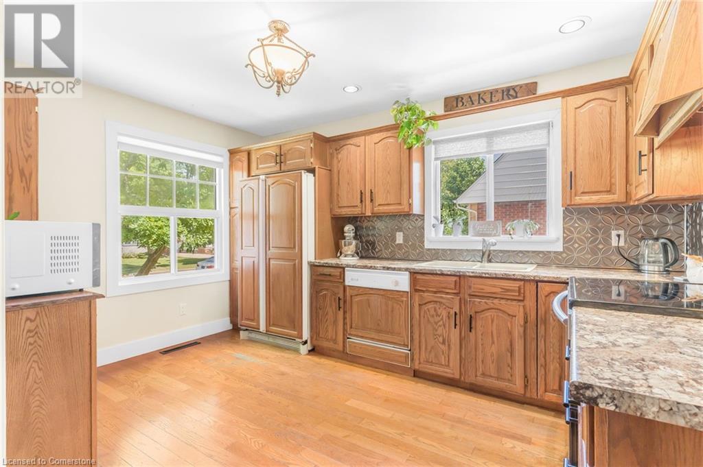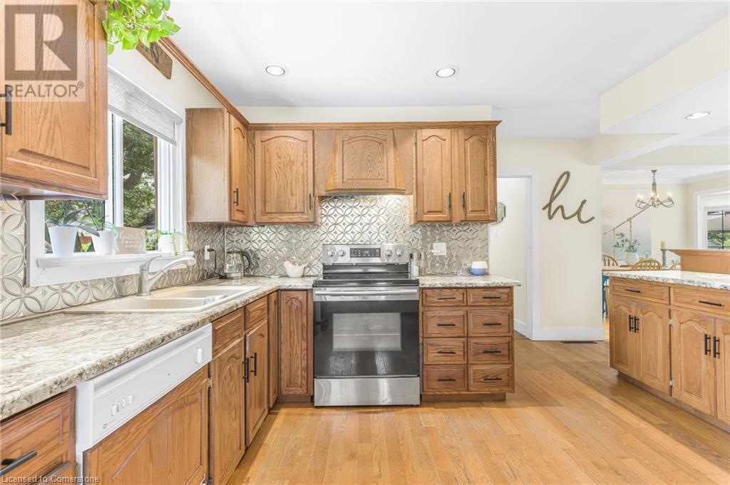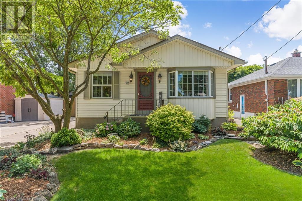 FABULOUS LOCATION for this adorable 2 + 1 bedroom home, beautifully maintained. Living Room features a large bow window, hardwood floors, new crowned moulding and is open to the formal dining room also with hardwood floors and new crowned moulding. Large kitchen with lots of oak cabinets and overlooks living room and dining room. Updated 4 pce bathroom and 2 bedrooms complete the main floor. Side door entry makes for a convenient access up to the main floor or down to the basement where you could easily create an in-law suite. There is a large rec room, newly installed bedroom, 3 pce bathroom and laundry room where you could install a small kitchenette. There is also a large utility/storage room. The whole main floor was painted, house was rewired and new panel box. Outside, there is beautiful front gardens, large concrete driveway, single car heated garage, covered back porch, pond in backyard, fenced. This home is a pleasure to view, and move in ready. (id:55009)