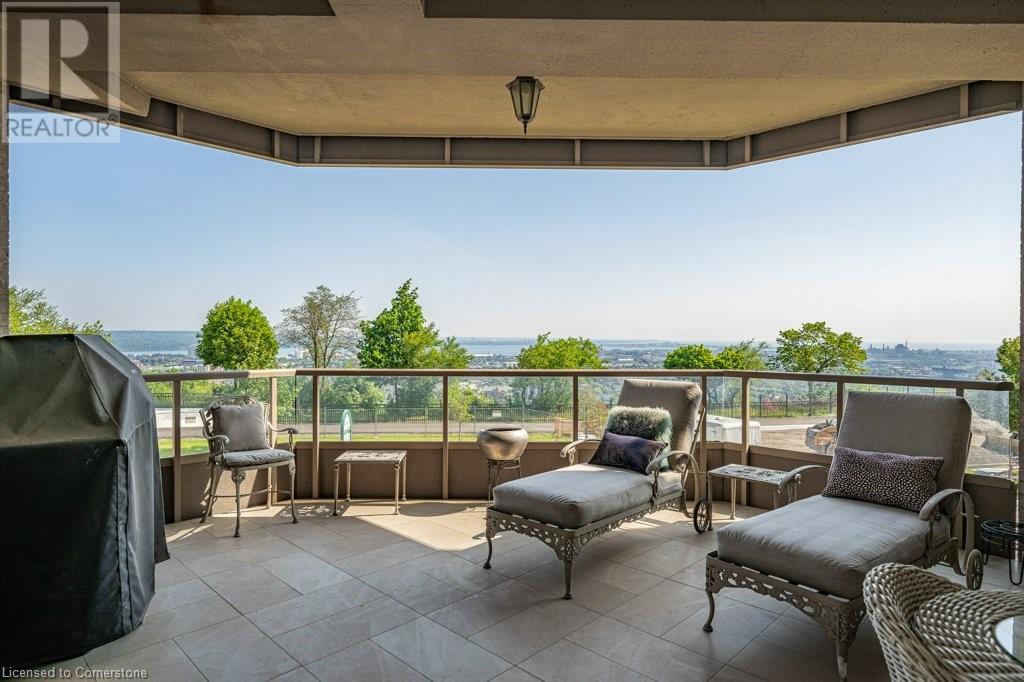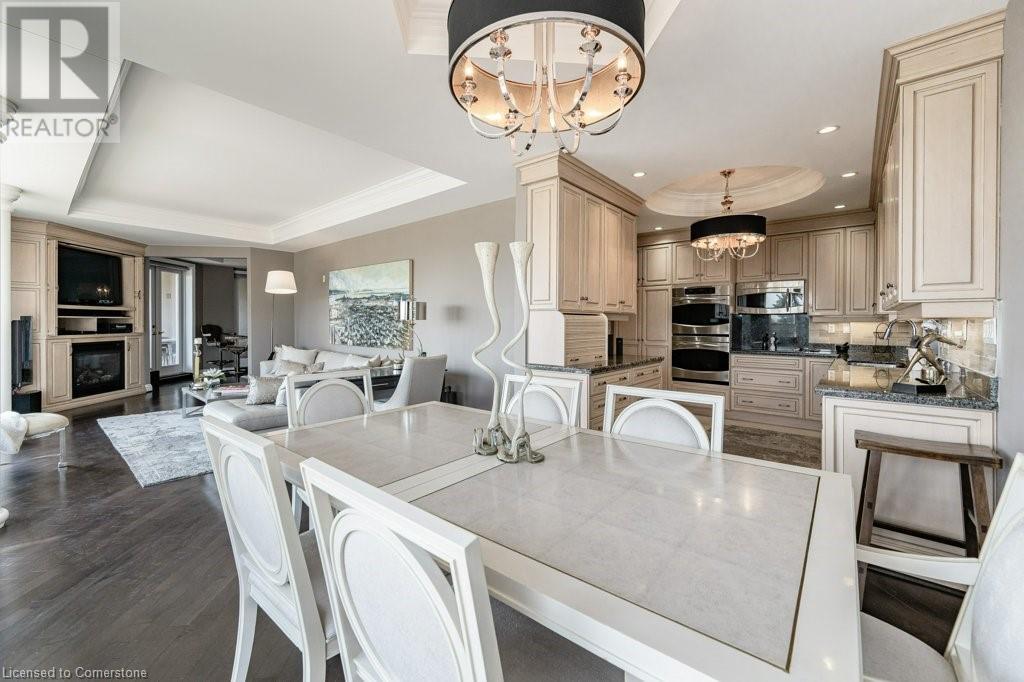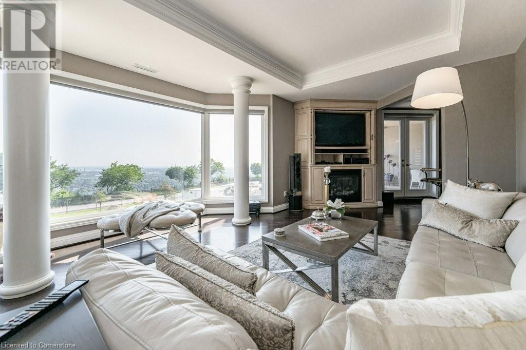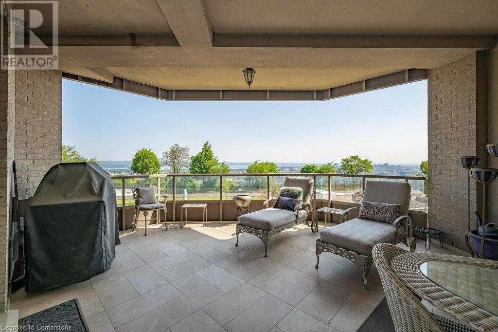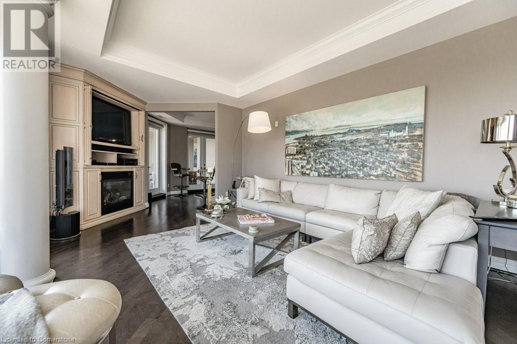 $1,170.61 MonthlyIndulge in breathtaking panoramic views of the City, Escarpment, Toronto skyline, and Lake Ontario from 'The Madison' an exclusive boutique building nestled on the Brow of Hamilton Mountain. This upscale 2400 sq. ft. residence boasts 3 bedrooms and 2 baths, exuding sophisticated luxury and complemented by a 400 sqft terrace, perfect for entertaining amidst the sparkling city lights. A private elevator directly to your suite, where natural light floods the space, highlighting coffered ceilings, crown molding, hardwood floors. Granite counters, pot lighting, extensive custom-built cabinetry add a touch of elegance throughout. An open-concept layout invites easy living, with a great room featuring a media center and gas fireplace, a dining area, and a gourmet kitchen equipped with two fridges, built-in microwave and ovens, a cooktop, and a dishwasher. Convenience meets luxury with laundry boasting built-in cabinetry, beverage fridge and side-by-side washer and dryer. Retreat to the spacious primary suite, boasting three walk-in closets and a spa-inspired 5-piece ensuite. The second bedroom enjoys its own separate balcony, a walk-in closet, and easy access to a 4-piece bath. The third bedroom/den provides a perfect space for remote work. This residence comes complete with two parking spots and a locker, offering both luxury and practicality for discerning homeowners. Don't miss out on this opportunity to elevate your lifestyle. Contact me today to arrange your exclusive tour! (id:55009)