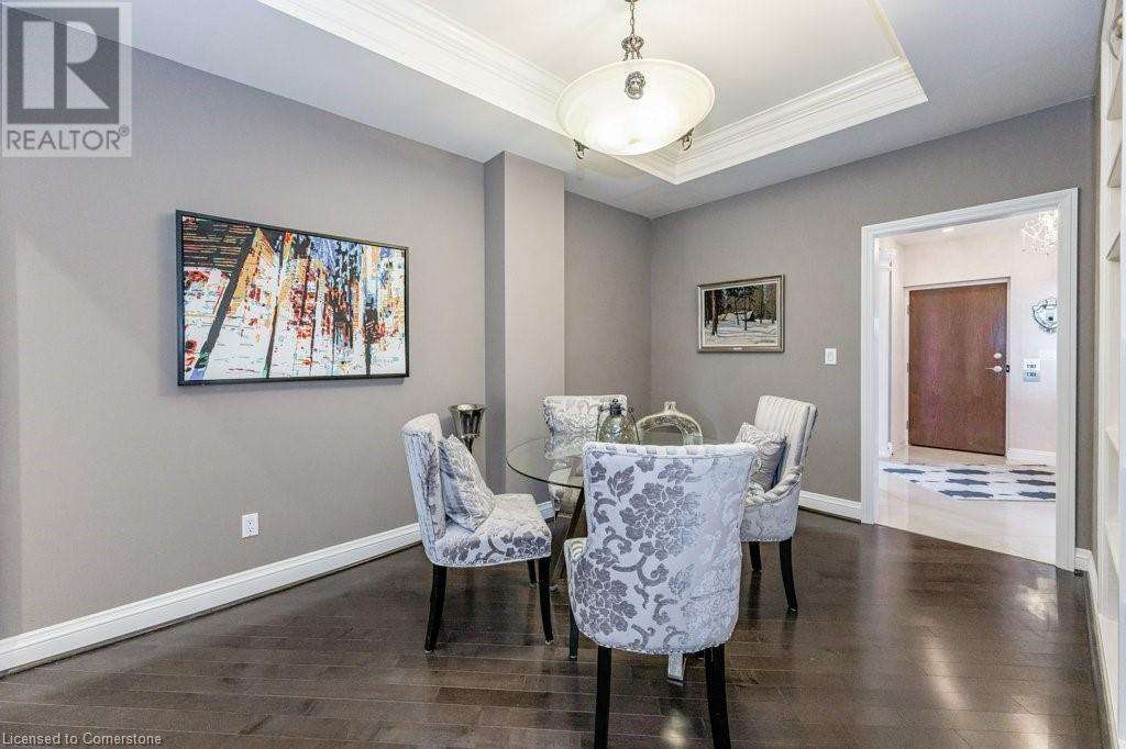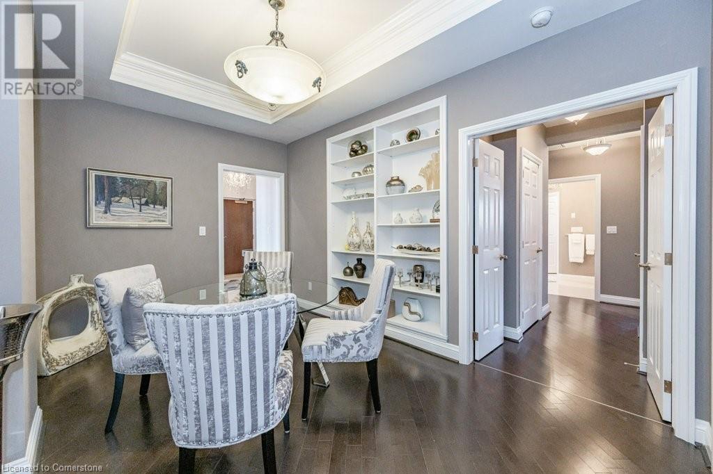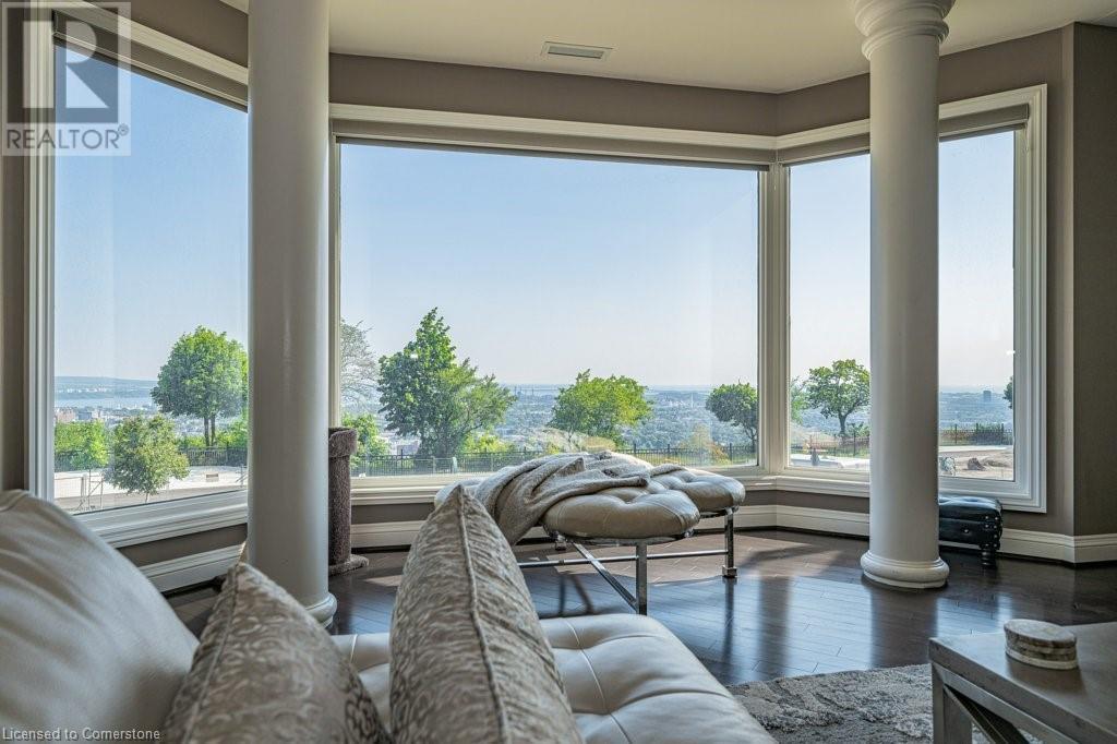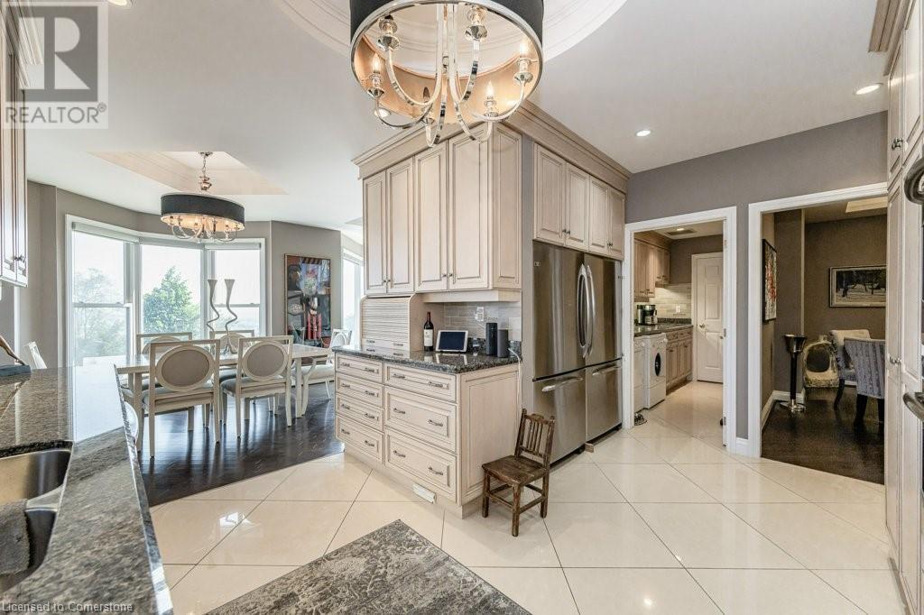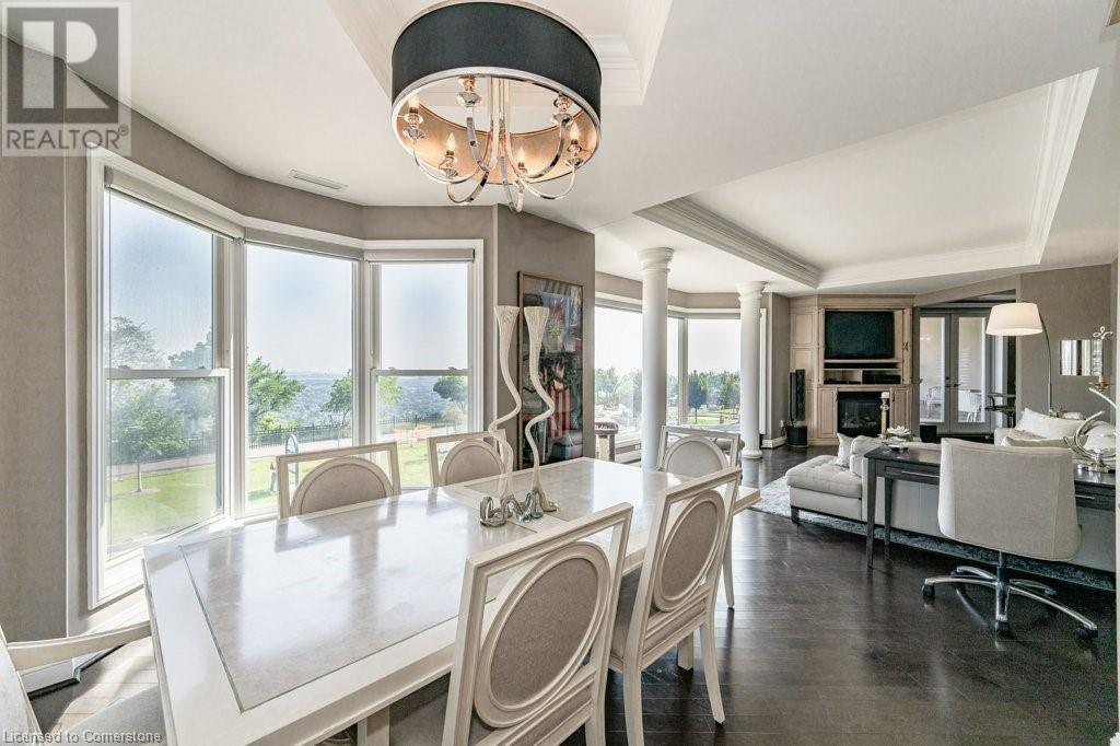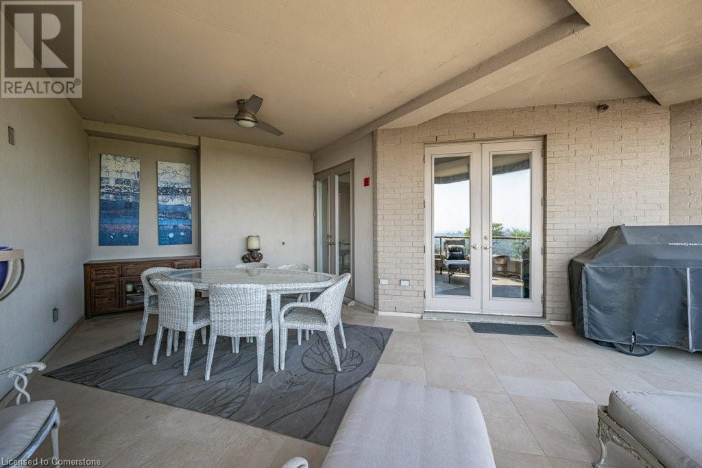 $1,170.61 MonthlyIndulge in breathtaking panoramic views of the City, Escarpment, Toronto skyline, and Lake Ontario from 'The Madison' an exclusive boutique building nestled on the Brow of Hamilton Mountain. This upscale 2400 sq. ft. residence boasts 3 bedrooms and 2 baths, exuding sophisticated luxury and complemented by a 400 sqft terrace, perfect for entertaining amidst the sparkling city lights. A private elevator directly to your suite, where natural light floods the space, highlighting coffered ceilings, crown molding, hardwood floors. Granite counters, pot lighting, extensive custom-built cabinetry add a touch of elegance throughout. An open-concept layout invites easy living, with a great room featuring a media center and gas fireplace, a dining area, and a gourmet kitchen equipped with two fridges, built-in microwave and ovens, a cooktop, and a dishwasher. Convenience meets luxury with laundry boasting built-in cabinetry, beverage fridge and side-by-side washer and dryer. Retreat to the spacious primary suite, boasting three walk-in closets and a spa-inspired 5-piece ensuite. The second bedroom enjoys its own separate balcony, a walk-in closet, and easy access to a 4-piece bath. The third bedroom/den provides a perfect space for remote work. This residence comes complete with two parking spots and a locker, offering both luxury and practicality for discerning homeowners. Don't miss out on this opportunity to elevate your lifestyle. Contact me today to arrange your exclusive tour! (id:55009)