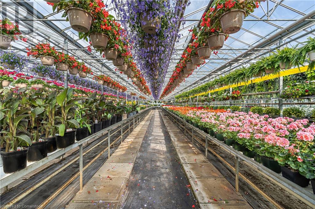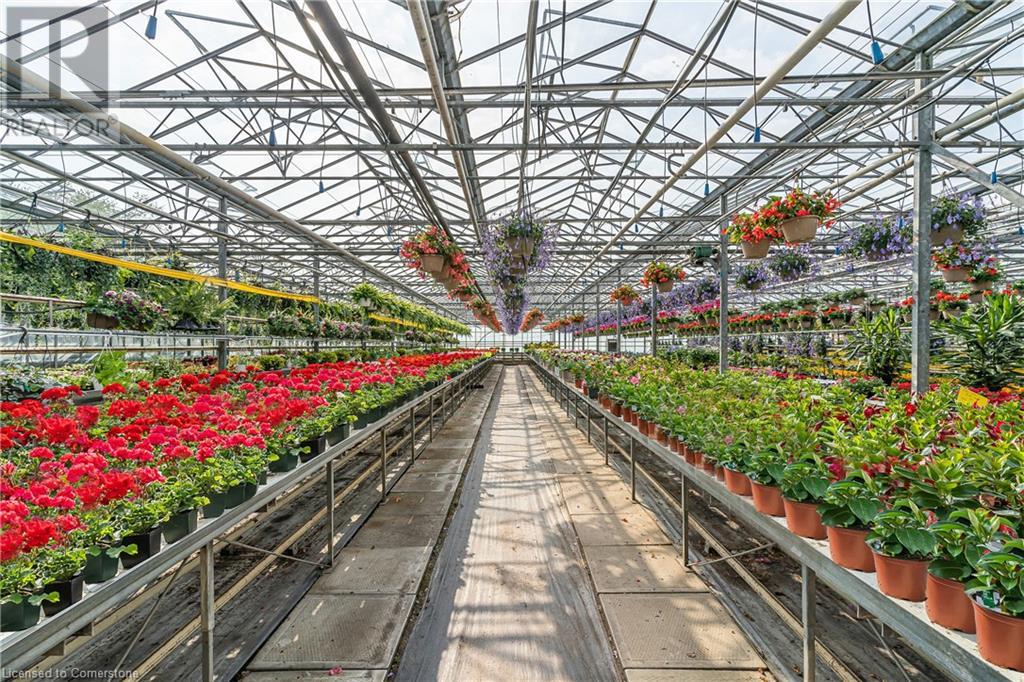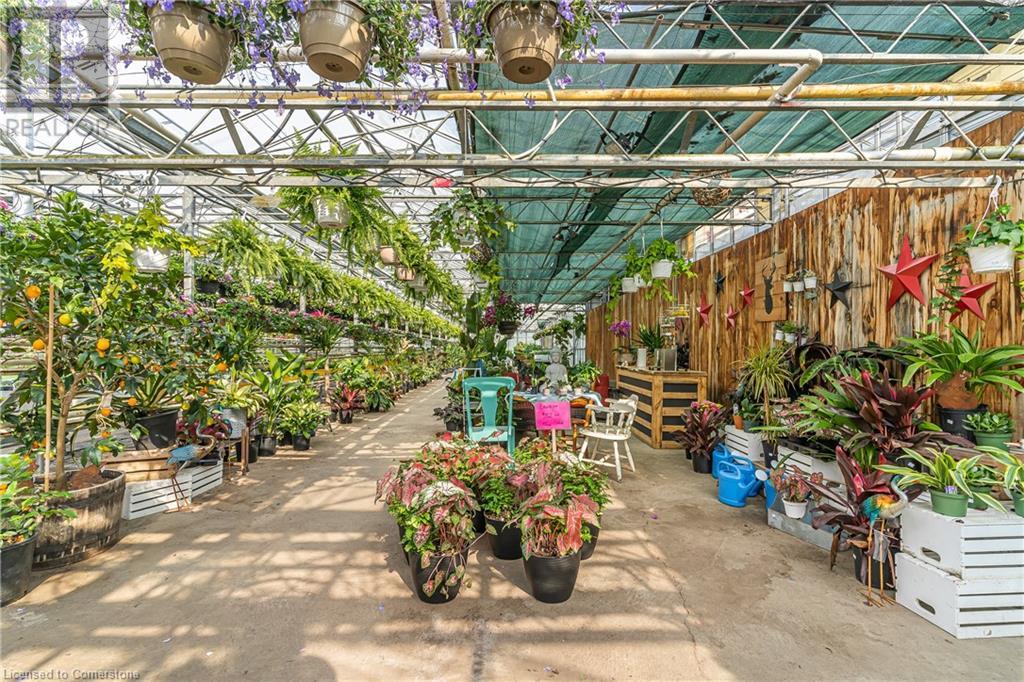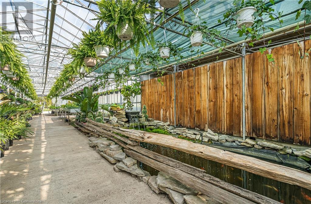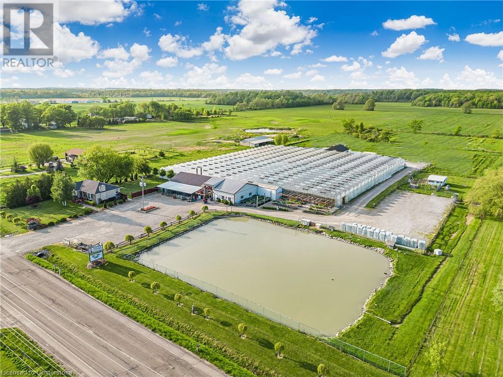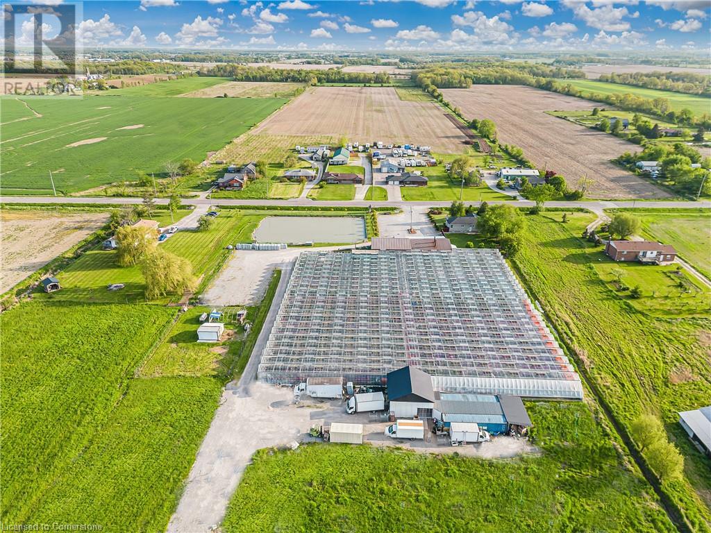 Welcome to this expansive 9 acre property offering a unique blend of residential comfort, a commercial greenhouse and acres of fertile land strategically located near main roads and transport routes for convenient access and only 10 mins from the QEW. Boasting 351 ft of frontage and 874 ft of depth providing ample space for various endeavours. The main residence, a charming 1,315 sq ft home with an unfinished basement, features hardwood and tile flooring throughout its 3 bedrooms and 1 bathroom. Modern amenities include an updated breaker panel, a 1800-gallon cistern, and fiber high-speed internet connectivity. Adjacent to the residence lies a remarkable glass Venlo greenhouse allowing year round growing opportunities and spanning 54,000 sq ft, equipped with natural gas furnaces, 600V 3-phase electrical service and a 3200 sq ft insulated Barn/Storefront with office space, lunch room, two cashier stations, a Walk-in insulated cooler, ideal for agricultural pursuits. The property also includes two gravel car parking lots, a back gravel loading area, an outdoor covered area and bench area for added convenience and a 140’x110’ deep pond feeding the greenhouse. Additional features comprise 2 sea cans, a 2 Bay Loading Area with ample storage and a fenced-in chicken coop area spanning 6,000 sq ft. With its versatile infrastructure and expansive grounds, this property presents a rare opportunity for those seeking a harmonious blend of rural living and commercial enterprise. (id:55009)