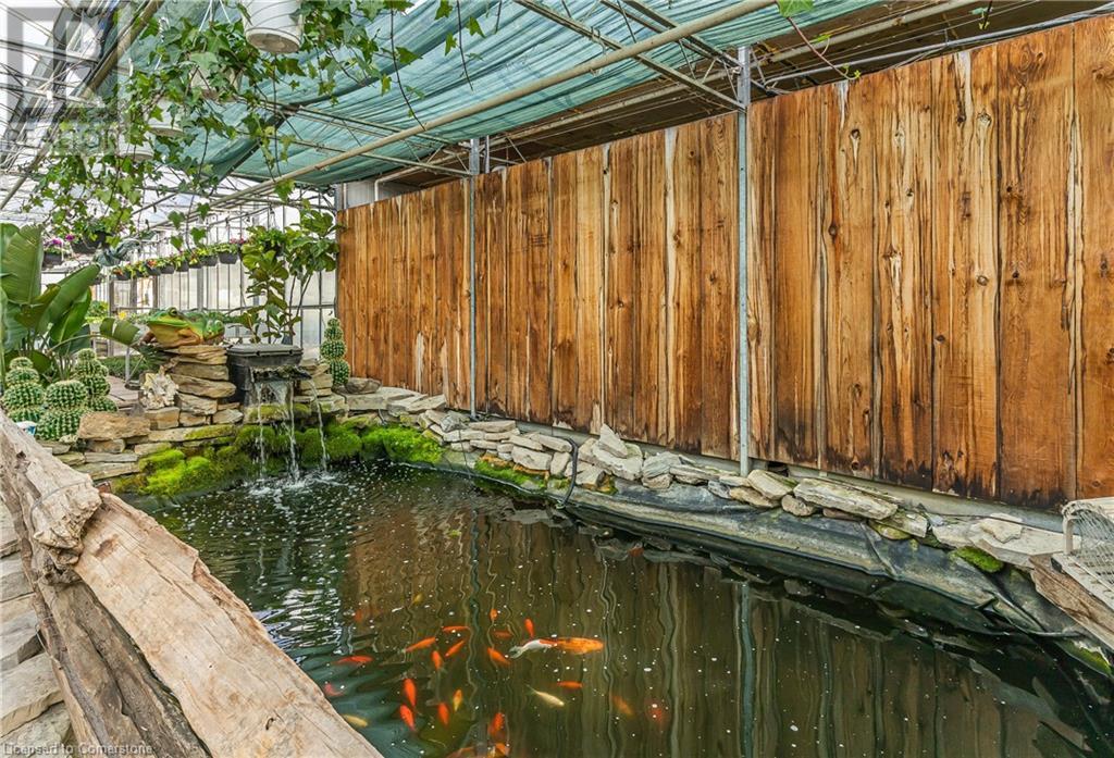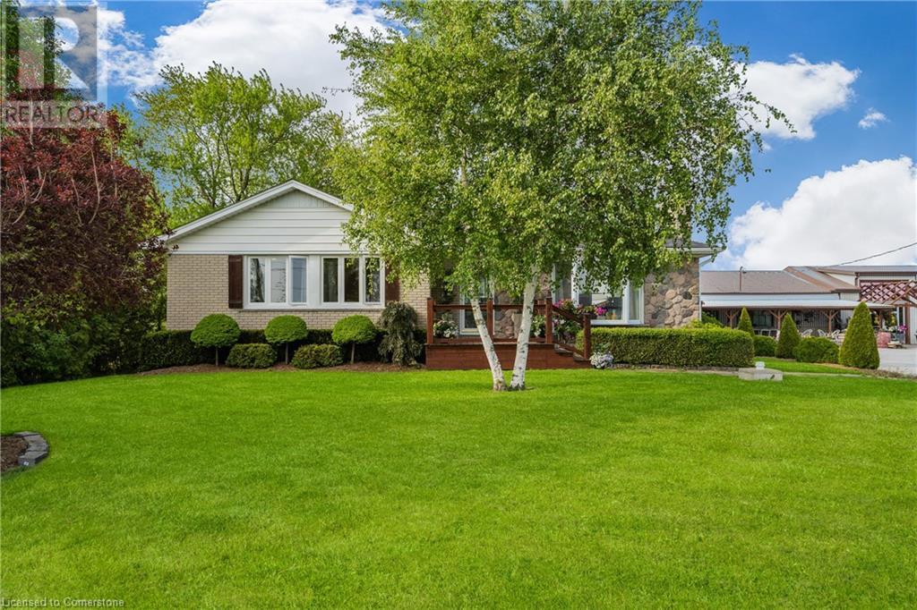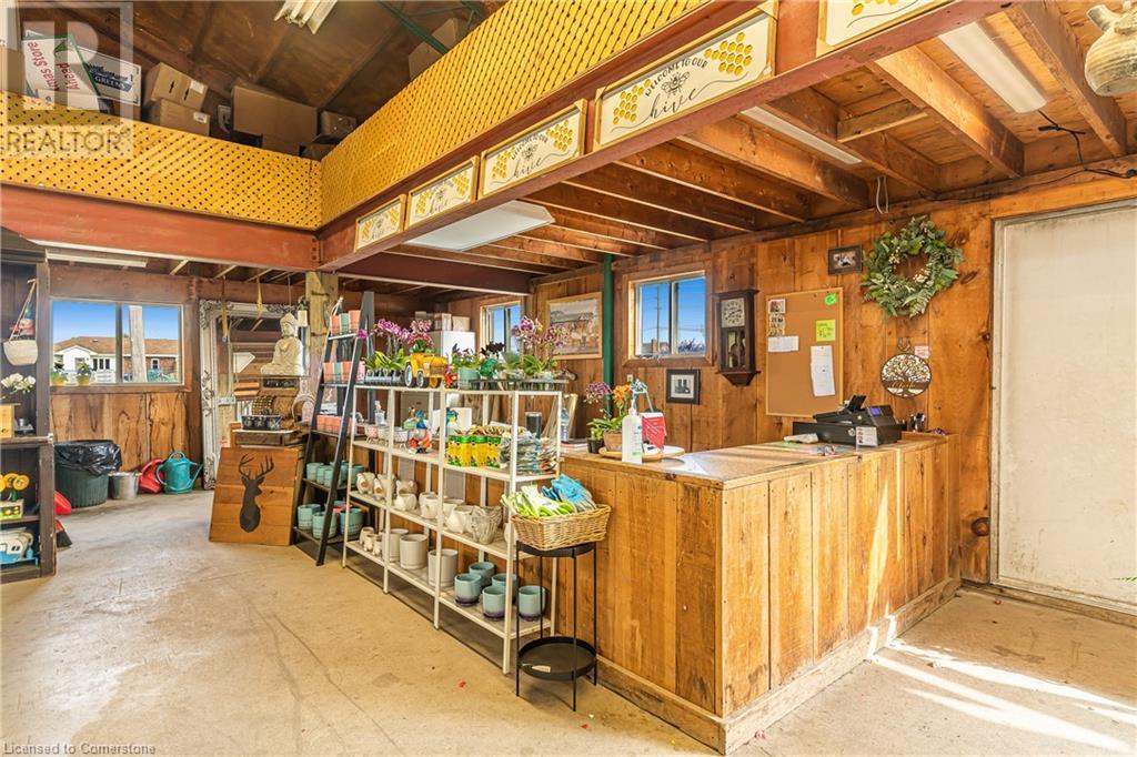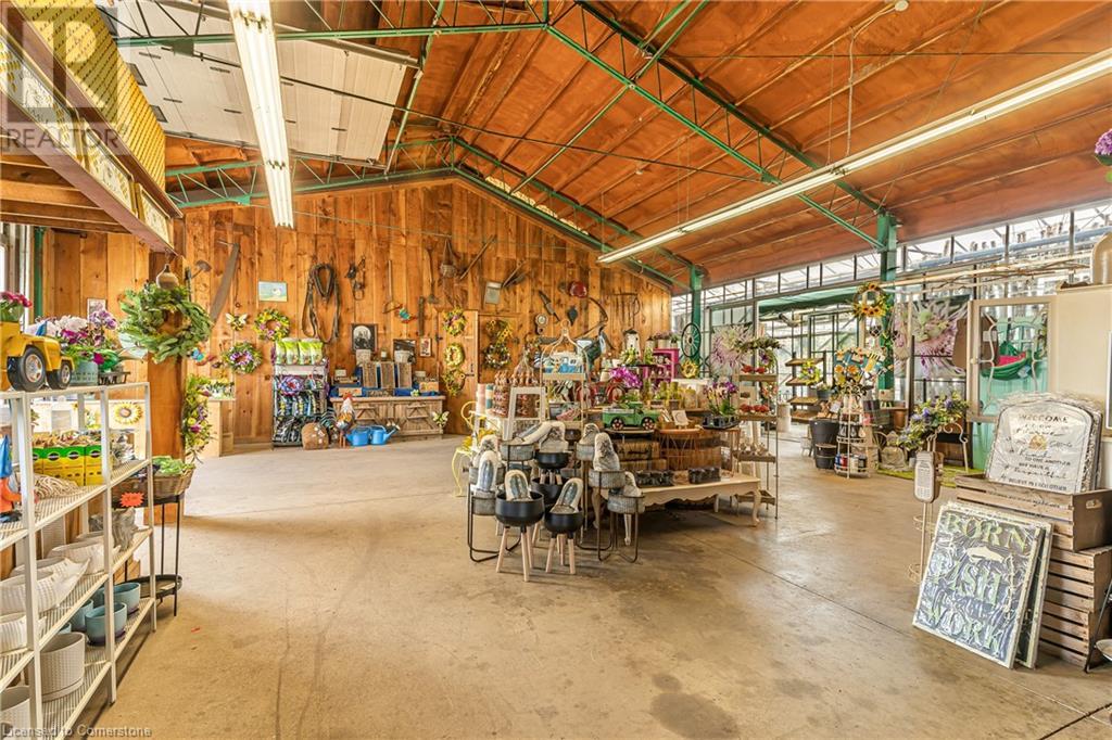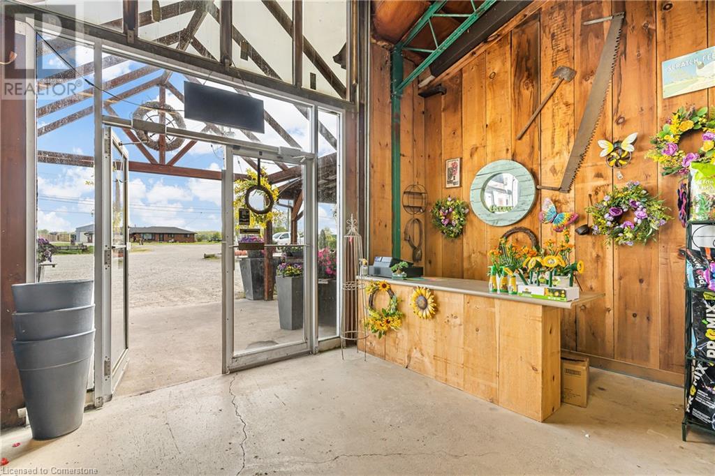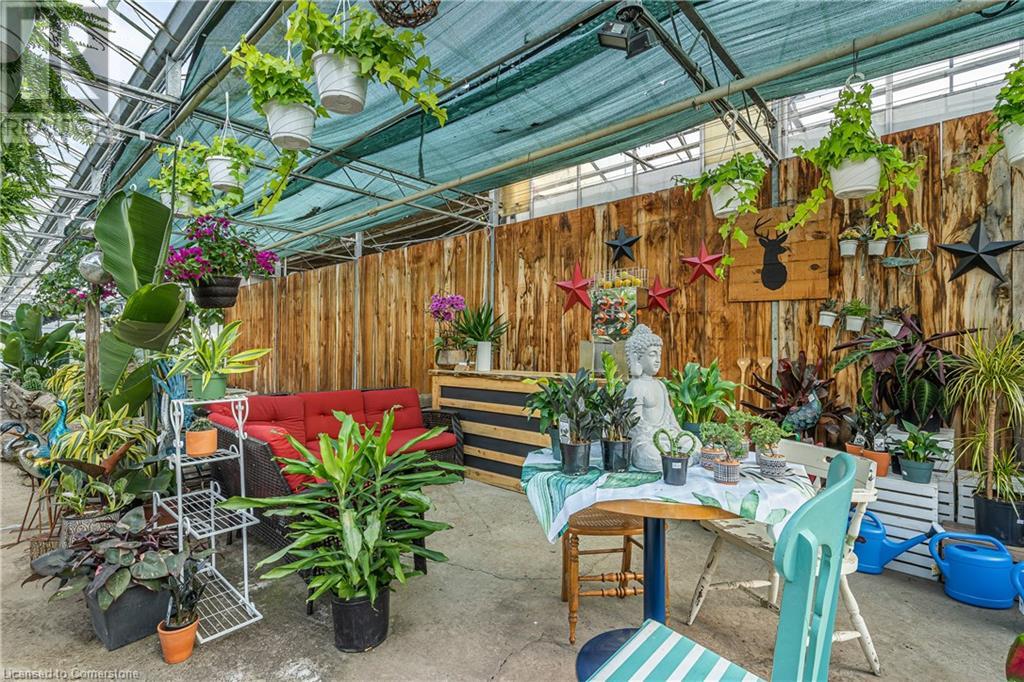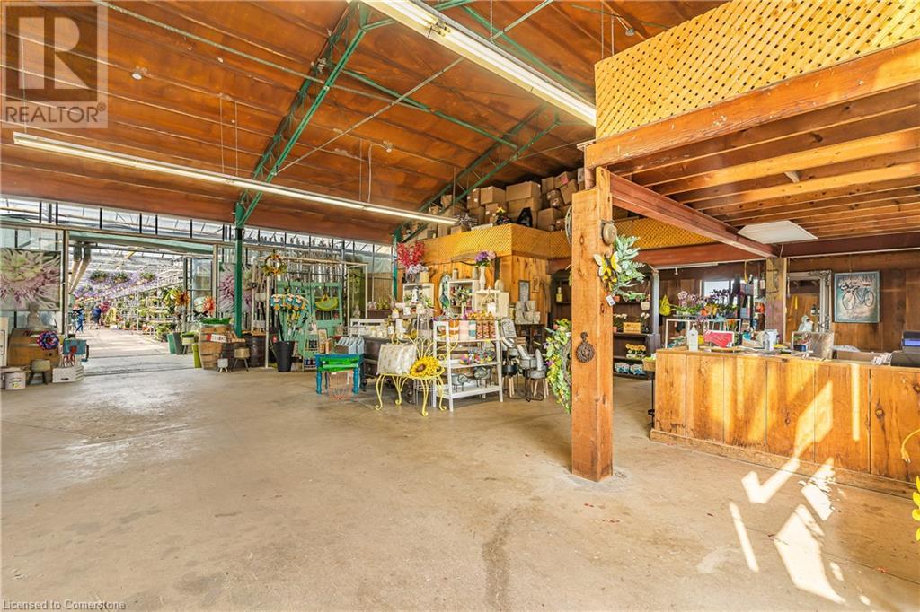 Welcome to this expansive 9 acre property offering a unique blend of residential comfort, a commercial greenhouse and acres of fertile land strategically located near main roads and transport routes for convenient access and only 10 mins from the QEW. Boasting 351 ft of frontage and 874 ft of depth providing ample space for various endeavours. The main residence, a charming 1,315 sq ft home with an unfinished basement, features hardwood and tile flooring throughout its 3 bedrooms and 1 bathroom. Modern amenities include an updated breaker panel, a 1800-gallon cistern, and fiber high-speed internet connectivity. Adjacent to the residence lies a remarkable glass Venlo greenhouse allowing year round growing opportunities and spanning 54,000 sq ft, equipped with natural gas furnaces, 600V 3-phase electrical service and a 3200 sq ft insulated Barn/Storefront with office space, lunch room, two cashier stations, a Walk-in insulated cooler, ideal for agricultural pursuits. The property also includes two gravel car parking lots, a back gravel loading area, an outdoor covered area and bench area for added convenience and a 140’x110’ deep pond feeding the greenhouse. Additional features comprise 2 sea cans, a 2 Bay Loading Area with ample storage and a fenced-in chicken coop area spanning 6,000 sq ft. With its versatile infrastructure and expansive grounds, this property presents a rare opportunity for those seeking a harmonious blend of rural living and commercial enterprise. (id:55009)