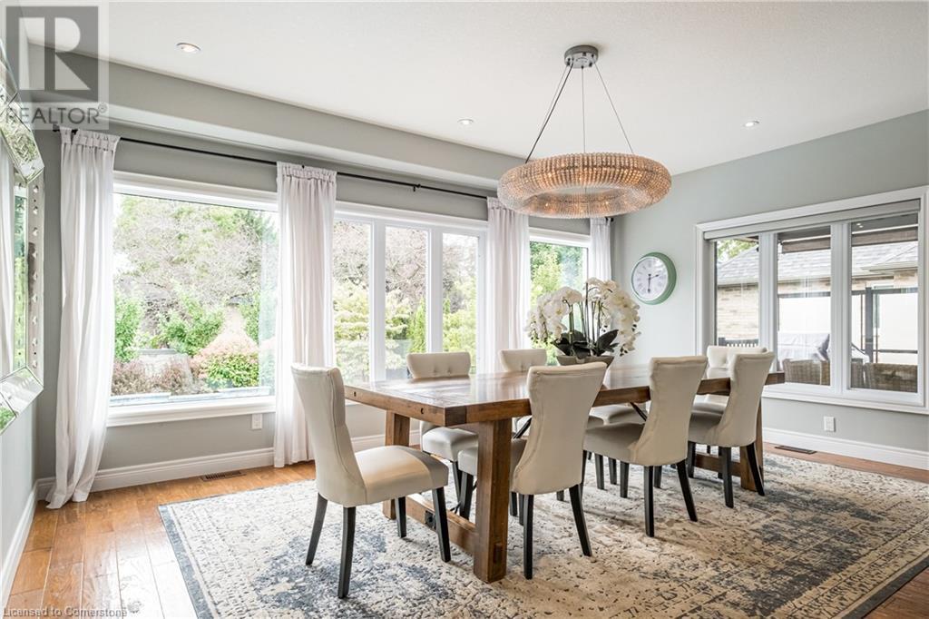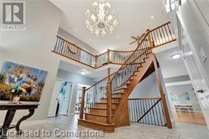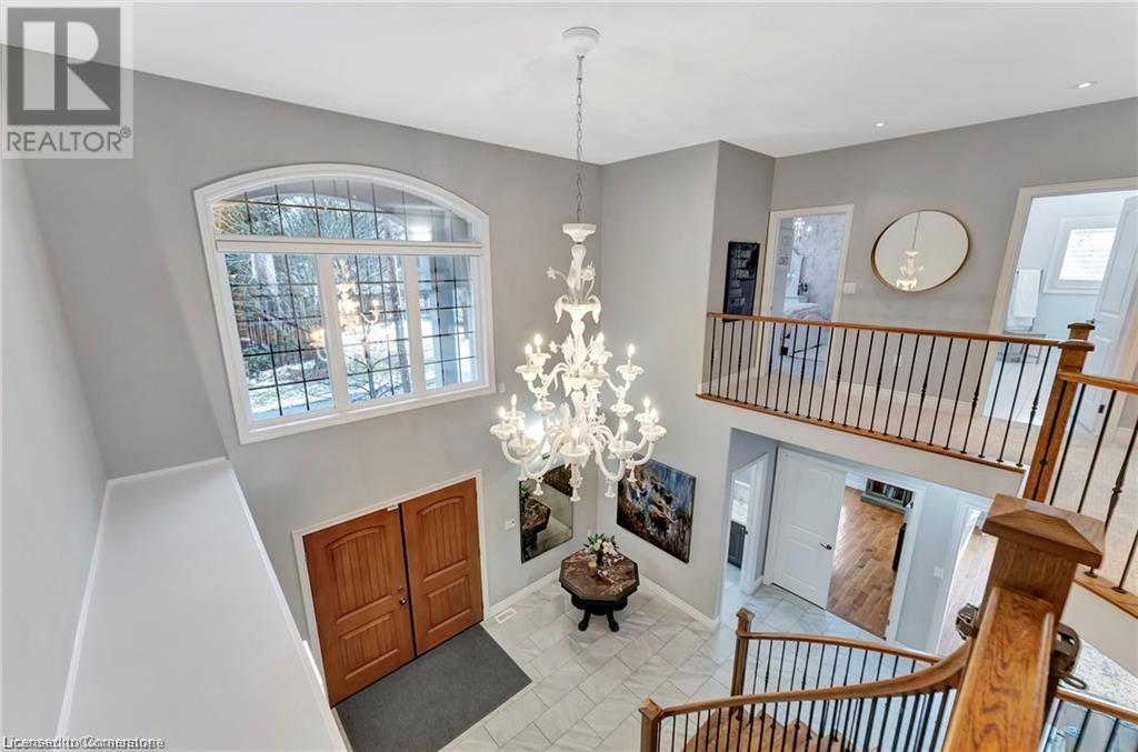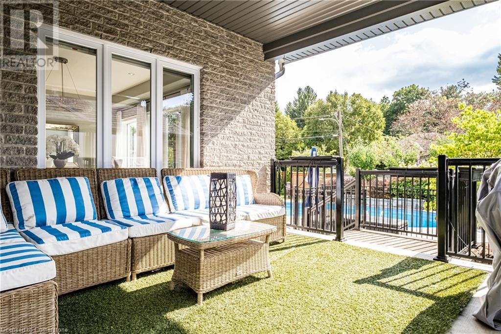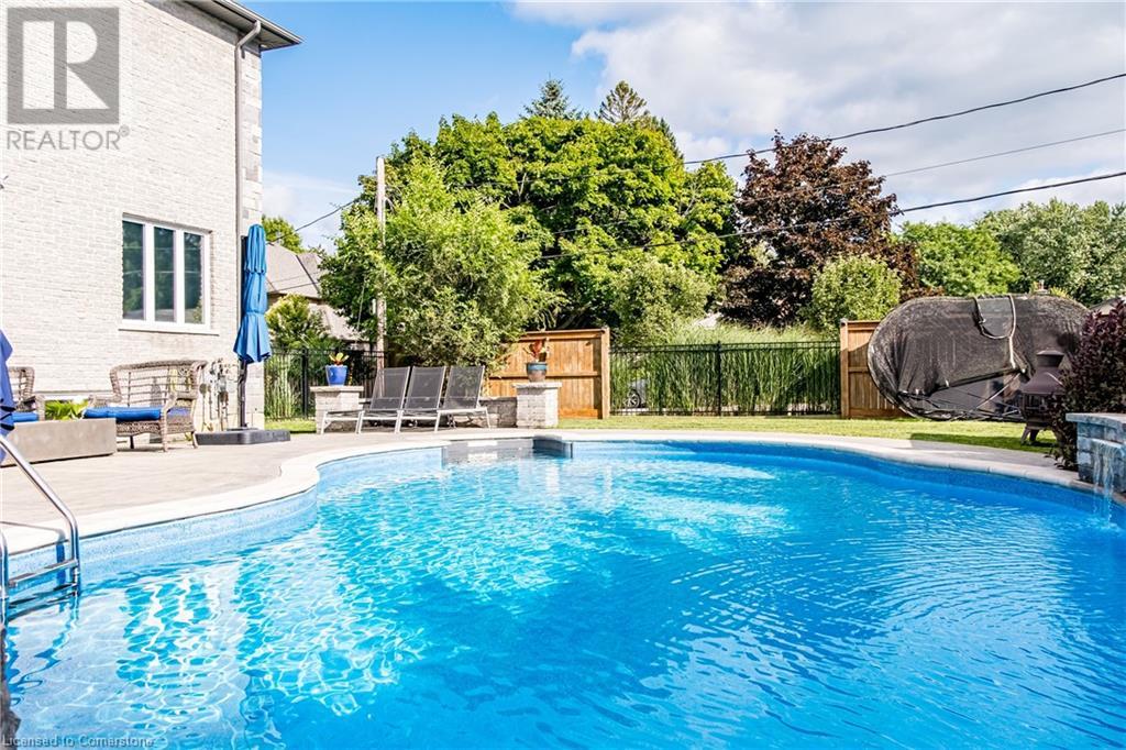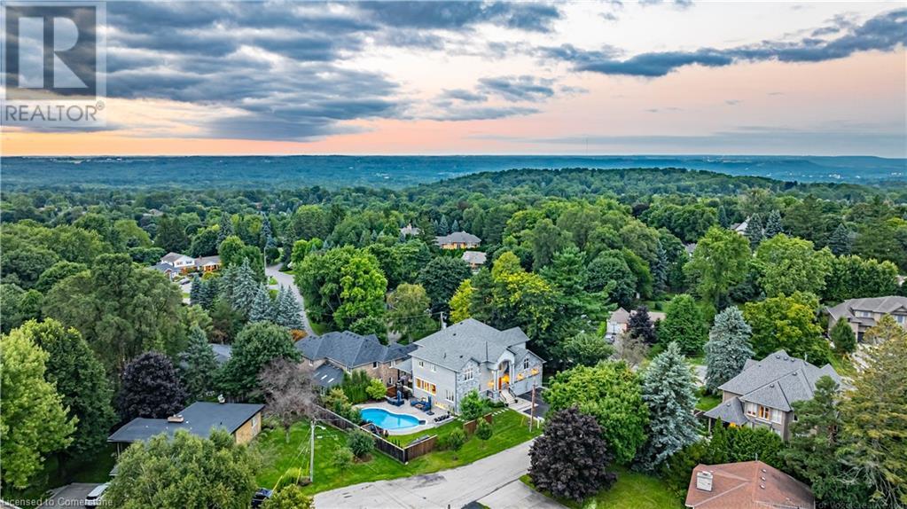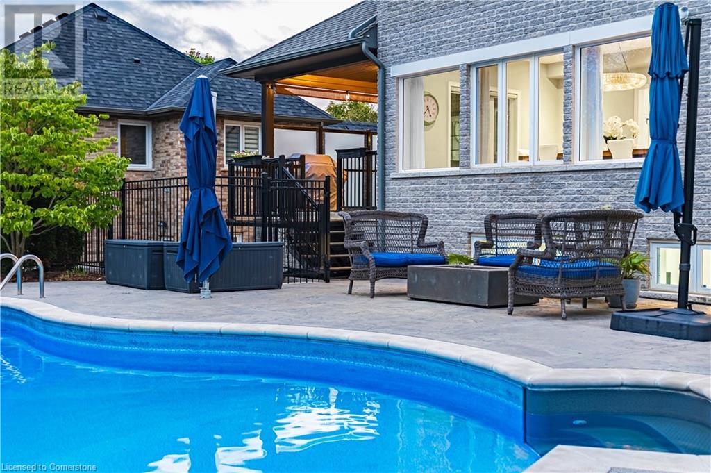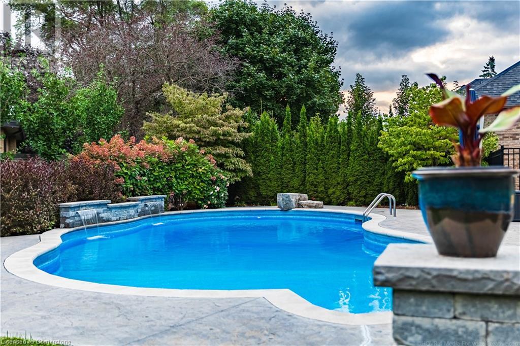 Luxury living in a quiet mature treed setting surrounded by nearby nature trails, all the amenities, restaurants, shops, excellent schools in walking distance. This Ancaster stunner has a backyard oasis that should not be missed. Immerse yourself in the pool with serene views of the professionally landscaped gardens throughout and surrounding trees. A separate covered patio offers a second lounge area outdoors. No expense was spared or detail overlooked with the extensive list of upgrades throughout. The grand entryway and foyer make a lasting impression as you ascend the grand staircase to the second level. Here, you'll find five well-appointed bedrooms, including a luxurious primary suite with a custom walk-in closet and a 5-piece ensuite bath. Fully finished high and bright walk out basement...possible multi generational living. With over 5,500 sq/ft of living space this 5+1 bedroom home has it all. Home Office w/ double closets and beautiful windows (option as a main floor bedroom), OoohLaLA oversized Quartz counter space and Island* 9ft ceilings throughout, oversized double car garage, luxury Light fixtures, backup generator, Mudroom w/ built-ins, R/O water, water softener, custom barn doors, privacy film on windows, safe and sound insulation throughout, Ecobee thermostat with remote sensors plus more. So much more to describe! This impeccable home epitomizes comfort and style, promising an unparalleled living experience in this beautiful sought after Ancaster locale. (id:55009)