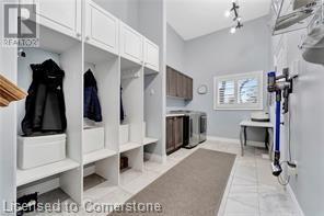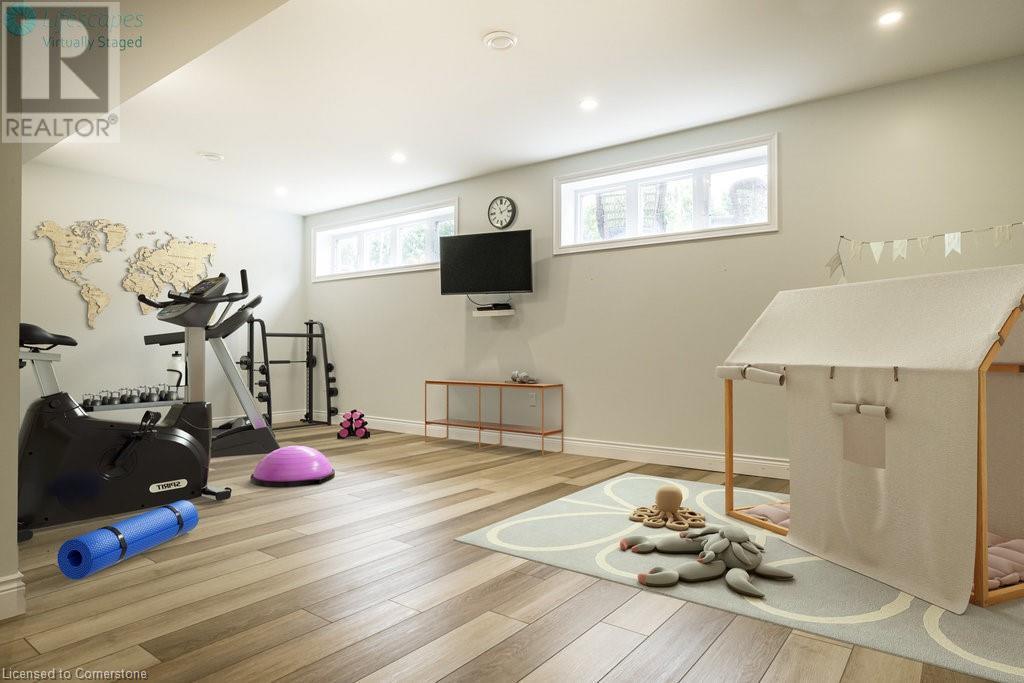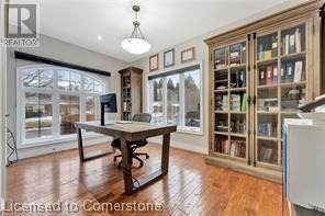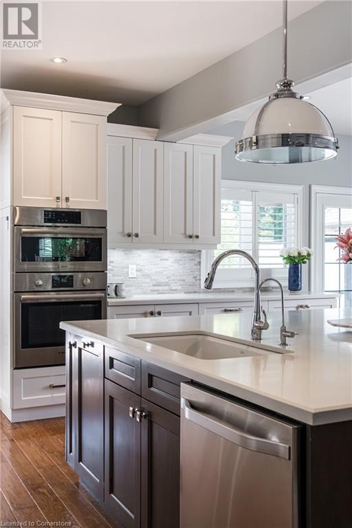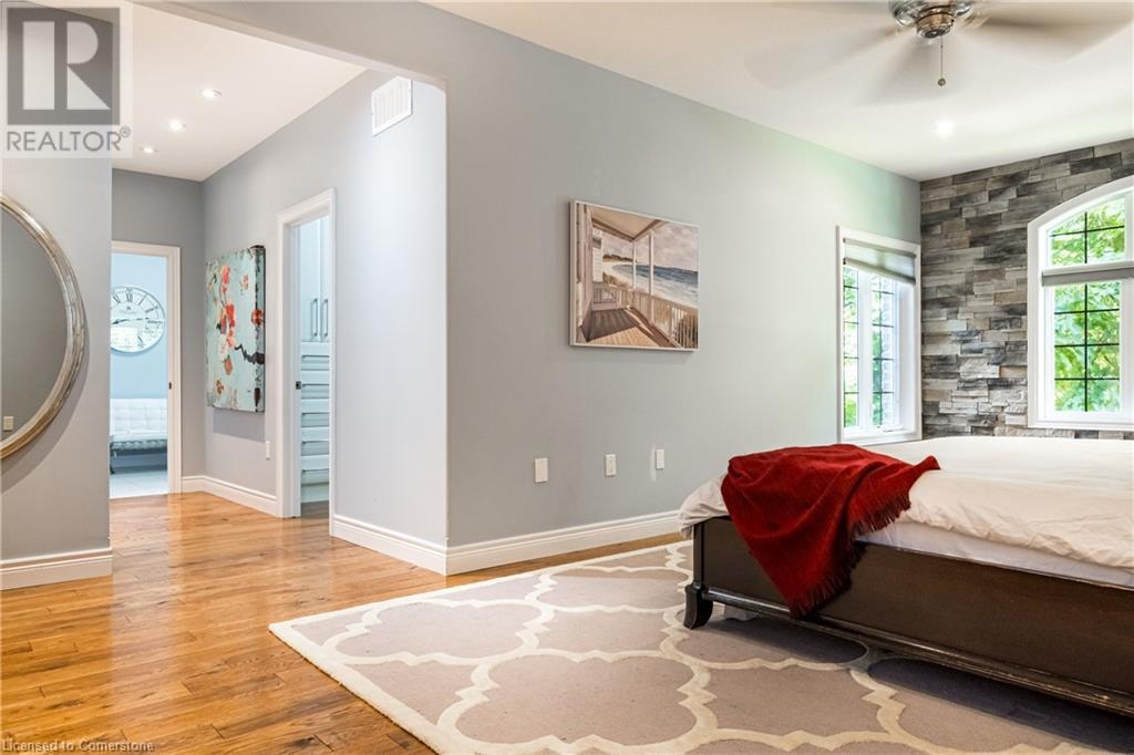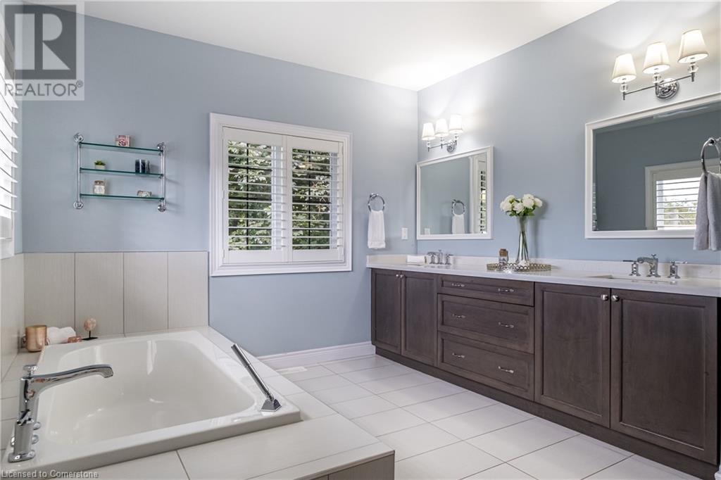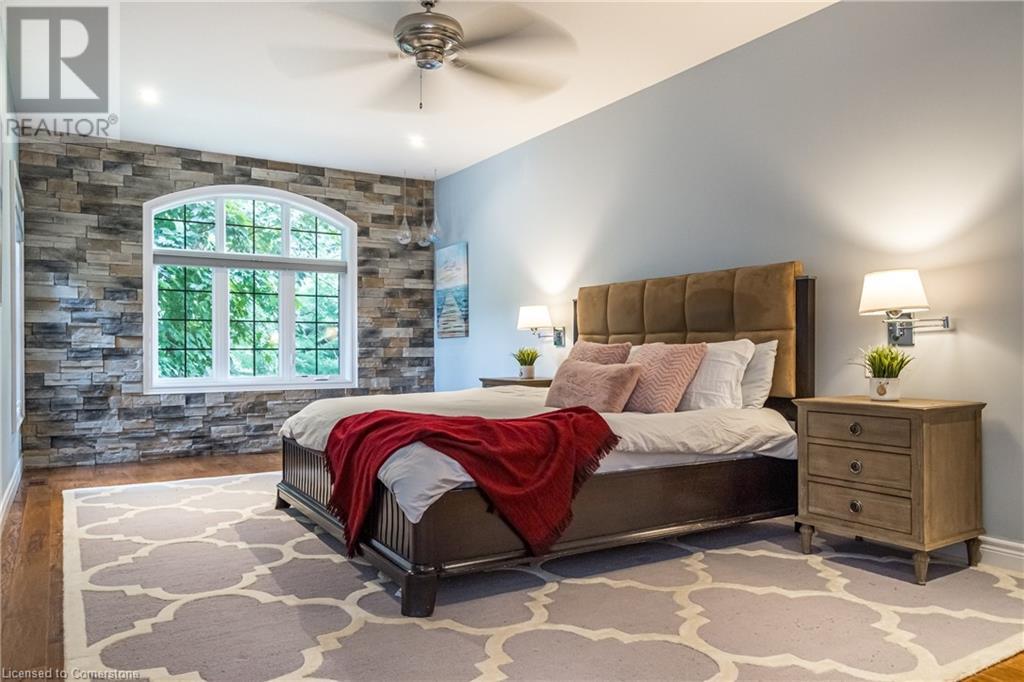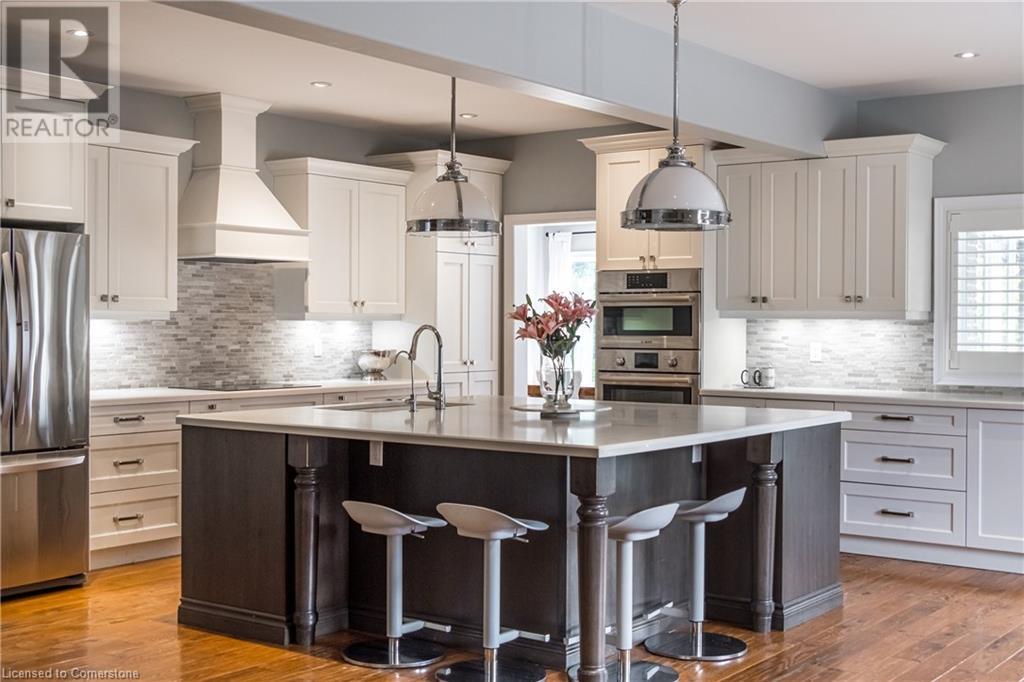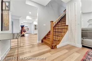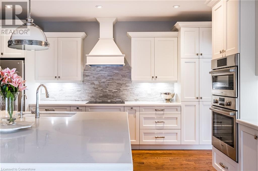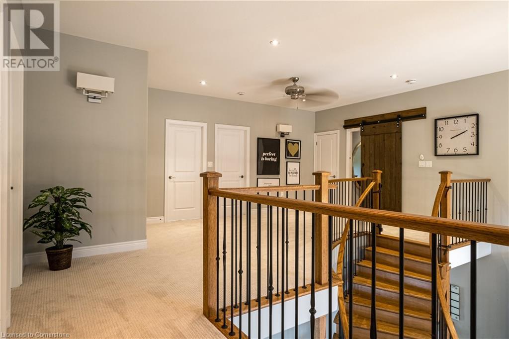 Luxury living in a quiet mature treed setting surrounded by nearby nature trails, all the amenities, restaurants, shops, excellent schools in walking distance. This Ancaster stunner has a backyard oasis that should not be missed. Immerse yourself in the pool with serene views of the professionally landscaped gardens throughout and surrounding trees. A separate covered patio offers a second lounge area outdoors. No expense was spared or detail overlooked with the extensive list of upgrades throughout. The grand entryway and foyer make a lasting impression as you ascend the grand staircase to the second level. Here, you'll find five well-appointed bedrooms, including a luxurious primary suite with a custom walk-in closet and a 5-piece ensuite bath. Fully finished high and bright walk out basement...possible multi generational living. With over 5,500 sq/ft of living space this 5+1 bedroom home has it all. Home Office w/ double closets and beautiful windows (option as a main floor bedroom), OoohLaLA oversized Quartz counter space and Island* 9ft ceilings throughout, oversized double car garage, luxury Light fixtures, backup generator, Mudroom w/ built-ins, R/O water, water softener, custom barn doors, privacy film on windows, safe and sound insulation throughout, Ecobee thermostat with remote sensors plus more. So much more to describe! This impeccable home epitomizes comfort and style, promising an unparalleled living experience in this beautiful sought after Ancaster locale. (id:55009)