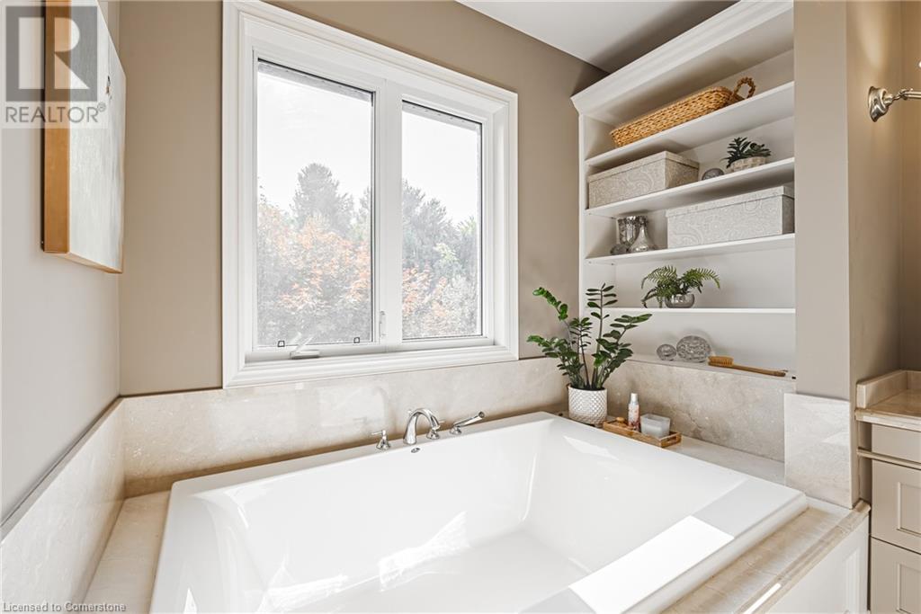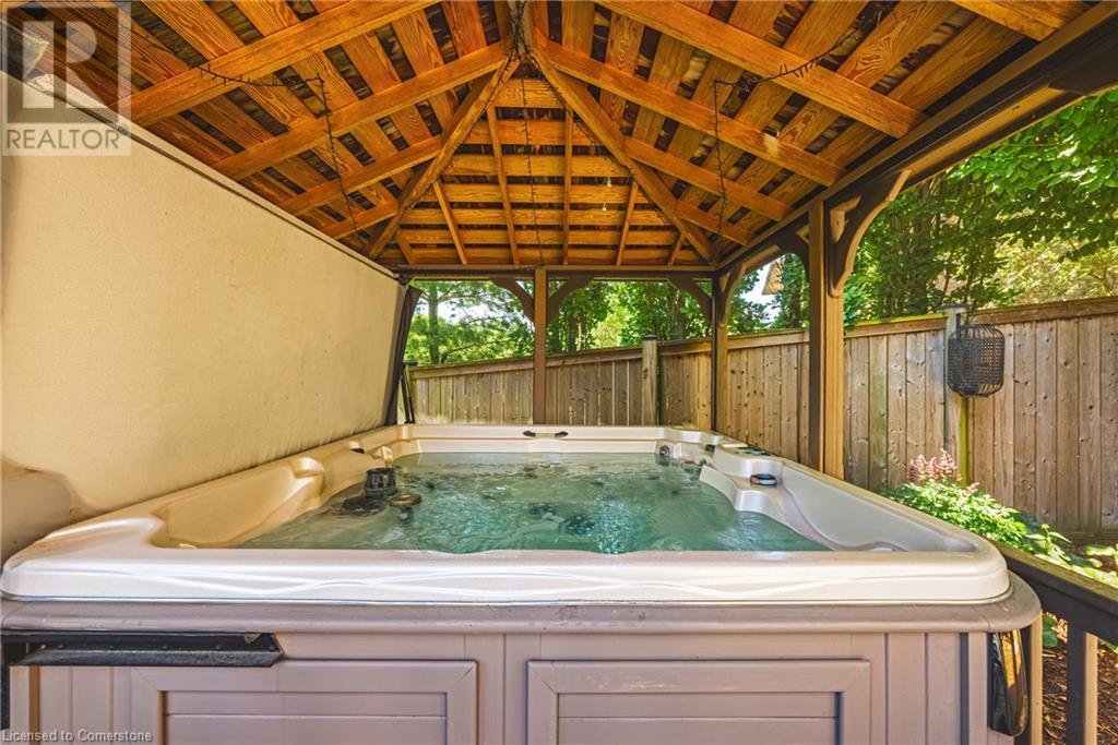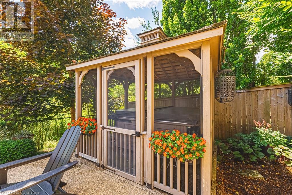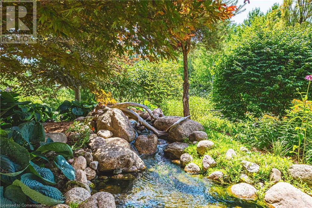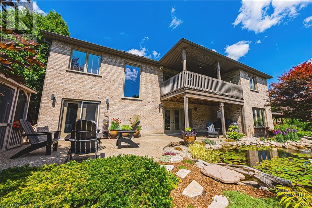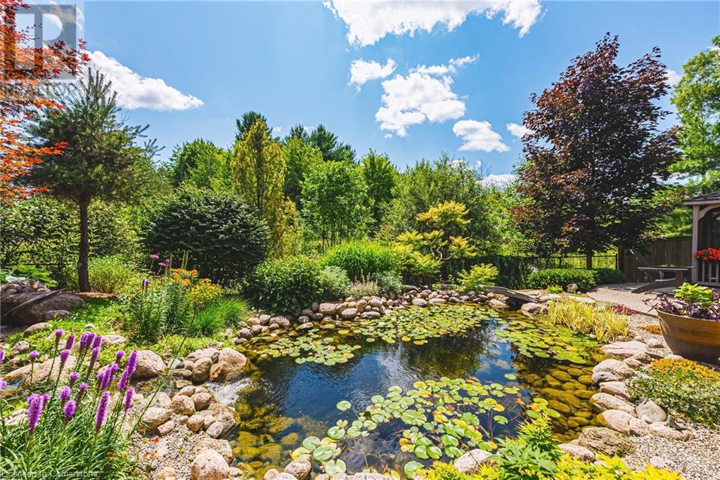 Incredible Lucchetta built bungalow on a quiet court in Welland's prestigious Brookhaven community. This meticulously crafted home offers 4+1 bedrooms and a finished basement with surround sound, a wet bar and a walkout to the serene backyard. The private primary suite boasts a spacious walk-in closet, luxurious ensuite, and access to a balcony overlooking the beautifully landscaped grounds. The backyard is an oasis with lush greenspace, a peaceful koi pond, and a hot tub, providing the perfect retreat. Inside, enjoy built-in speakers throughout, three fireplaces adding warmth and ambiance, and custom built-ins offering both style and functionality. The kitchen features high-end appliances and is perfect for entertaining. Designed for those who appreciate exceptional quality, privacy, and tranquility in a picturesque setting. (id:55009)