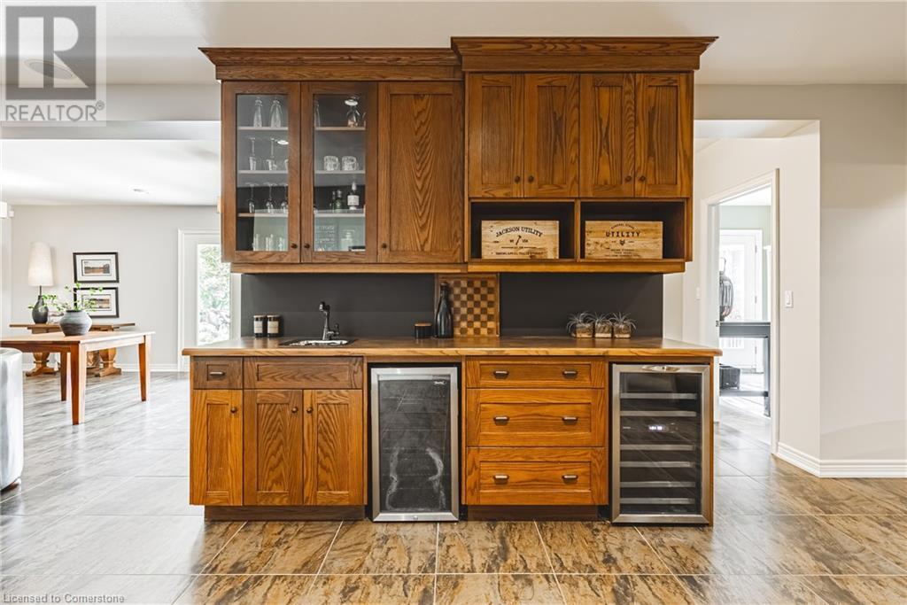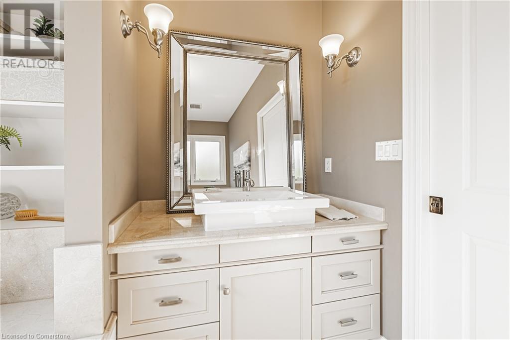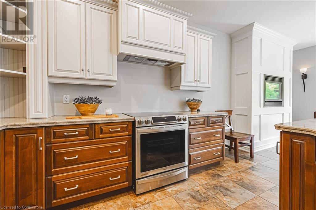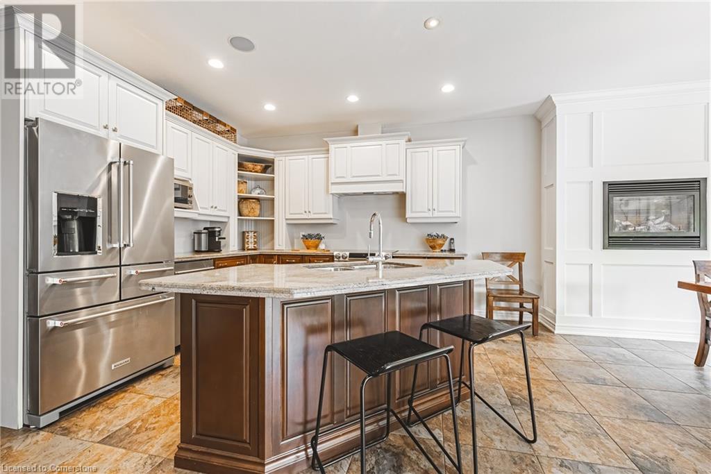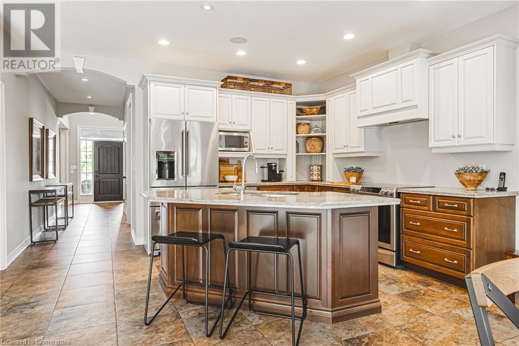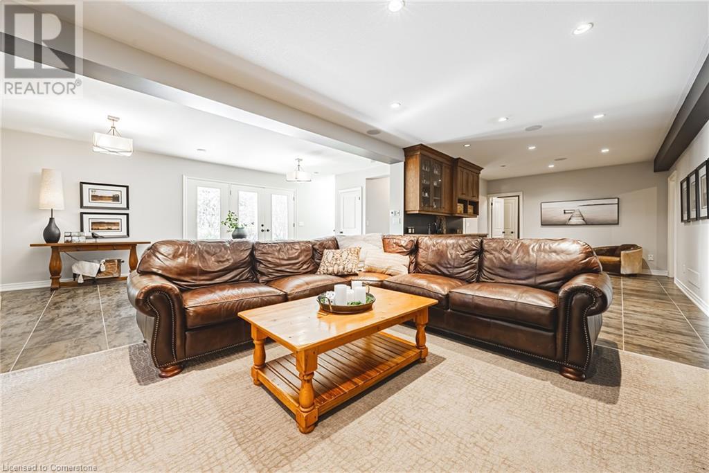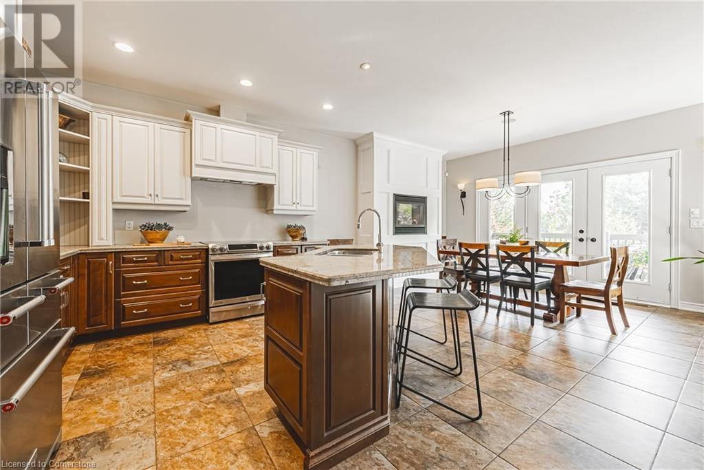 Incredible Lucchetta built bungalow on a quiet court in Welland's prestigious Brookhaven community. This meticulously crafted home offers 4+1 bedrooms and a finished basement with surround sound, a wet bar and a walkout to the serene backyard. The private primary suite boasts a spacious walk-in closet, luxurious ensuite, and access to a balcony overlooking the beautifully landscaped grounds. The backyard is an oasis with lush greenspace, a peaceful koi pond, and a hot tub, providing the perfect retreat. Inside, enjoy built-in speakers throughout, three fireplaces adding warmth and ambiance, and custom built-ins offering both style and functionality. The kitchen features high-end appliances and is perfect for entertaining. Designed for those who appreciate exceptional quality, privacy, and tranquility in a picturesque setting. (id:55009)
