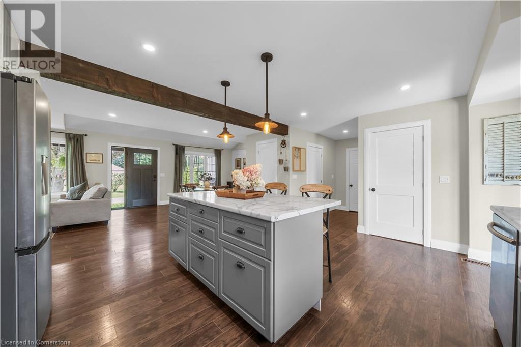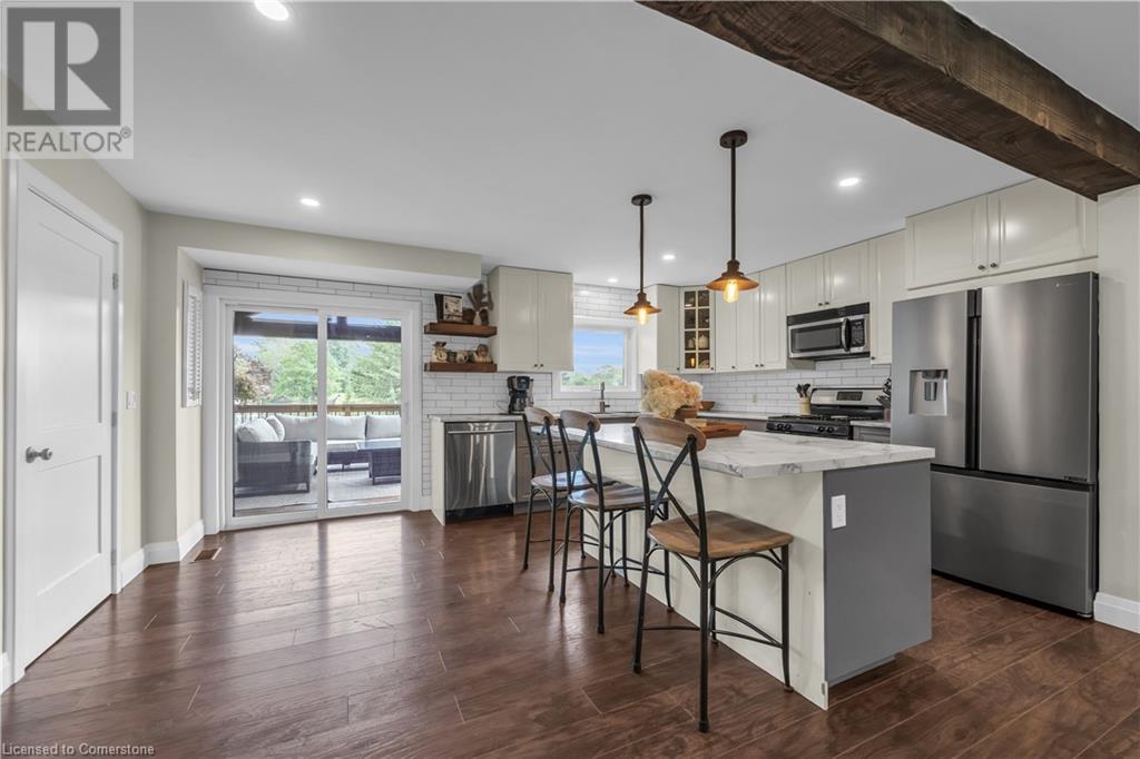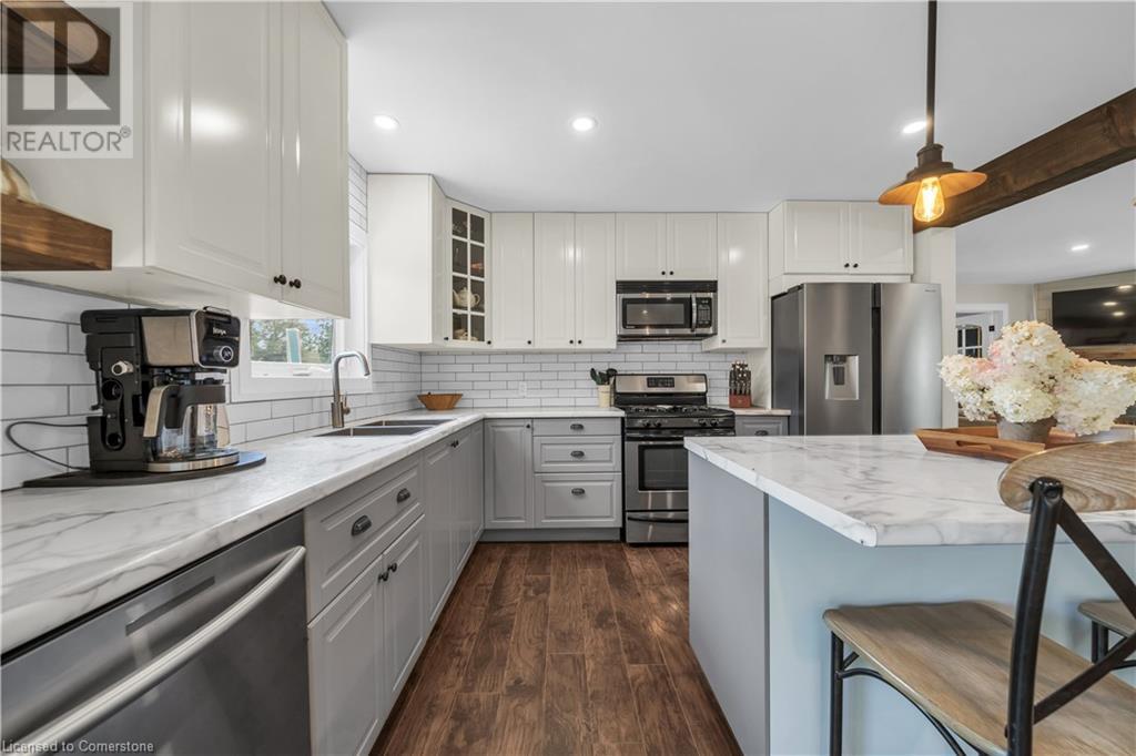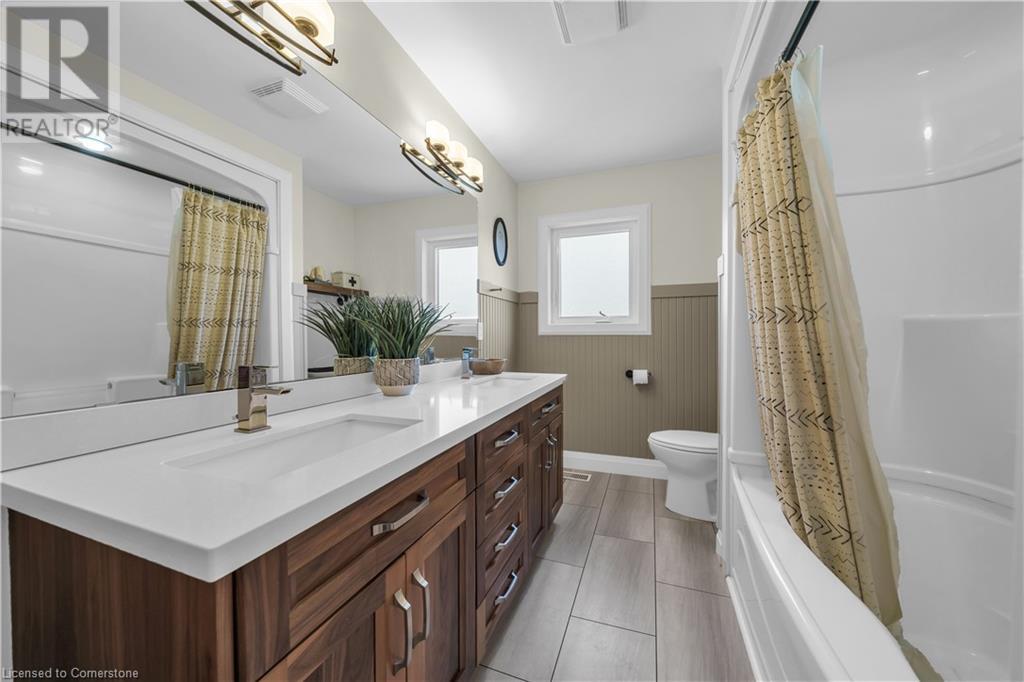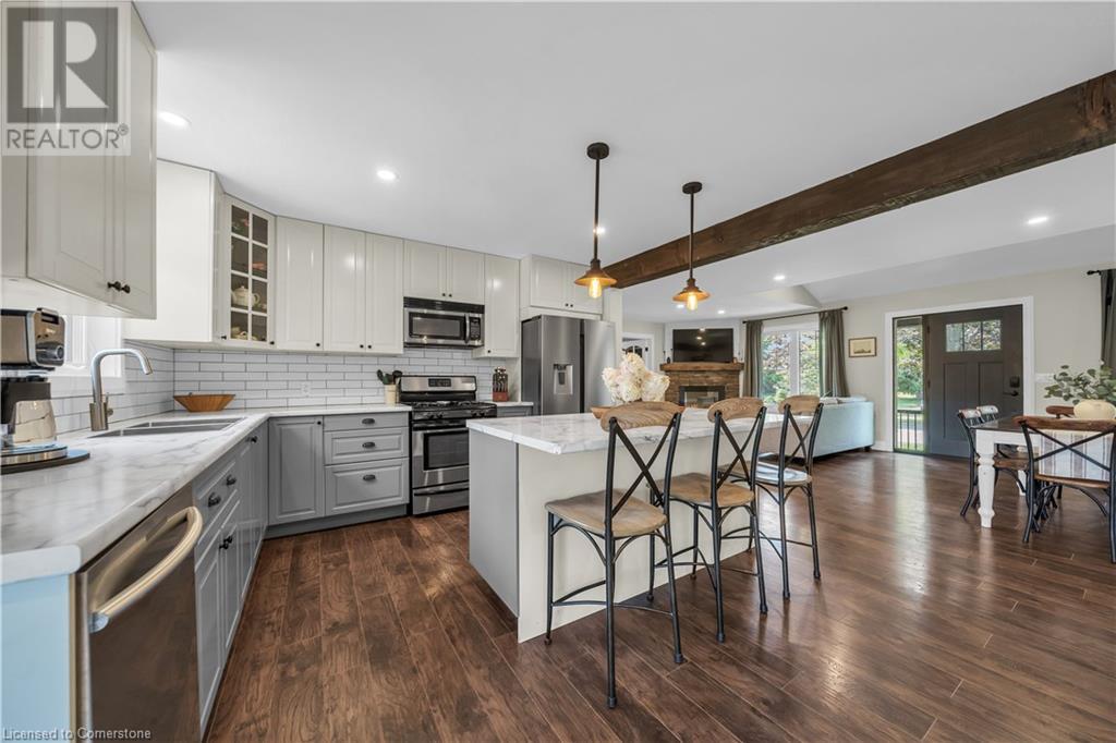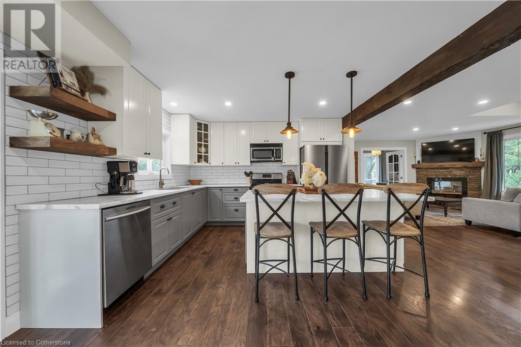 Stunning 3 + 2 bedroom, 3 bathroom, 2-storey home in desirable North Pelham with fully finished basement in-law suite and over 3000 square feet of finished space! The open-concept main floor is a showstopper, with a dining area, living area with fireplace, and gorgeous kitchen boasting a large island with breakfast bar, pantry, and patio door to the 12 foot x 14 foot covered deck. Main floor also features a den with custom built-in cabinetry, laundry with access to the 10 foot x 21 foot lower deck, and a 5-piece bathroom with double sink vanity and one piece tub/shower combo. Upstairs has a playroom and three spacious bedrooms including a large primary bedroom with cathedral ceilings, his & hers closets with professional organizers, and a spa-like ensuite with double sink vanity, linen pantry, and huge walk-in shower with soaker tub. The fully finished basement suite is a standout feature, offering a kitchenette, roughed-in laundry, and two additional bedrooms, providing endless possibilities. Separate basement entrance from the garage. The attached garage has PVC wall and ceiling panelling and ample storage space. Outside, the property sits on a beautiful lot, featuring a large backyard that’s perfect for kids, pets, and outdoor gatherings. The spacious rear deck and covered front porch provide ample space for enjoying the serene surroundings. The 12 foot x 17 foot shed provides additional storage. This home is a rare find in a peaceful, family-friendly neighborhood. (id:55009)