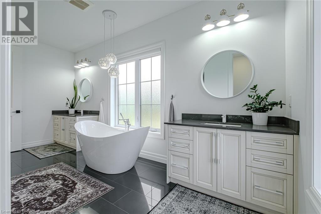 Stunning custom built masterpiece where every detail has been thoughtfully crafted! Luxurious 4+2 bedroom 4+1 bathroom homes boast elegance and design. 5,471sq ft of convenient and luxury living space with a massive 4 car garage and 6 car driveway. As you walk up this beautiful home you will be greeted by elegant arched double doors. The spacious yet cozy foyer opens up into the living area that offers big bright windows which is a common theme throughout the home. The living area also offers a cozy fireplace, custom shelving and 11 foot coffered ceilings. With an open concept design the living area opens into the stunning large kitchen. With all new Kitchen- Aid appliances, quartz countertops, gas stove, walk in pantry, and wine fridge this area is perfect for hosting and entertaining. Three of the bedrooms on the main floor have a walk-in closet and ensuite bathroom. The primary has a his and her theme with two walk-in closets, a luxurious tub and a beautiful walk out. The fully finished basement has a 9 foot ceiling and larger windows giving it a very livable feeling. It offers plenty of storage, a half kitchen, and a separate entrance that leads to the massive oversized garage. Overall the home has been extremely well cared for, has a metal roof and all top of the line appliances. Minutes to Brantford. Book your showing today and don't miss the opportunity to get into this newly prestige subdivision. (id:55009)
