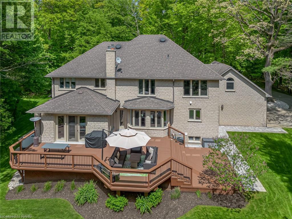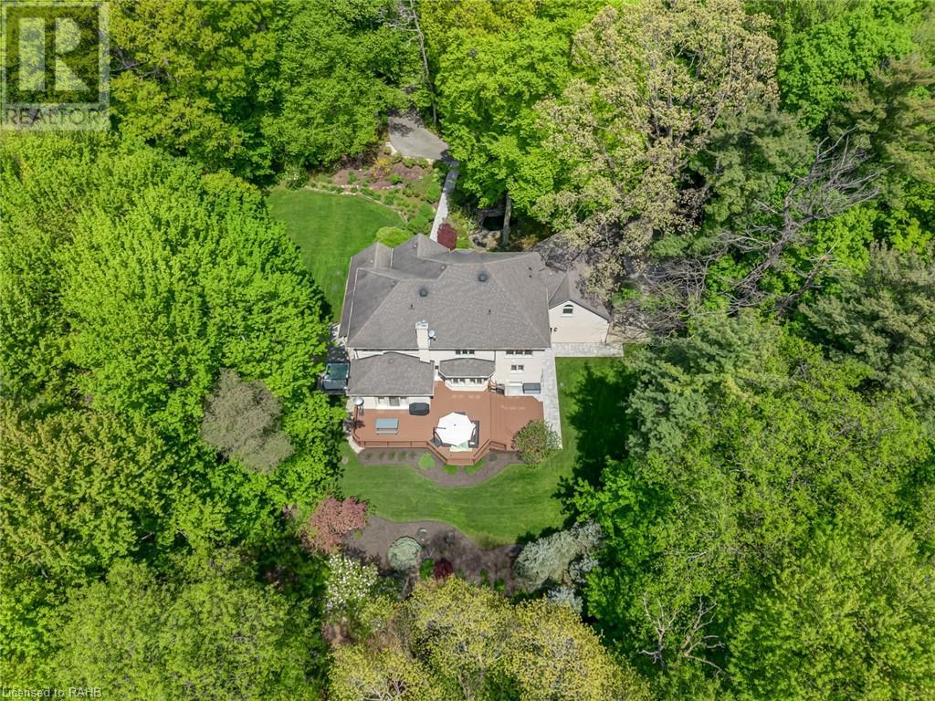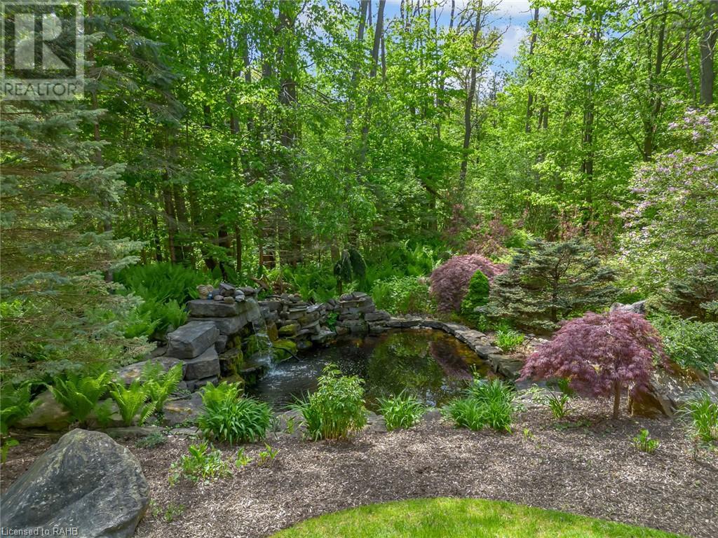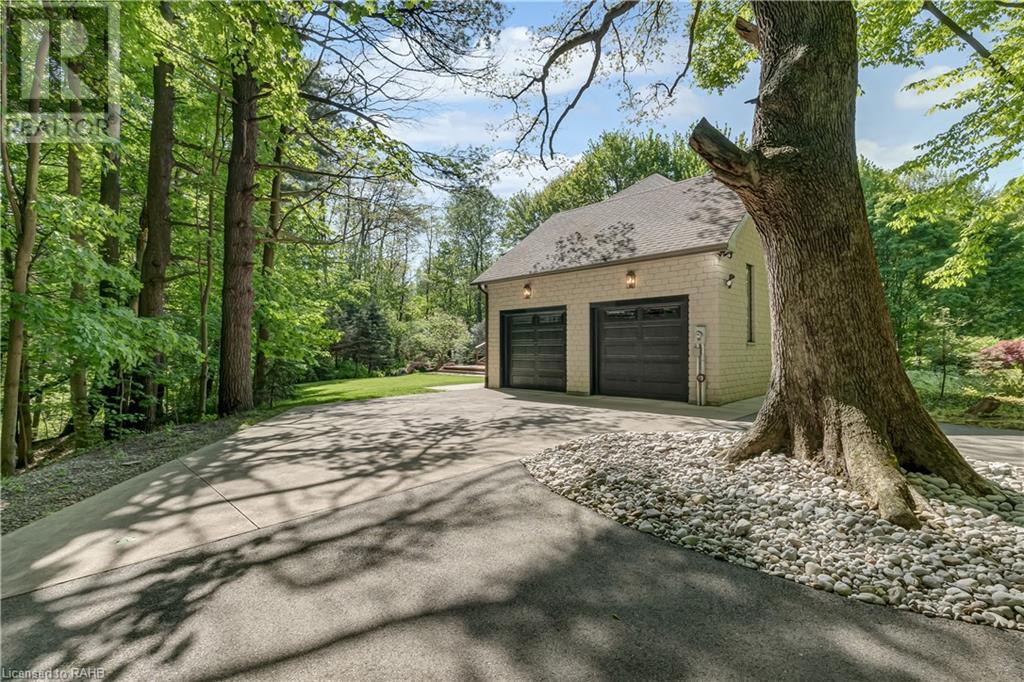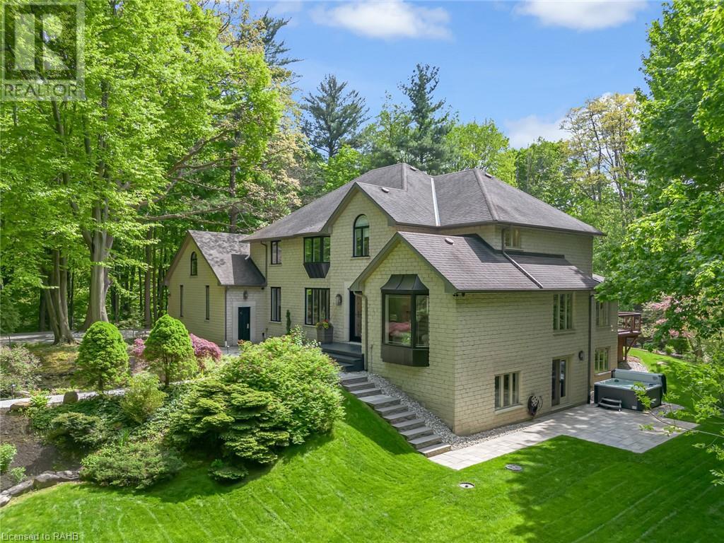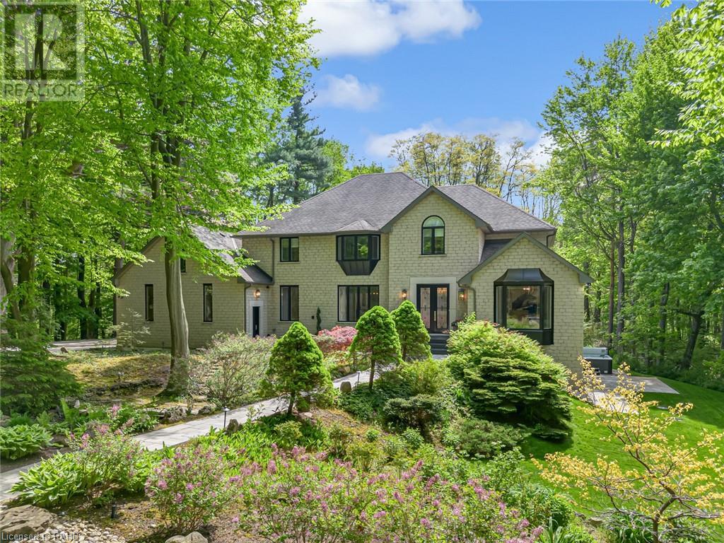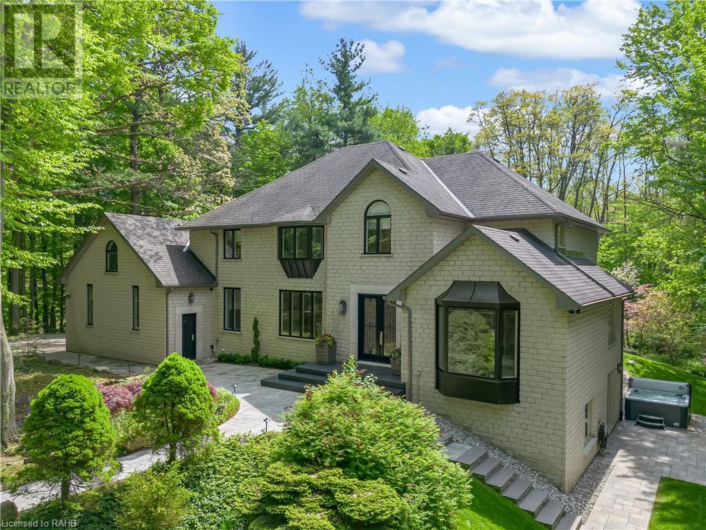 Welcome to the epitome of modern living on 2.5 acres of pristine natural beauty in the heart of Ancaster. This custom-designed 4+1 bedroom, 4+2 bathroom, home has been thoughtfully positioned to maximize privacy and take advantage of the lush panoramic views. With almost 7000 sqft of total living space, the newly renovated interior seamlessly blends contemporary aesthetics with the tranquility of its expansive surroundings. The kitchen is a masterpiece of efficiency and style, boasting state-of-the-art appliances, custom cabinetry, and stunning stone accents that exudes sophistication. The living area seamlessly transitions to an outdoor patio, blurring the lines between indoor and outdoor living. This outdoor space serves as an extension of the home, providing a perfect spot for relaxation, entertaining and enjoying the breathtaking scenery including two ponds. Thoughtful storage solutions maximize the use of space, ensuring that every square foot is both functional and aesthetically pleasing. The large primary suite is the perfect space to wind down and features a spa like en-suite with modern fixtures and a wall to wall walk-in closet. The fully finished walk-out basement boasts an additional bedroom, home gym, kitchenette and a movie room - the perfect space for hosting guests or an in-law suite. The entire property has been professionally landscaped with new walk-ways and custom stone work, for optimal curb appeal. This one of a kind property is not one to miss! (id:55009)