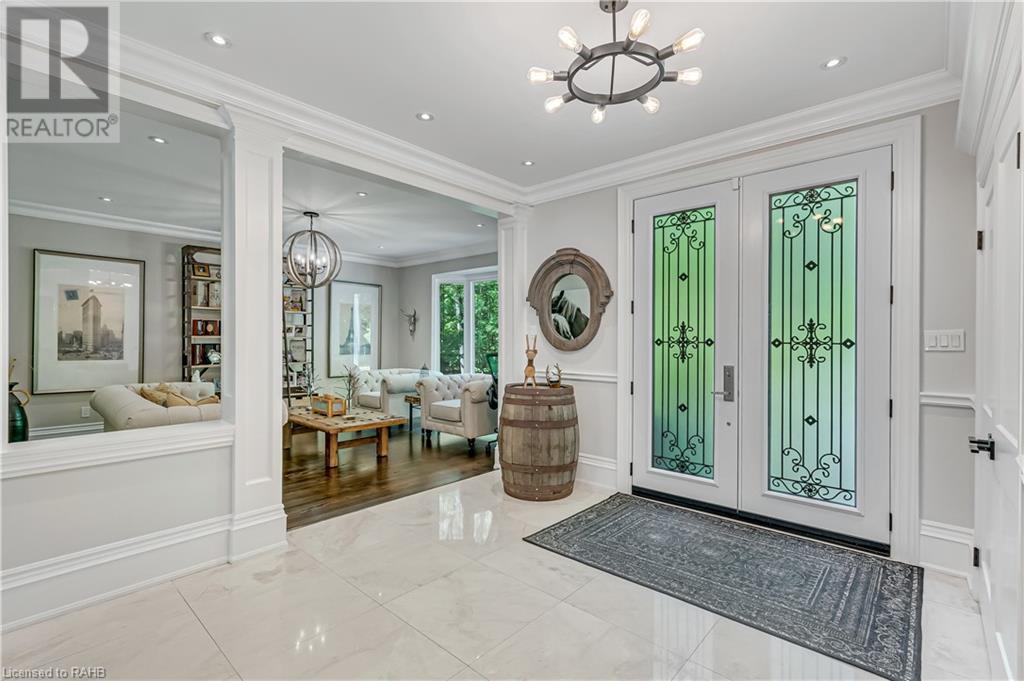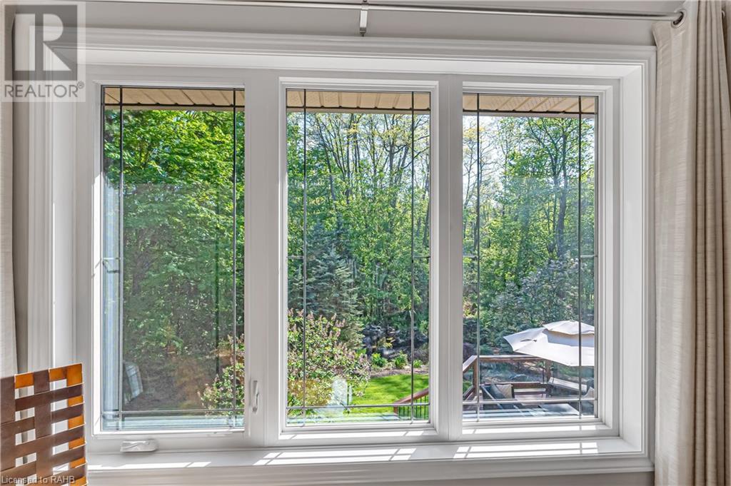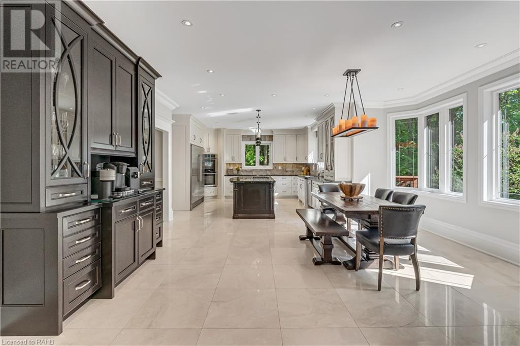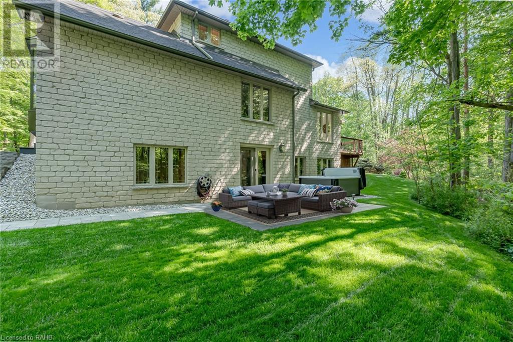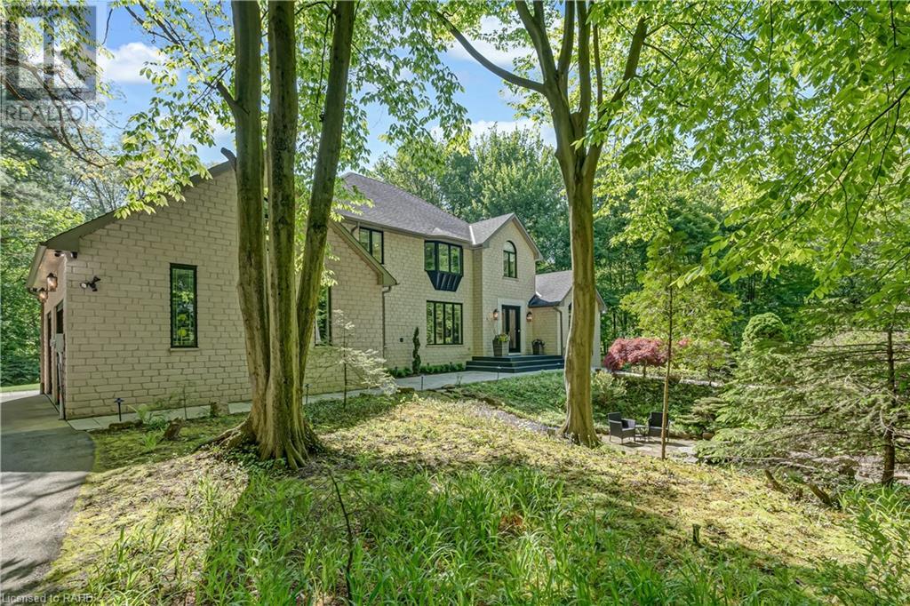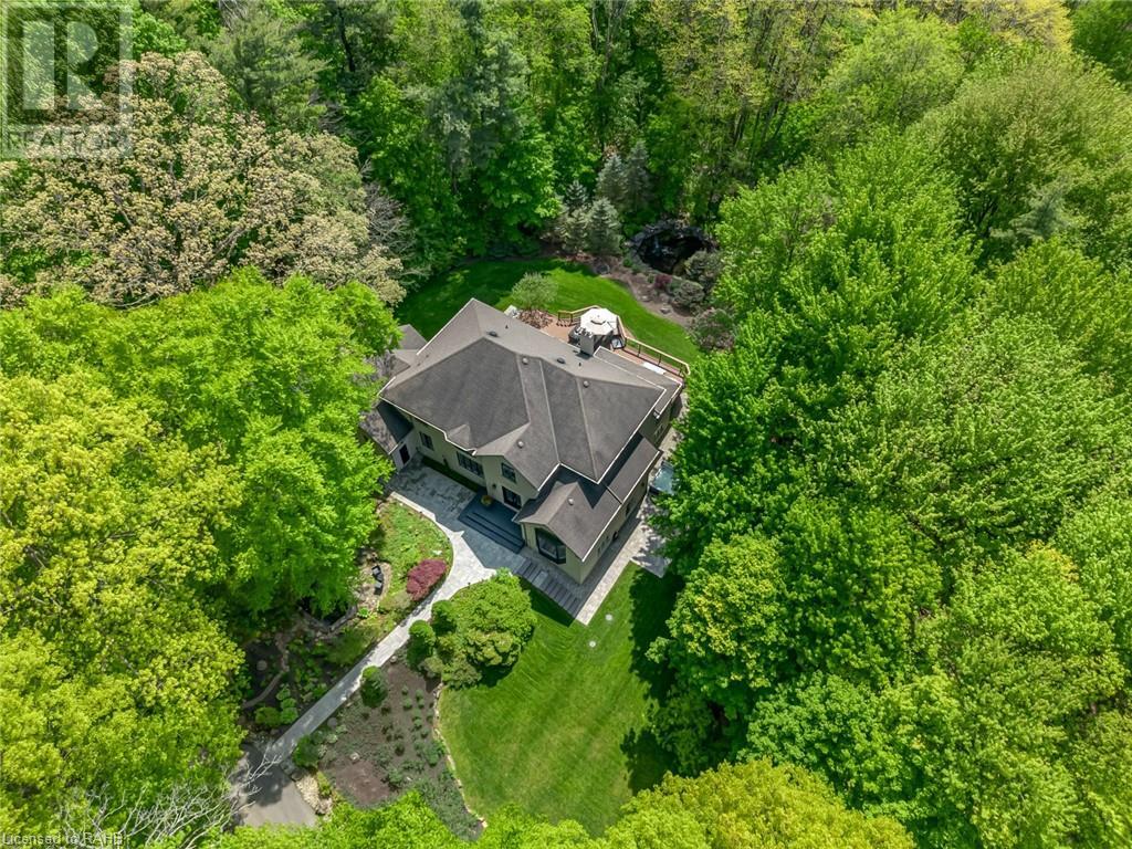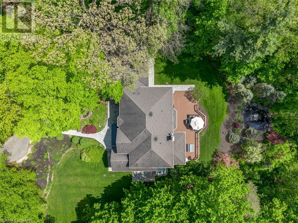 Welcome to the epitome of modern living on 2.5 acres of pristine natural beauty in the heart of Ancaster. This custom-designed 4+1 bedroom, 4+2 bathroom, home has been thoughtfully positioned to maximize privacy and take advantage of the lush panoramic views. With almost 7000 sqft of total living space, the newly renovated interior seamlessly blends contemporary aesthetics with the tranquility of its expansive surroundings. The kitchen is a masterpiece of efficiency and style, boasting state-of-the-art appliances, custom cabinetry, and stunning stone accents that exudes sophistication. The living area seamlessly transitions to an outdoor patio, blurring the lines between indoor and outdoor living. This outdoor space serves as an extension of the home, providing a perfect spot for relaxation, entertaining and enjoying the breathtaking scenery including two ponds. Thoughtful storage solutions maximize the use of space, ensuring that every square foot is both functional and aesthetically pleasing. The large primary suite is the perfect space to wind down and features a spa like en-suite with modern fixtures and a wall to wall walk-in closet. The fully finished walk-out basement boasts an additional bedroom, home gym, kitchenette and a movie room - the perfect space for hosting guests or an in-law suite. The entire property has been professionally landscaped with new walk-ways and custom stone work, for optimal curb appeal. This one of a kind property is not one to miss! (id:55009)