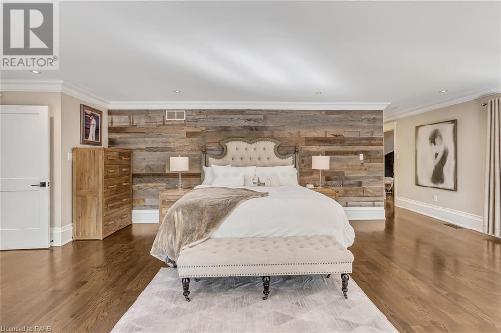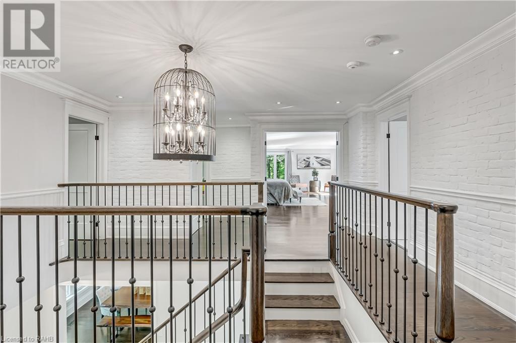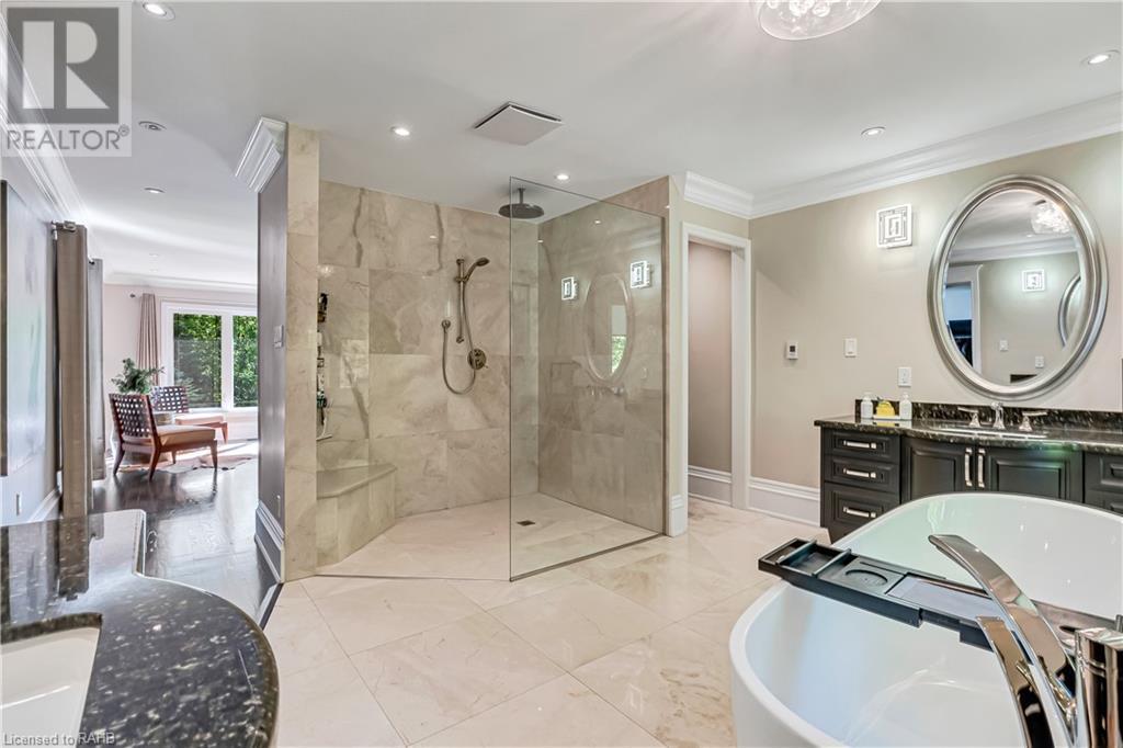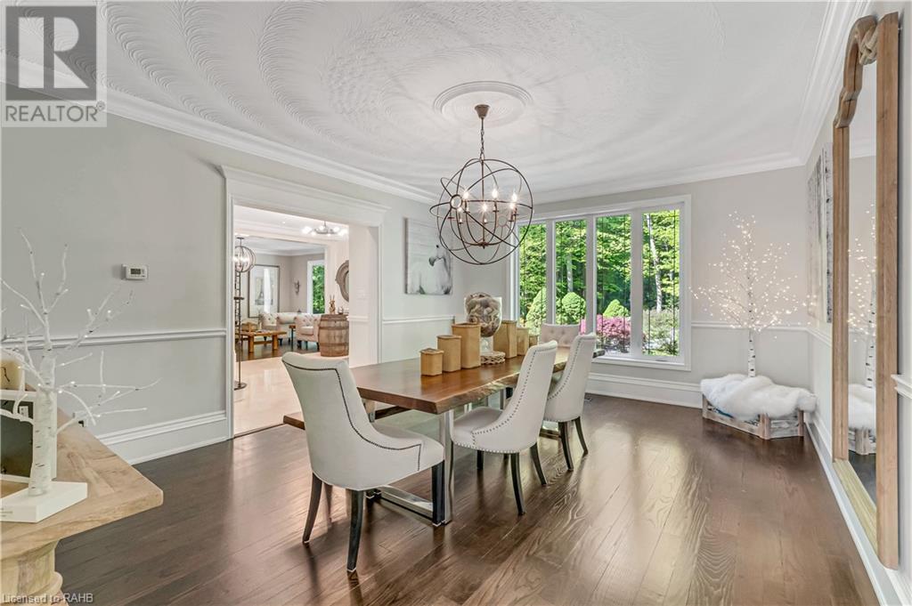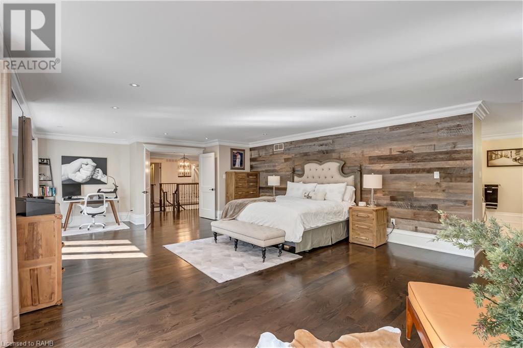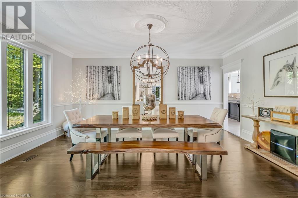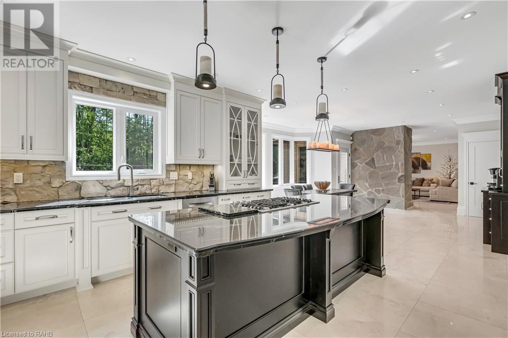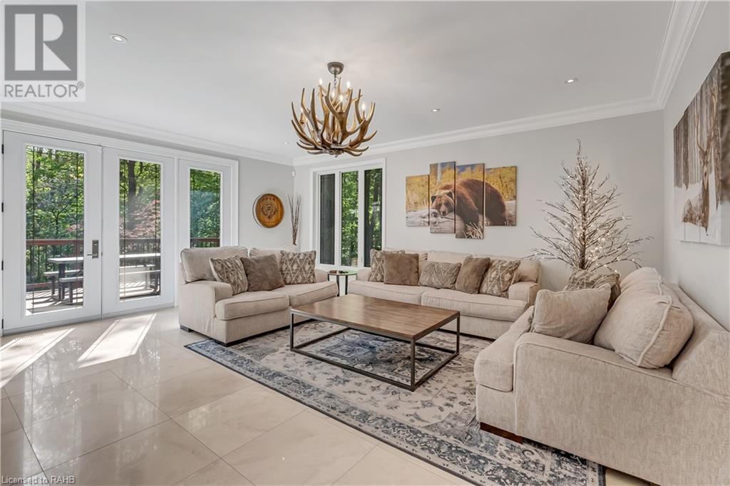Welcome to the epitome of modern living on 2.5 acres of pristine natural beauty in the heart of Ancaster. This custom-designed 4+1 bedroom, 4+2 bathroom, home has been thoughtfully positioned to maximize privacy and take advantage of the lush panoramic views. With almost 7000 sqft of total living space, the newly renovated interior seamlessly blends contemporary aesthetics with the tranquility of its expansive surroundings. The kitchen is a masterpiece of efficiency and style, boasting state-of-the-art appliances, custom cabinetry, and stunning stone accents that exudes sophistication. The living area seamlessly transitions to an outdoor patio, blurring the lines between indoor and outdoor living. This outdoor space serves as an extension of the home, providing a perfect spot for relaxation, entertaining and enjoying the breathtaking scenery including two ponds. Thoughtful storage solutions maximize the use of space, ensuring that every square foot is both functional and aesthetically pleasing. The large primary suite is the perfect space to wind down and features a spa like en-suite with modern fixtures and a wall to wall walk-in closet. The fully finished walk-out basement boasts an additional bedroom, home gym, kitchenette and a movie room - the perfect space for hosting guests or an in-law suite. The entire property has been professionally landscaped with new walk-ways and custom stone work, for optimal curb appeal. This one of a kind property is not one to miss! (id:55009)