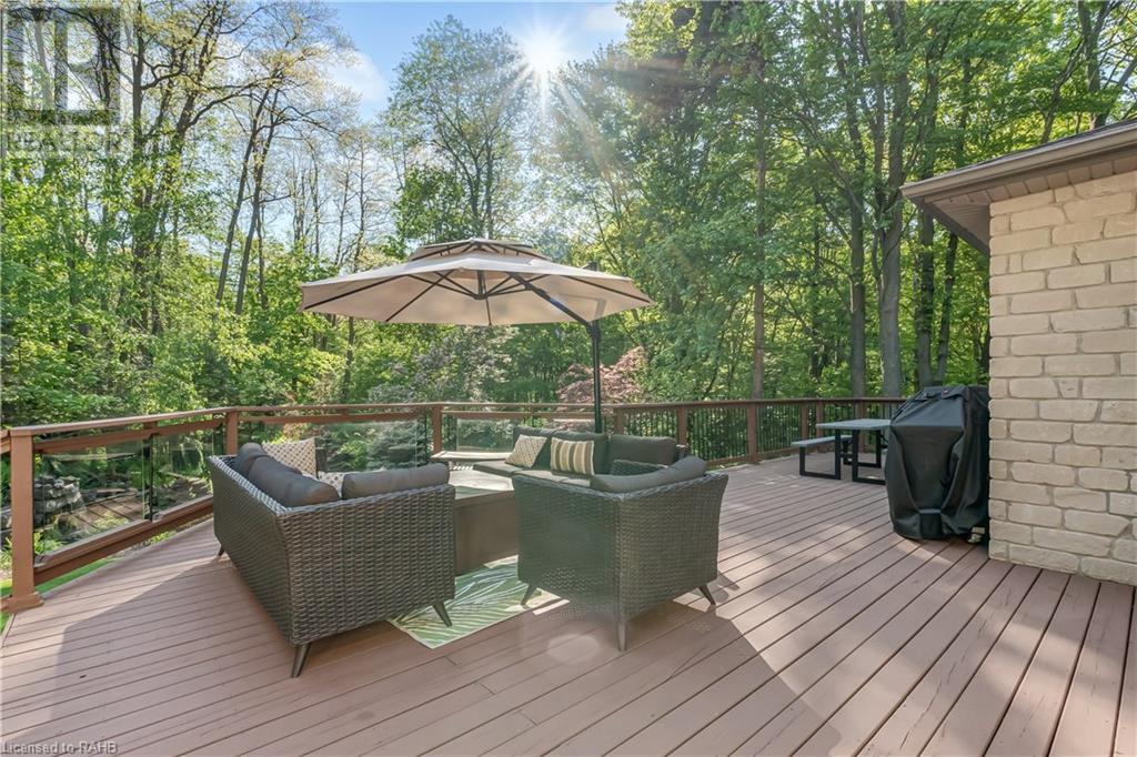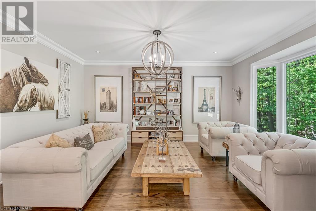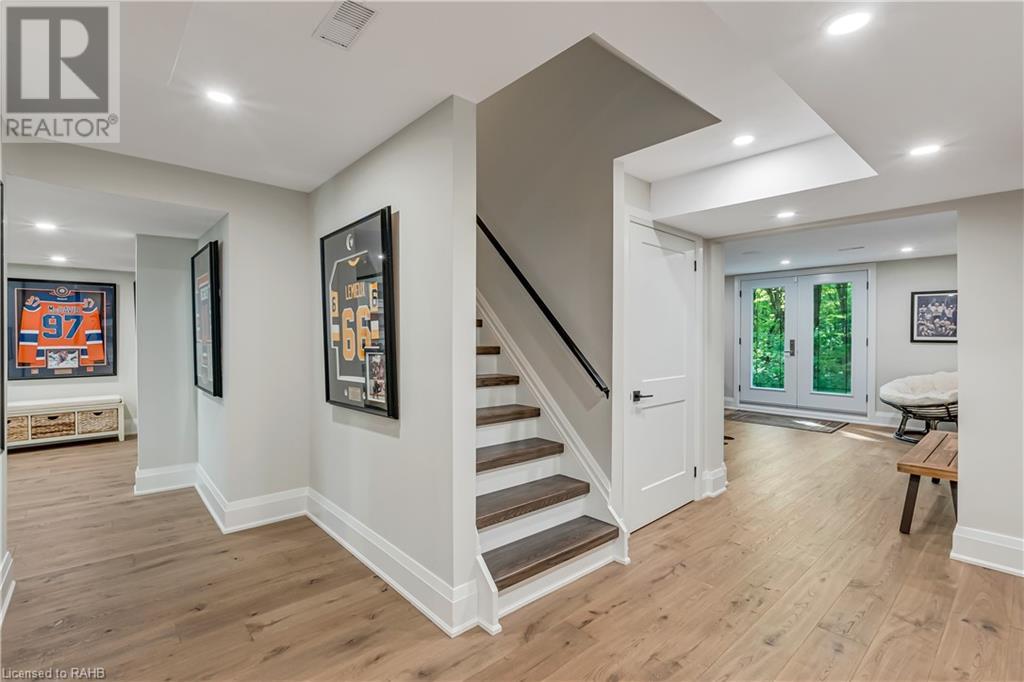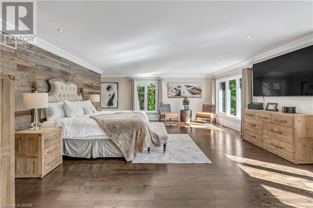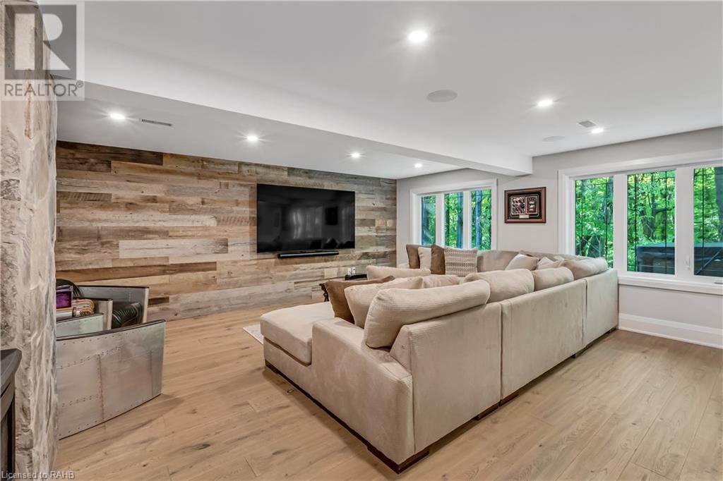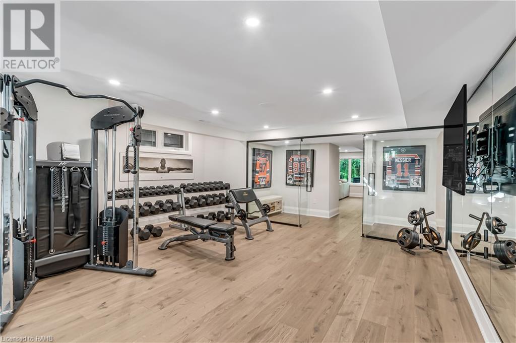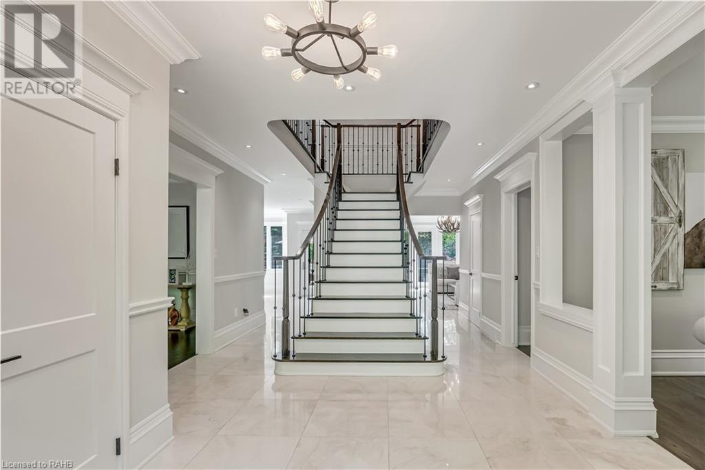 Welcome to the epitome of modern living on 2.5 acres of pristine natural beauty in the heart of Ancaster. This custom-designed 4+1 bedroom, 4+2 bathroom, home has been thoughtfully positioned to maximize privacy and take advantage of the lush panoramic views. With almost 7000 sqft of total living space, the newly renovated interior seamlessly blends contemporary aesthetics with the tranquility of its expansive surroundings. The kitchen is a masterpiece of efficiency and style, boasting state-of-the-art appliances, custom cabinetry, and stunning stone accents that exudes sophistication. The living area seamlessly transitions to an outdoor patio, blurring the lines between indoor and outdoor living. This outdoor space serves as an extension of the home, providing a perfect spot for relaxation, entertaining and enjoying the breathtaking scenery including two ponds. Thoughtful storage solutions maximize the use of space, ensuring that every square foot is both functional and aesthetically pleasing. The large primary suite is the perfect space to wind down and features a spa like en-suite with modern fixtures and a wall to wall walk-in closet. The fully finished walk-out basement boasts an additional bedroom, home gym, kitchenette and a movie room - the perfect space for hosting guests or an in-law suite. The entire property has been professionally landscaped with new walk-ways and custom stone work, for optimal curb appeal. This one of a kind property is not one to miss! (id:55009)