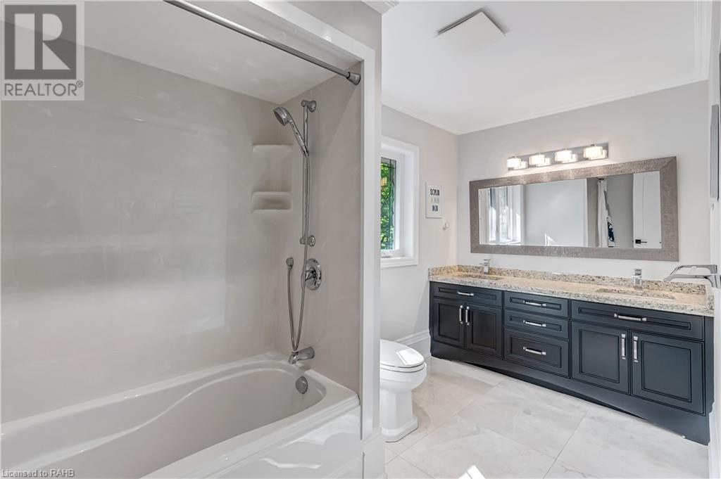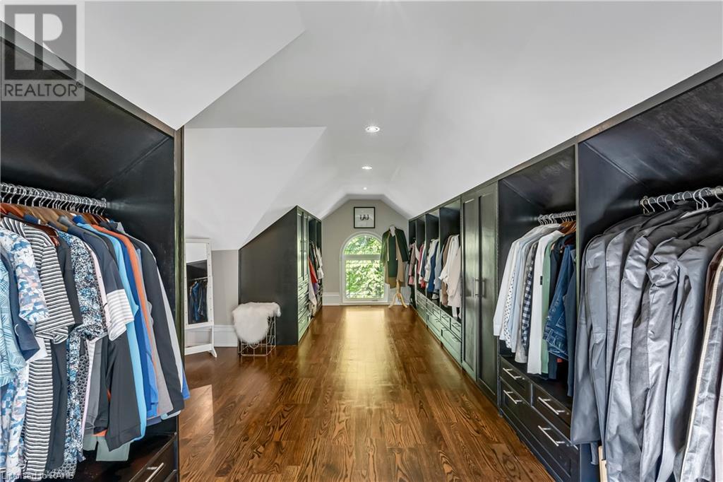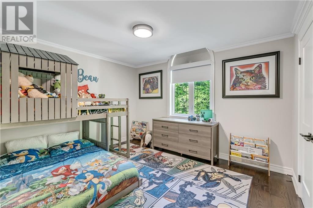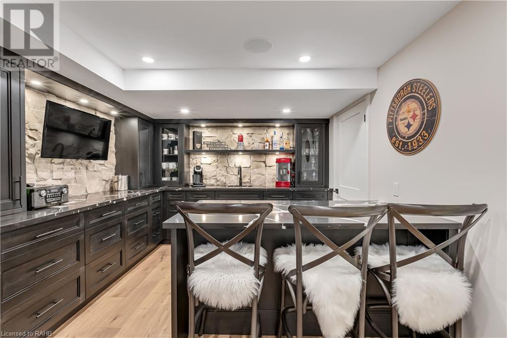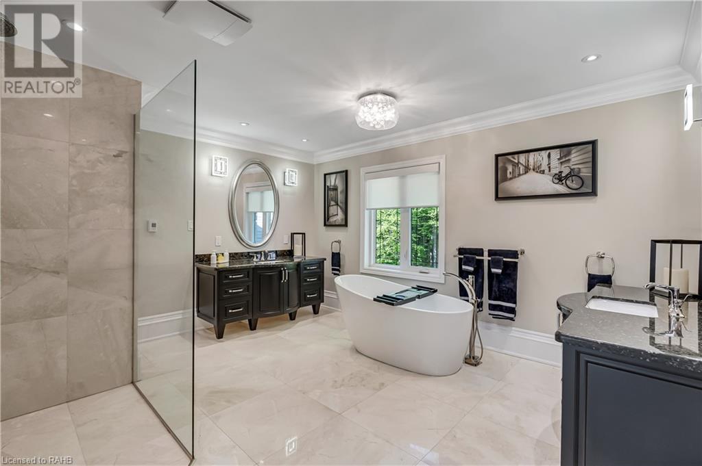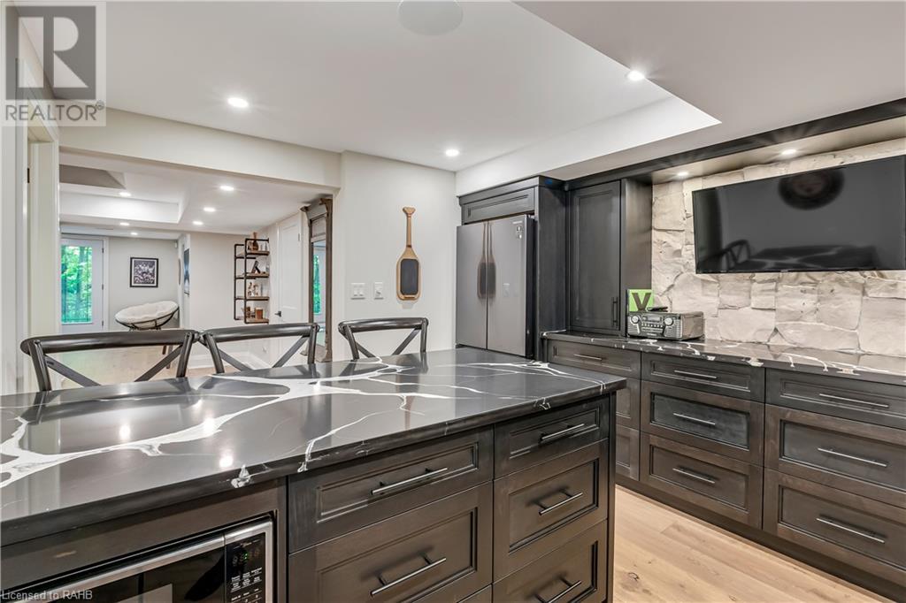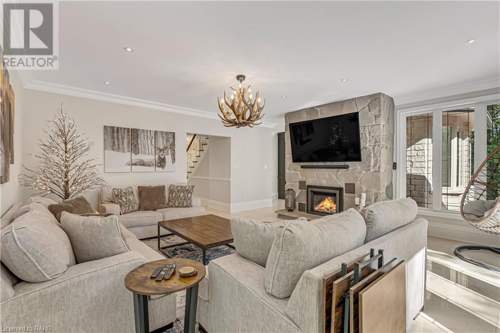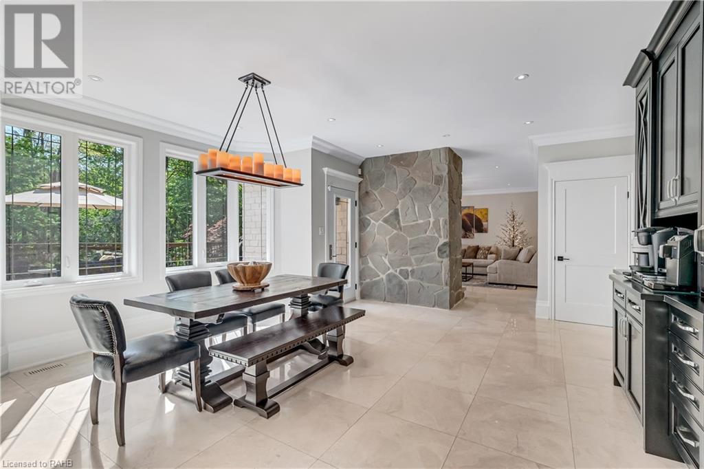 Welcome to the epitome of modern living on 2.5 acres of pristine natural beauty in the heart of Ancaster. This custom-designed 4+1 bedroom, 4+2 bathroom, home has been thoughtfully positioned to maximize privacy and take advantage of the lush panoramic views. With almost 7000 sqft of total living space, the newly renovated interior seamlessly blends contemporary aesthetics with the tranquility of its expansive surroundings. The kitchen is a masterpiece of efficiency and style, boasting state-of-the-art appliances, custom cabinetry, and stunning stone accents that exudes sophistication. The living area seamlessly transitions to an outdoor patio, blurring the lines between indoor and outdoor living. This outdoor space serves as an extension of the home, providing a perfect spot for relaxation, entertaining and enjoying the breathtaking scenery including two ponds. Thoughtful storage solutions maximize the use of space, ensuring that every square foot is both functional and aesthetically pleasing. The large primary suite is the perfect space to wind down and features a spa like en-suite with modern fixtures and a wall to wall walk-in closet. The fully finished walk-out basement boasts an additional bedroom, home gym, kitchenette and a movie room - the perfect space for hosting guests or an in-law suite. The entire property has been professionally landscaped with new walk-ways and custom stone work, for optimal curb appeal. This one of a kind property is not one to miss! (id:55009)