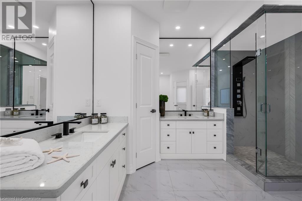 A gem in Ancaster, the most prestigious and established neighbourhood built by Carriage Gate in 2017. Loaded with tasteful upgrades from the ceilings down to the flooring. Extra long driveway with three cars garage. Custom kitchen with high-end appliances. Hardwood flooring throughout, including the second floor. Upper level with four bedrooms, each with access to one of the three full bathrooms. Tasteful front and back landscaping includes a built-in BBQ and seating area with a fireplace. Great playground area. Garden with wifi-controlled sprinkler system and auto lighting. A high-ceiling basement gives you many potentials. Must see and Shows AAA+ (id:55009)
