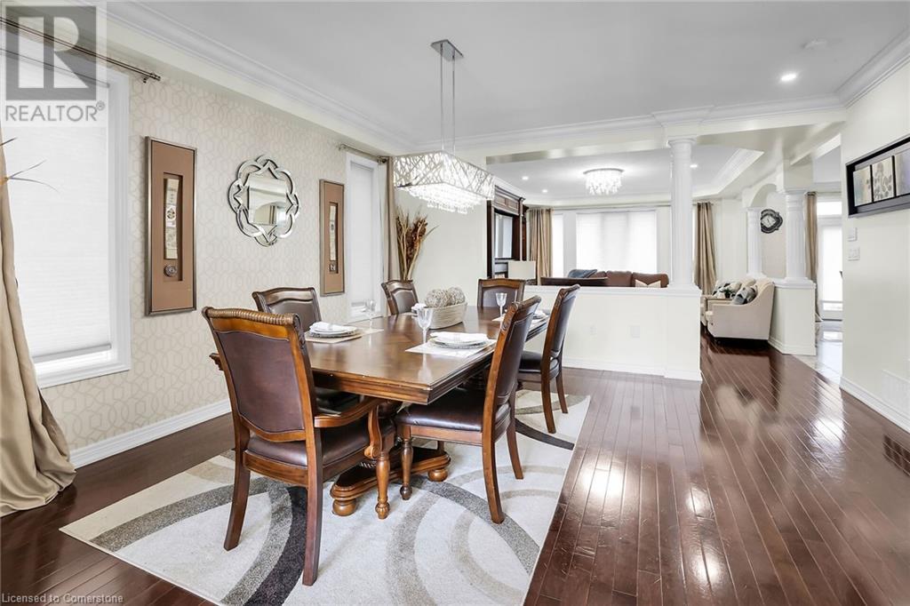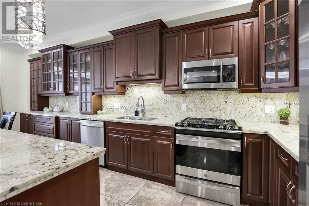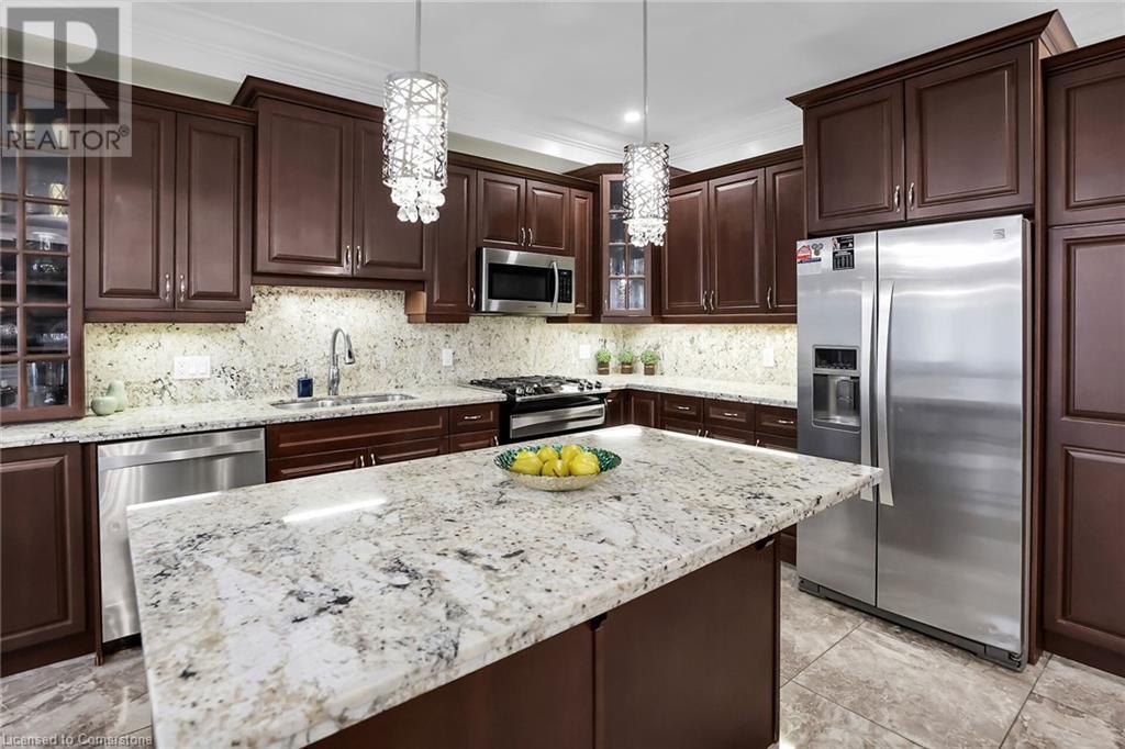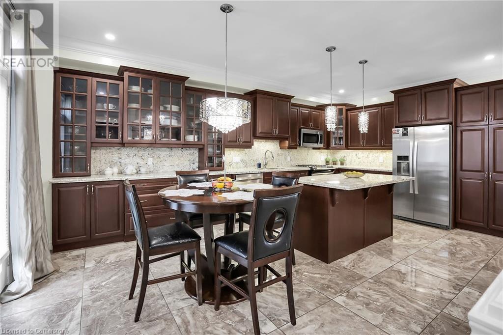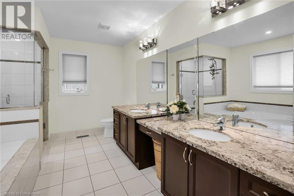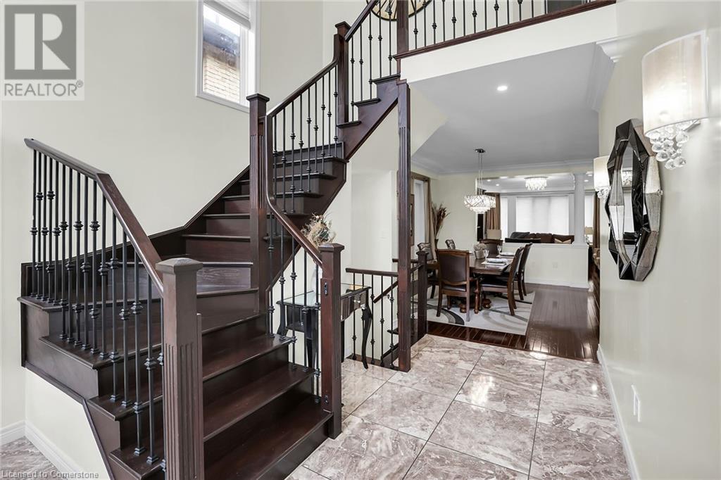 Gorgeous and large 2 storey home in the Meadowlands area of Ancaster boasts incredible high end finishes throughout. The moment you arrive at the property, you will fall in love with the landscaped home with great curb appeal, you will want to see more! Once inside, the main floor entrance greets you with gorgeous flooring and high ceilings, an open concept main floor consisting of the eat-in kitchen with island and access to back yard, stunning family room with gas fireplace and built-in cabinetry, a big dining room, a 1/2 bath and a mud room/laundry room with inside garage entry give lots of space to entertain. 6 total spacious bedrooms and 5 baths (3 full and 2 half) with Primary bedroom equipped with huge walk-in closet and 5+ piece ensuite bath, 2 beds equipped with Jack and Jill bathroom and the other upstairs bedroom has an ensuite bath as well, making it a perfect home for large or multi families. Basement is very large and bright with additional laundry hookup and spare kitchen. Add in the double garage and a fenced in backyard and you have the perfect recipe for your next home. Close to schools, parks, shopping and easy hwy and transit access. Make it a goal to see this one, it's worth it!! (id:55009)