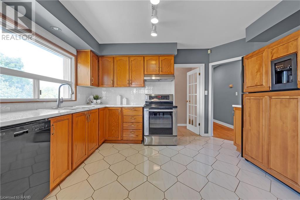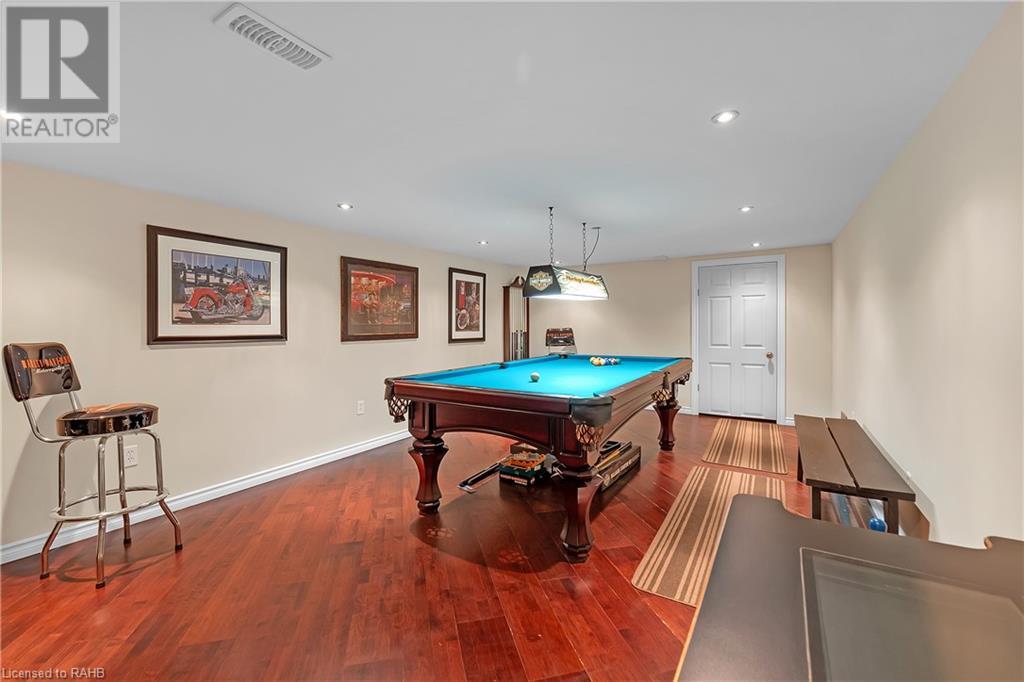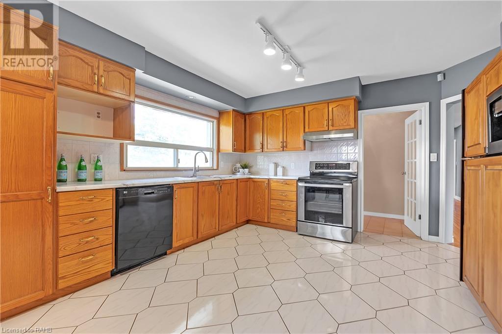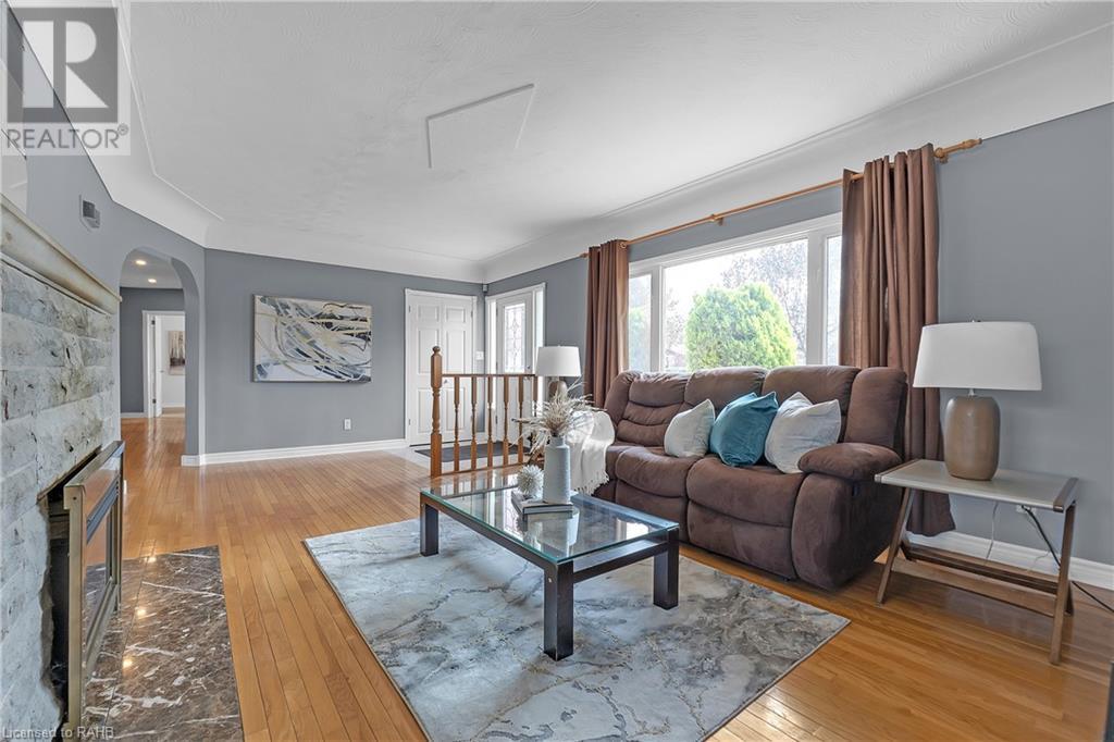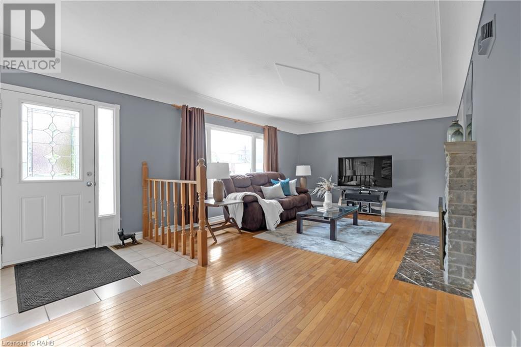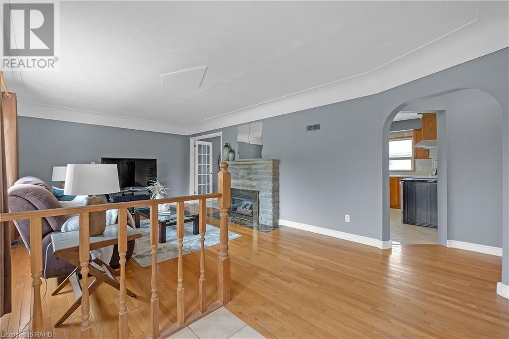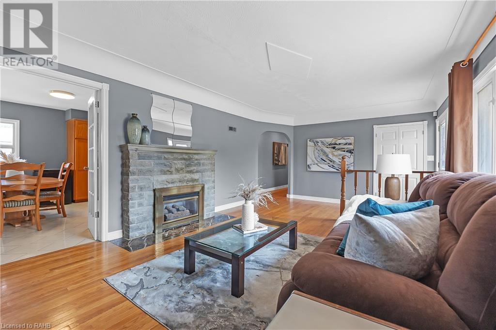 Nestled in the heart of Stoney Creek, this charming corner bungalow offers comfort and convenience. The warm and inviting living room features a cozy gas fireplace, perfect for relaxing evenings. The spacious eat-in kitchen is ideal for family gatherings, and the main floor boasts beautiful hardwood floors throughout, leading to three generously sized bedrooms and a four-piece bath. The fully finished basement includes a second washroom, an additional bedroom, and a large recreation room, offering ample space for entertainment. With tons of storage, a large yard, an oversized double car garage with 11.6 foot ceilings and 28 feet wide X 18.8 feet deep, great for any car enthusiasts a cement driveway accommodating up to four cars, this home is perfect for those seeking space and functionality in a desirable location. (id:55009)