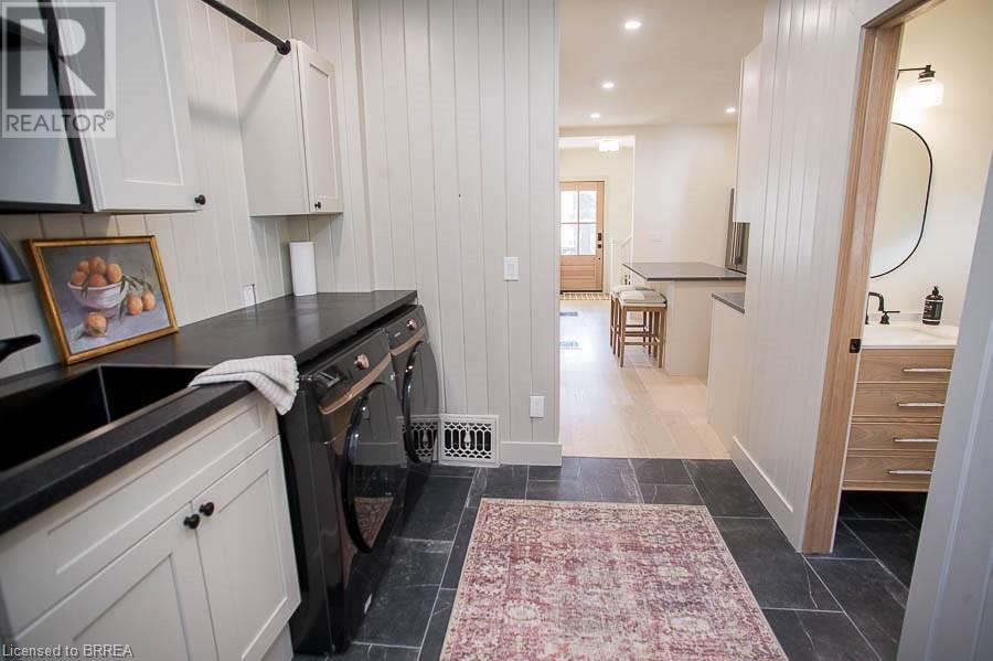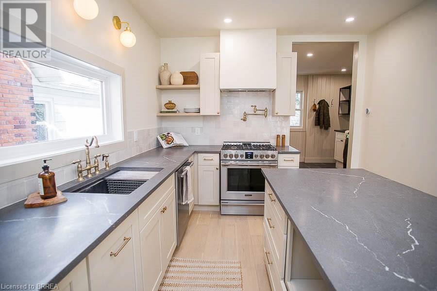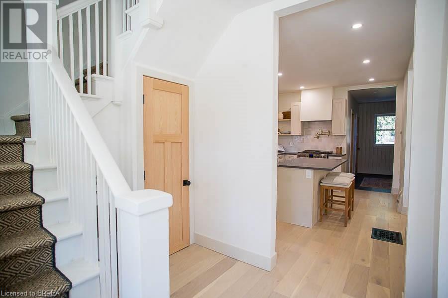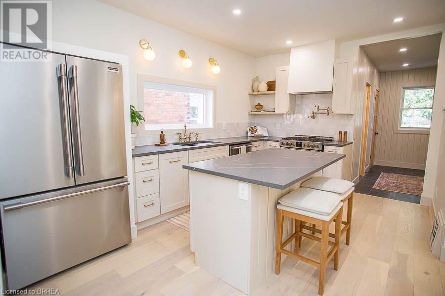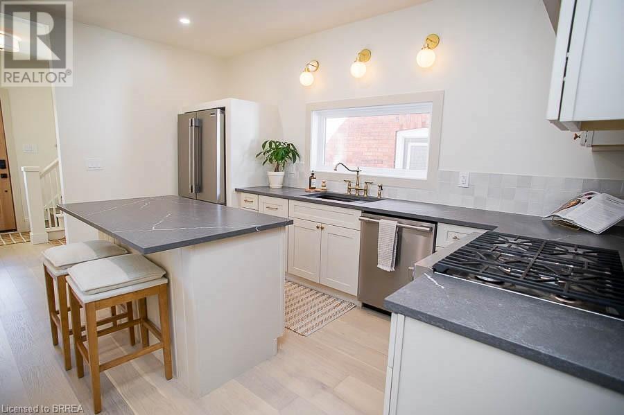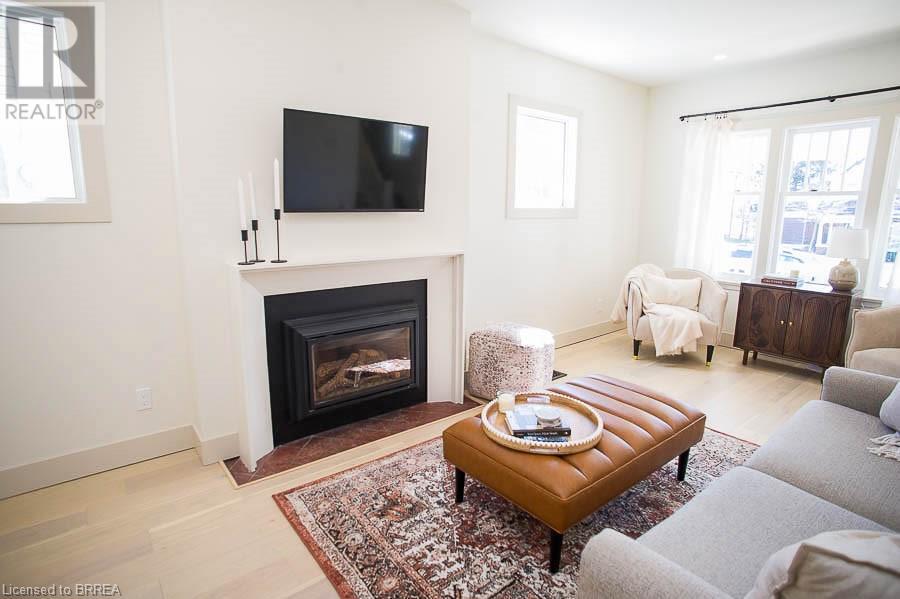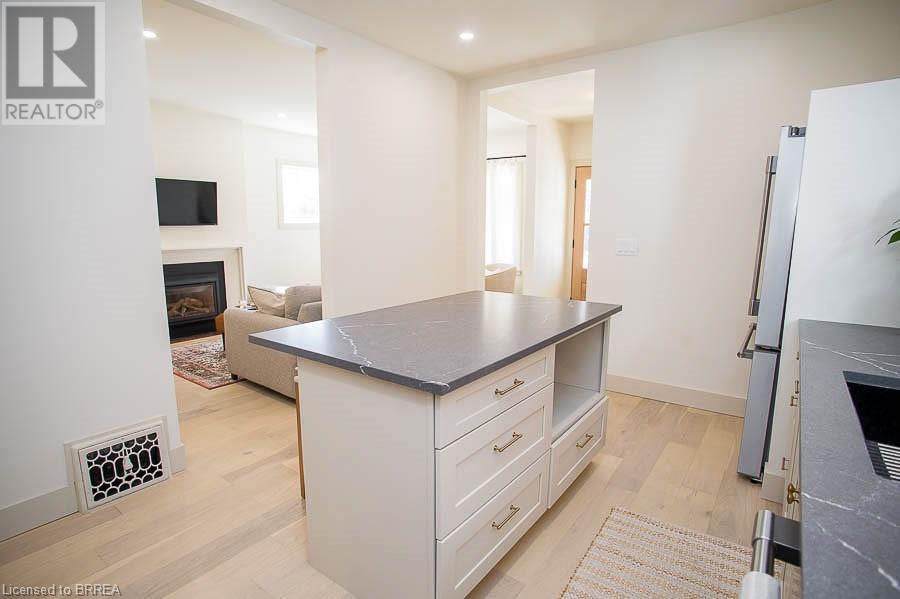 Welcome to 187 Dufferin Avenue a stunning 2-story home located in the desirable Dufferin neighbourhood of Brantford. This 3 bedroom, 1.5 bathroom home has been completely renovated and is ready for move in! You will love how bright the home is. Throughout the home you will find all new interior oak doors, new baseboards, LED pot lights, modern light fixtures and white oak engineered hardwood flooring, with porcelain tile flooring in both bathrooms. The open concept living room and dining room offer a gas fireplace with custom mantel. No detail was spared in this custom kitchen, offering custom wood cabinetry, quartz countertops, stainless-steel appliances and an island. The main floor is complete with a laundry and 2-piece powder room. Upstairs the primary bedroom offers double closets with rods and shelves. Two additional bedrooms complete this level and a 4-piece bathroom. With new mechanical upgrades including new electrical and plumbing. This home is close to schools, shopping and all major amenities. (id:55009)