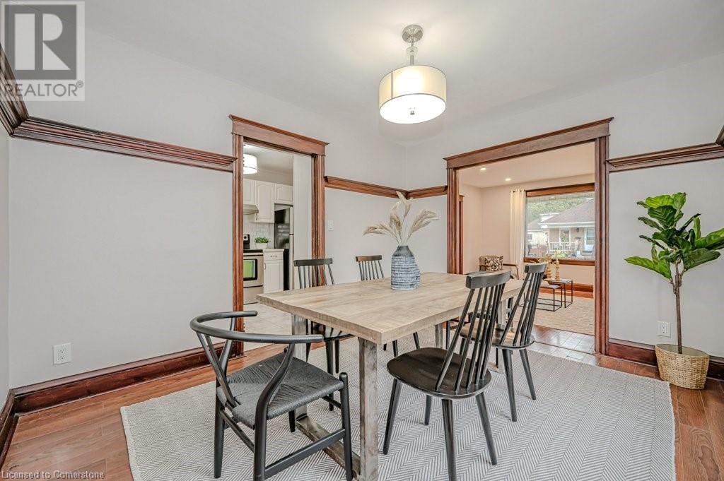Welcome to 189 Roxborough Avenue! This charming two-story, three-bedroom home, complete with parking, is nestled in the heart of the family-friendly Crown Point neighborhood. Just steps away from Ottawa Street’s boutique shops, vibrant restaurants, farmers' market, and cozy coffee spots, this location offers a true community feel. Relax or entertain on the spacious covered front porch before stepping into a bright, inviting interior that effortlessly blends historic charm with modern updates. The revitalized kitchen showcases Quartz countertops, an undermount double sink, a sleek subway tile backsplash, stainless steel appliances, a pantry, and additional storage. The partially finished basement presents exciting potential with a separate entrance and a toilet rough-in already in place. Key updates include a new electrical panel and wiring throughout (2016), brand new windows in the front bedroom (2024), a refreshed kitchen (2020), new roof shingles (2017), upgraded light fixtures, and a freshly painted interior (2024). Ideally situated near Tim Hortons Field, Bernie Custis High School, Jimmy Thompson Memorial Pool, Bernie Morelli Rec Centre, Centre Mall, and Gage Park—home to festivals, playgrounds, and a greenhouse—this property provides easy access to all the conveniences you need. Experience the perfect blend of historic charm, modern living, and central location at 189 Roxborough Avenue! (id:55009)