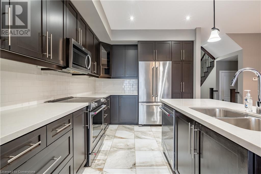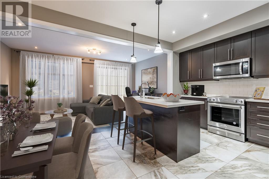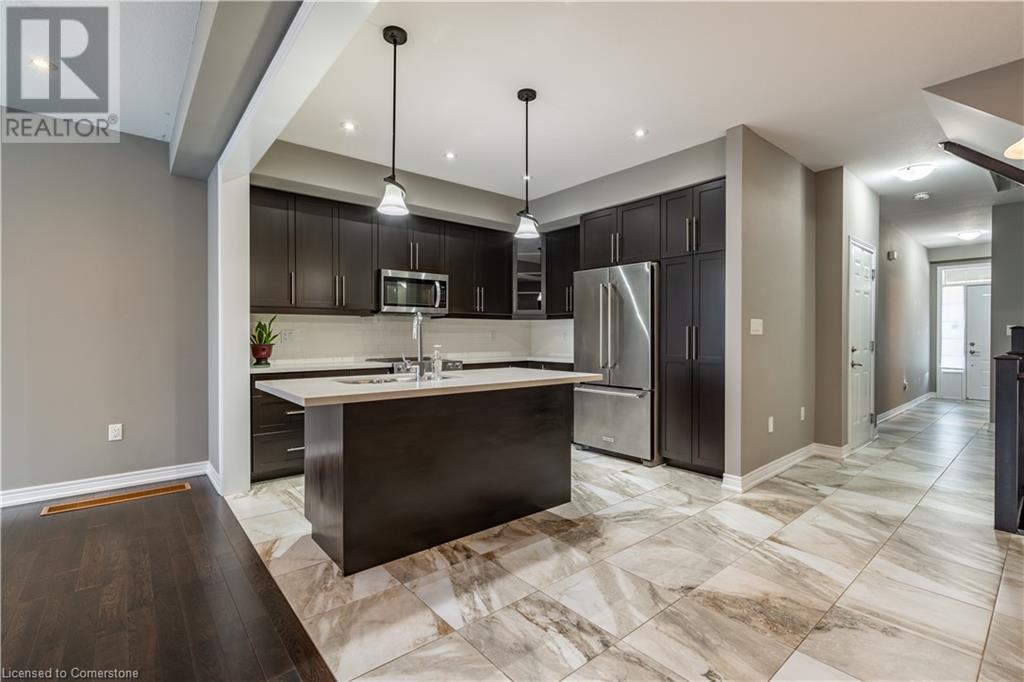Welcome to 1890 Rymal Rd E Unit 44, a stunning Branthaven built home! Great curb appeal with elegant exterior finished in brick and stone. The interior features a functional design with high 9 foot ceilings, wood floors throughout, potlights and more! The kitchen is finished with pantry, quartz countertop and high end Kitchen Aid industrial stainless steel appliances. The upper level features 3 spacious bedrooms, with the master bedroom showcasing walk in closet and a luxurious 5 pcs ensuite bathroom. 2nd floor laundry room and another full bathroom. Prime Stoney Creek Mountain location across from 192 acres Eramosa Karst conservation area, perfect For walking & hiking. Close To Schools, Shopping And Rec Centres. Access To Qew, Red Hill& Public Transit. Sqft and Room sizes are approximate. (id:55009)