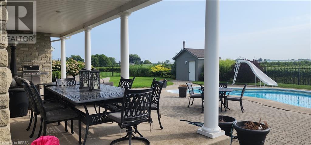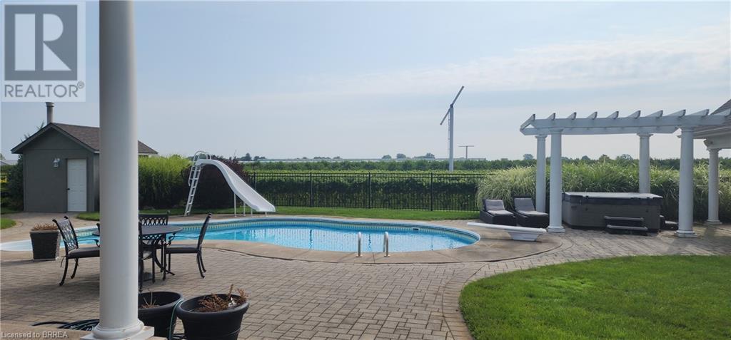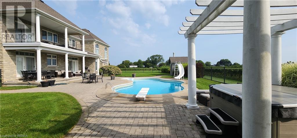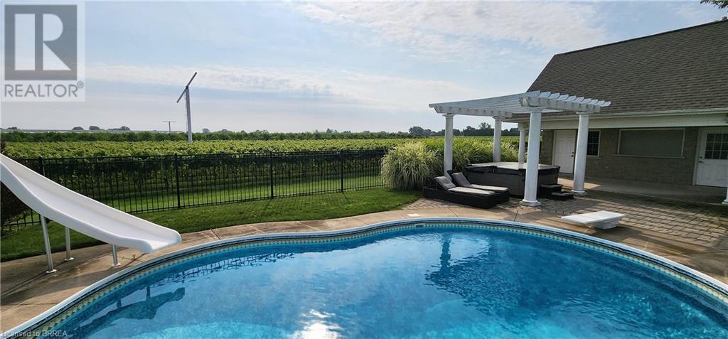 This 4161 sqft home plus Finished basement offers over 5,500 sqft of finished living space all set on 7.8 acres lot with vineyard. First time offered for sale since it was built. Gorgeous landscaping professionally manicured yearly. Has hot tub , pool and pool house. The interior of the house includes large open concept main floor with grand foyer. Kitchen has garden doors to covered porch overlooking the immaculately kept grounds and vineyard. Main floor offers secondary primary bedroom w/ensuite for in-laws and an over sized office. Second floor has 2 additional bedrooms and the large Primary bedroom with walk-in closet ,large ensuite and garden doors to a covered balcony with stunning views of the Niagara On The Lake Country side /vineyards. The Basement is big with games room ,Family Room and 5th bedroom. This home is one of the areas true beauties and you can harvest your own grapes for wine. There is approximately 6.5 acres of grapes of grapes to harvest or rent out to generate a little extra money. this home is a rare offering. (id:55009)