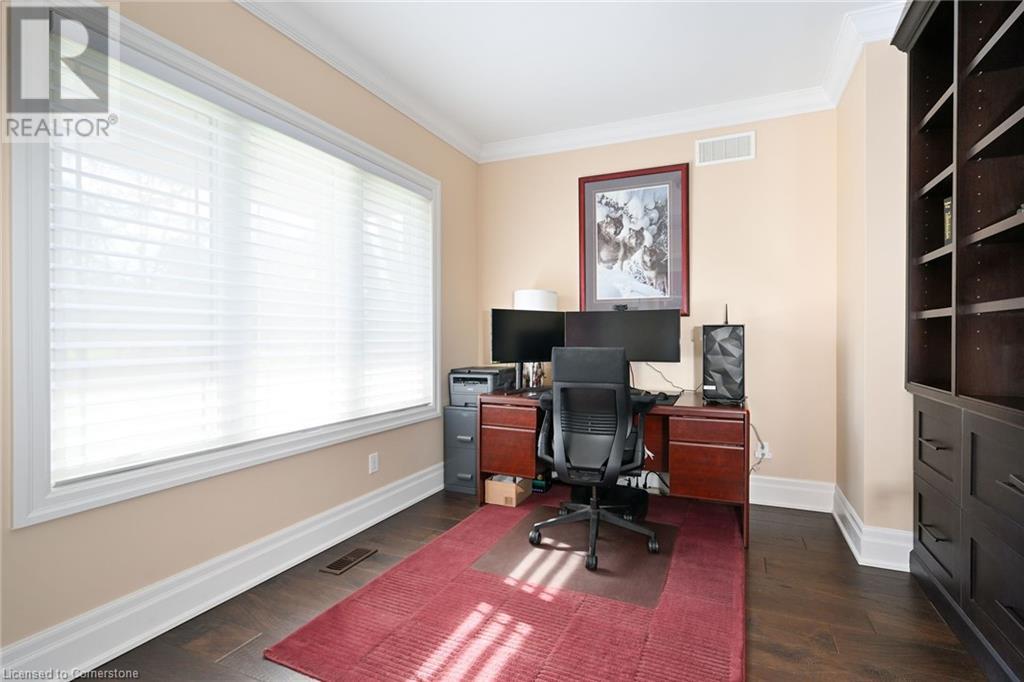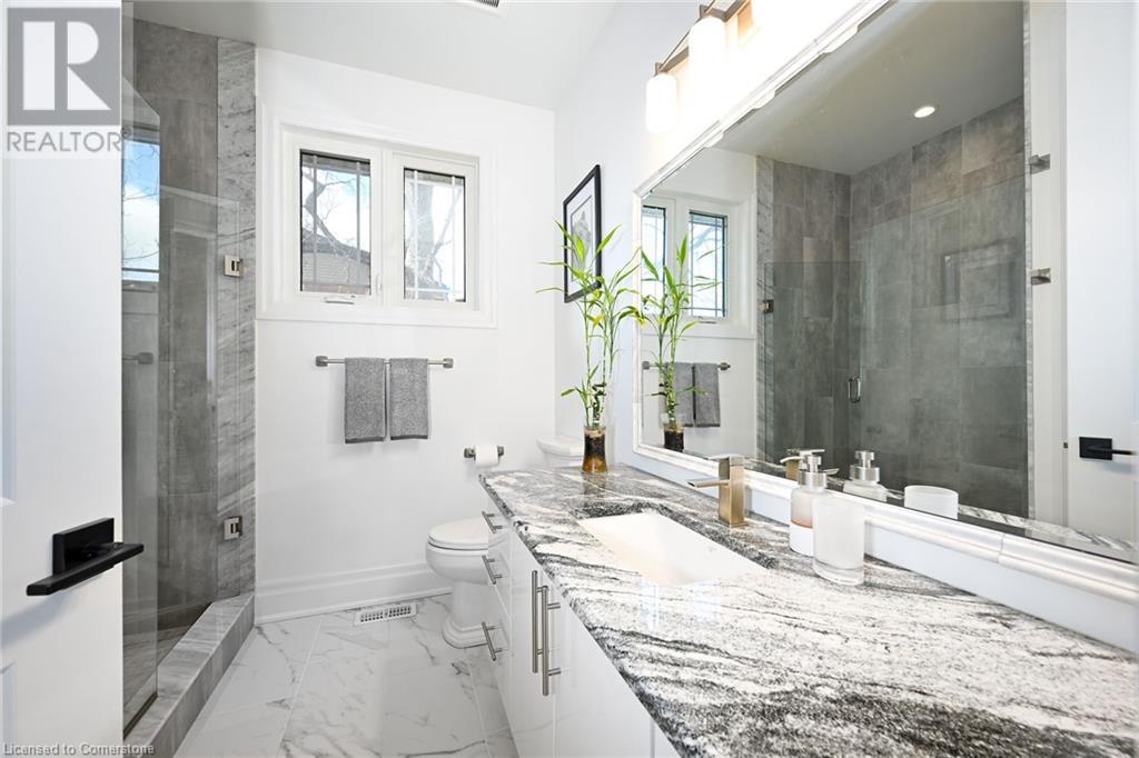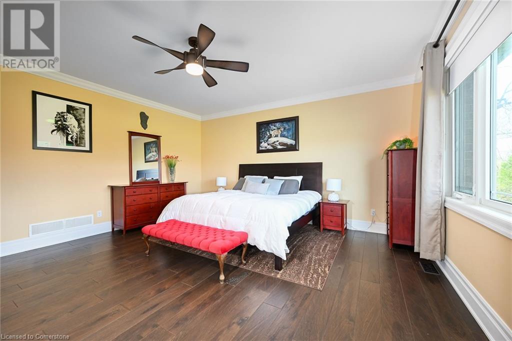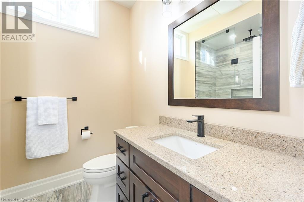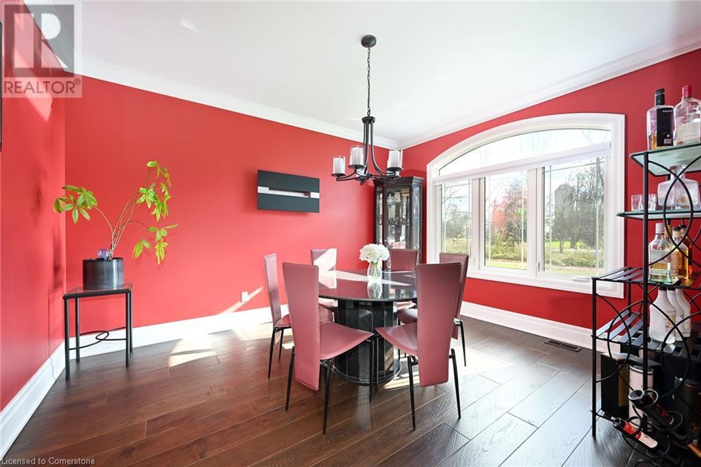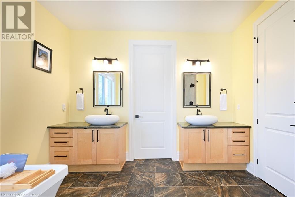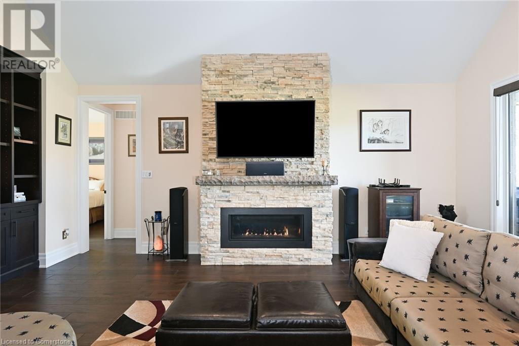 Experience the epitome of luxury living. Discover your private sanctuary in this exquisite custom-built bungalow on a picturesque 1.8 acre lot. Perfectly situated between Cambridge, Guelph, & Hamilton, with easy access to amenities & highways. This stunning home offers the best of both worlds; tranquility & convenience. Energy Star Certified & over 5000 sq ft of liveable space! Breathtaking open-concept great room features 15 ft vaulted ceiling with stone fireplace. Unleash your inner chef in the exquisite kitchen with Kitchen Aid appliances, granite, centre island with seating, custom cabinets & walk in pantry. Main floor boasts 9 ft ceilings, dedicated office, dining room, 3 spacious beds & 2.5 baths. Primary retreat showcases incredible views of the property, a spa-inspired ensuite with double sinks, soaker tub, glass shower & generous walk-in closet. Laundry with pet spa, mud room & access to the oversized double garage. Lower level is an expansive space with 9 ft+ ceilings, massive rec room, 2 large bedrooms, full bath with glass shower, ample storage & impressive utility room. Unfinished space could be converted to a self-contained in-law suite. Peace of mind comes with the most energy-efficient geothermal heating & cooling, ICF foundation for superior insulation, 200 amp service & UV/reverse osmosis water system with pressurizing tank. Additional detached garage with electricity & pass through. Fully fenced yard! Stone fire pit. Extensive list of upgrades is available. (id:55009)