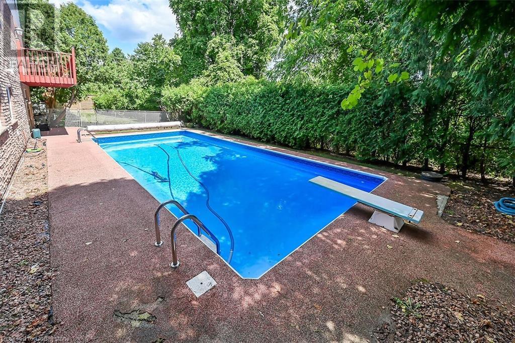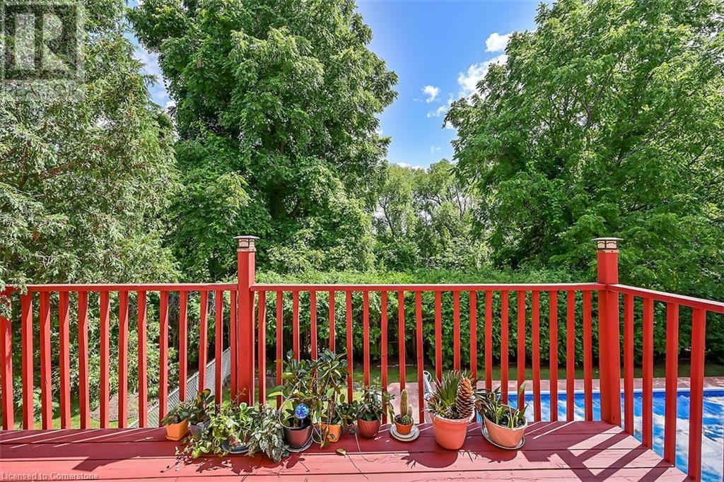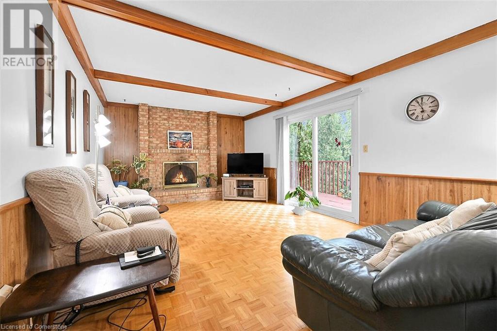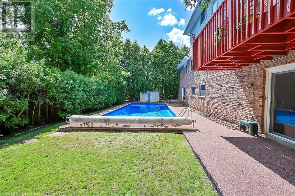 Hospitality welcomes you in this Tyandaga home backing on to green space. Manicured lawn on pie shaped yard with inground pool. Living room offers infinite adaptability. Formal and separate dining room. Well designed kitchen with breakfast area. Mud room has an entrance to double garage. Family room features parquet flooring, sliding doors and wood burning fireplace. A 2 pc. powder room on main floor. 4 bedrooms and 2 baths on the upper level. The hallway on the upper level has hardwood floor installed in August 2424. Master bedroom has walk in closet and 4 pc. ensuite. Well lighted bright basement features Den and large finished recreation room new broadloom in 2024. Wood burning fireplace in Den and sliding doors to back yard with an inground pool. Bright unfinished utility room with sizable windows and laundry. This special home you can take possession immediately. (id:55009)