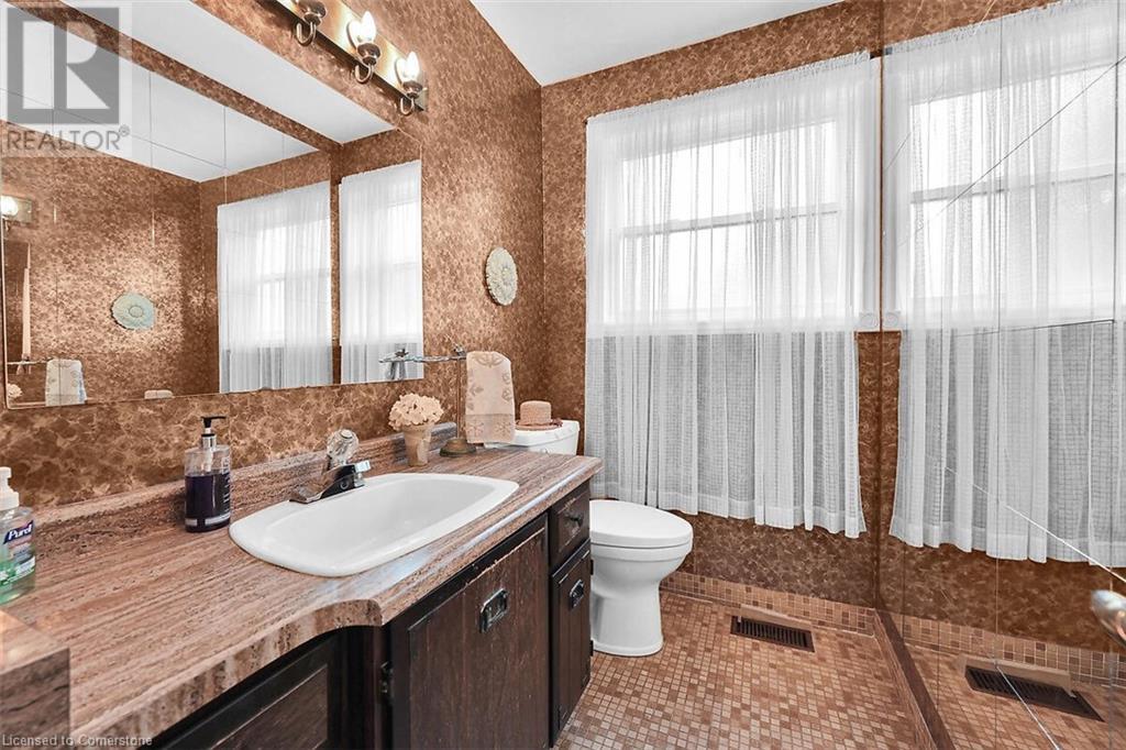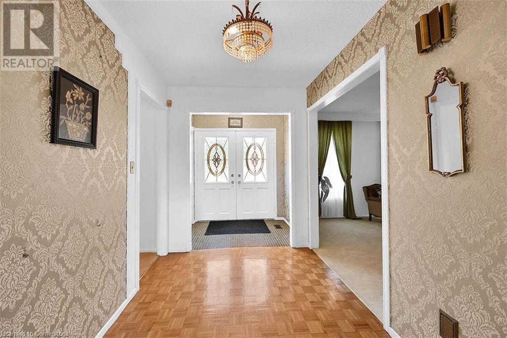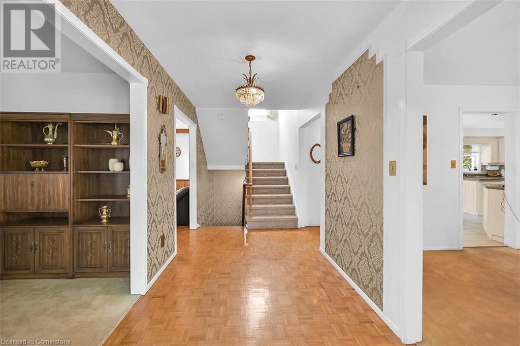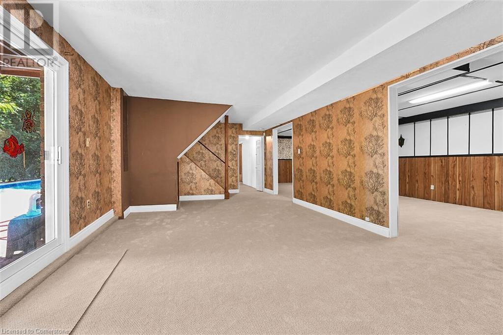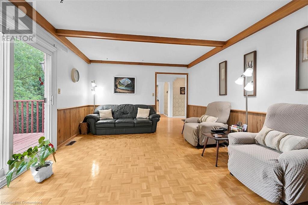 Hospitality welcomes you in this Tyandaga home backing on to green space. Manicured lawn on pie shaped yard with inground pool. Living room offers infinite adaptability. Formal and separate dining room. Well designed kitchen with breakfast area. Mud room has an entrance to double garage. Family room features parquet flooring, sliding doors and wood burning fireplace. A 2 pc. powder room on main floor. 4 bedrooms and 2 baths on the upper level. The hallway on the upper level has hardwood floor installed in August 2424. Master bedroom has walk in closet and 4 pc. ensuite. Well lighted bright basement features Den and large finished recreation room new broadloom in 2024. Wood burning fireplace in Den and sliding doors to back yard with an inground pool. Bright unfinished utility room with sizable windows and laundry. This special home you can take possession immediately. (id:55009)