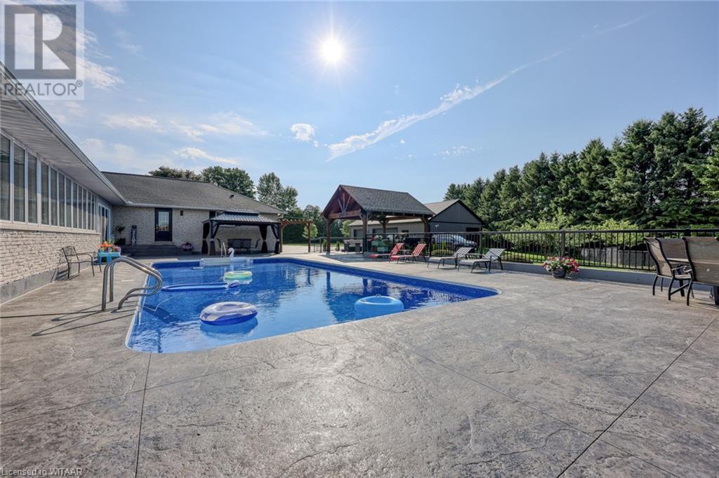 Experience modern country living in this stunning property, boasting a vast 5630 sqft of beautifully finished living space situated on a sprawling nearly 2-acre lot. This home has undergone numerous updates within the last 6 months, enhancing its appeal and functionality. The residence features 6 bedrooms, and 5 bathrooms in total including a superb primary suite with a walk-in closet and a luxurious 5-piece ensuite bathroom with his and hers sinks. The culinary enthusiast will appreciate the quartz counter tops, stainless steal appliances and a brand new butler pantry off the kitchen, complete with ample storage and a convenient sink. For family or guests, there’s a fully equipped granny flat which just finished construction. Here you will find a full kitchen with a pantry, dining and living area, one bedroom, a bathroom and a laundry room. The newly renovated 1000 sqft sunroom provides a modern touch with stunning views of the surrounding landscape. Outdoor living is just as impressive with a newly built 20x20ft gazebo next to the heated salt water pool that has been updated with stamped concrete and gas heater. The railing surrounding the pool has built-in lighting and 2 gates, adding that extra touch for those warm summer nights by the pool. Additional outdoor structures include a 10x20 storage/hobby shed, a 9x11 garden shed, and two 18x25 buildings, one of which is heated and insulated. Automotive and workshop enthusiasts will find their match in the oversized 2-car attached garage with in-floor heating and a 32ftX50ft insulated shop, also with in-floor heating and a private septic system. This property is meticulously maintained and equipped with an electric dog fence and an auto-start Generac Generator for peace of mind. It’s truly a standout offering for those seeking a luxurious, well-appointed home with extensive facilities for both relaxation and hobbies. The home has been finished top to bottom with careful thought and nothing left to be done but enjoy! (id:55009)