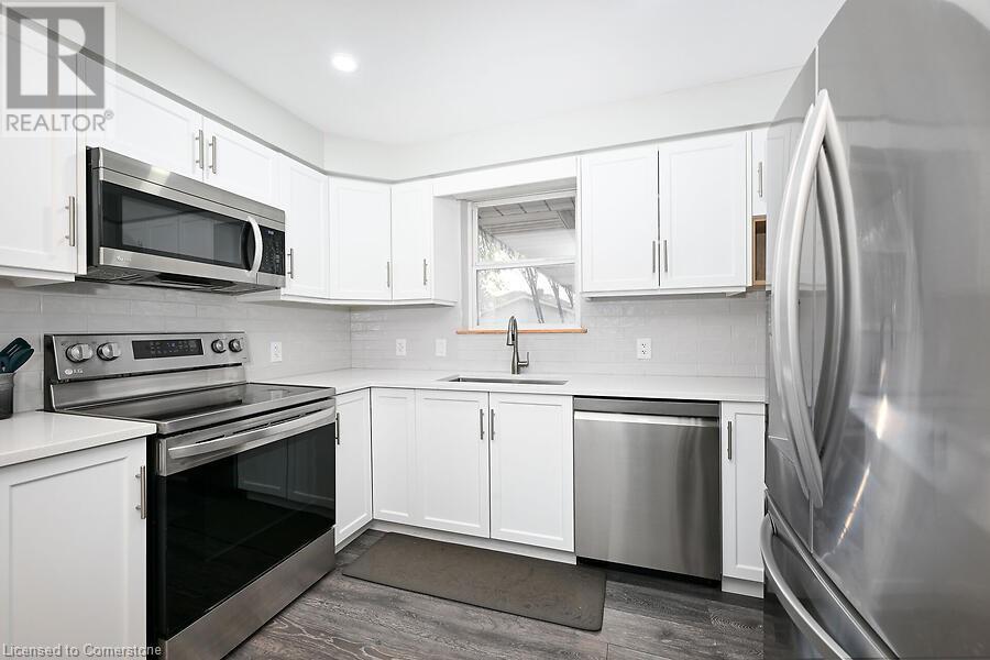 Nestled in the desirable Stoney Creek, this charming raised bungalow offers 1,200 sq. ft. of comfortable living space. Featuring 3 spacious bedrooms and 2 full bathrooms, this home has everything you need. The main floor boasts a recently remodeled kitchen with white shaker cabinets, quartz countertops, and stainless steel appliances. The open-concept living and dining areas are perfect for entertaining, while the sleek, remodeled bathroom showcases a stunning overhead shower and modern tile. The fully finished basement, complete with a full kitchen, bedroom, and expansive living area, is ideal for an in-law suite or additional living space. With potential for a second bedroom and convenient dual laundry areas, this home is designed for versatility. The backyard is an outdoor enthusiast's dream—166 feet deep with a patio for relaxation and a detached two-car garage, perfect for a car lover or hobbyist. Ideally located near the QEW, major shopping, dining, and top-rated schools, this property is perfect for commuters and families alike. Don't miss your chance at living in an ideal neighborhood to go along with you perfect family home! (id:55009)