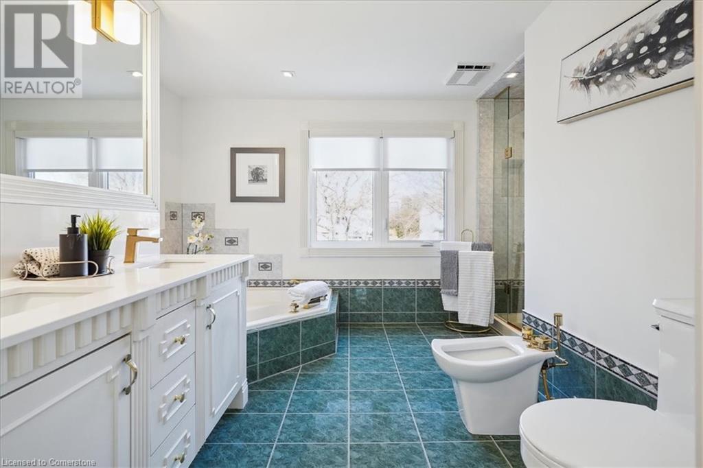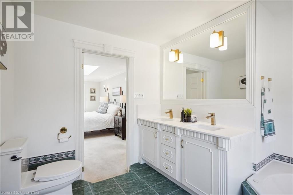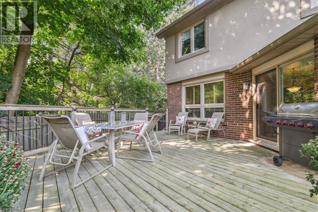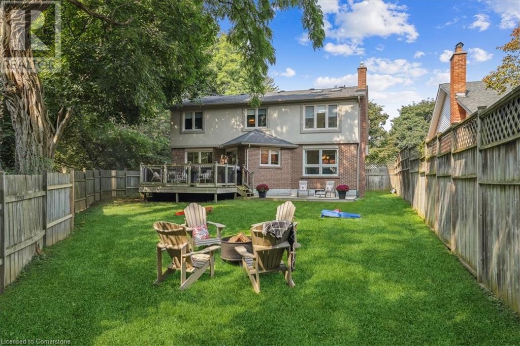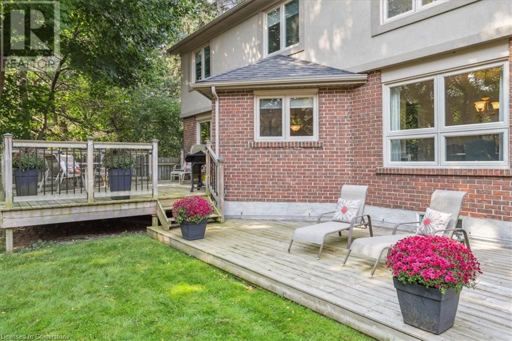 Exceptional 5 bedroom, 3.5 bathroom on a quiet cul de sac in South Burlington's esteemed Roseland community, offering over 3350 square feet of family & entertainment enjoyment! The home follows a traditional floor plan with the living room sitting just off of the spacious foyer, the eat-in kitchen features an abundance of cupboard space, granite countertops and a walk out to the large backyard. The formal dining room and cozy family room featuring wainscoting and a gas fireplace sit just off the kitchen. The main floor is complete with a 2-piece powder room and laundry room. The upstairs features a rare opportunity of 5 full bedrooms, the primary suite offers a gas fireplace, 2 skylights, walk-in closet and a 6-piece ensuite. The lower level is fully finished with a rustic brick feature wall, gas fireplace and an English pub style wet bar perfect for those who are looking to entertain friends and family plus a bonus room and 3 piece bathroom. The location and yard is one of a kind, siding onto Tuck Creek & Lakeshore Road offering the property a vast amount of privacy with sun all day, the large grass area and wood deck is the perfect blank slate to make it your own. All this opportunity on a fabulous cul-de-sac with local traffic only, a short walk to Lake Ontario, parks and schools and a quick drive to all that Downtown Burlington has to offer, all amenities and all major highways! (id:55009)