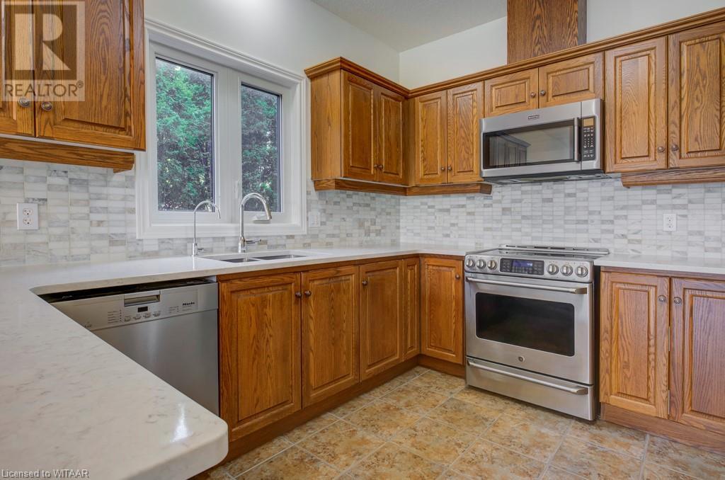 ELEGANT LIVING WITH A VIEW! Don't miss the opportunity to enjoy this 2+1 Bed, 3 bath, brick bungaloft with walkout basement, situated on a sprawling 50x207 lot. On the main, enjoy a large living, kitchen and dining room setup that walks through sliding doors to a freshly updated elevated deck with serene view overlooking the large yard and peaceful Thames Valley. A large primary bedroom with his and her closets and large 5pc bathroom are also present. The level also offers handy main floor laundry, inside entry from an oversized two car garage, 2pc bath, a large office that could easily serve as a secondary bedroom, plenty of closets for storage as well as a decorate staircase leading to additional levels. Upstairs, enjoy a loft area boasting another large bedroom or office with ensuite privileges. Downstairs, find a blank canvas that offers plenty of space for a recreation or games room and/or additional bedrooms. The area walks out to a covered patio area as well as large sunroom with large hot tub. Downstairs also offers a spacious utility room that provides an abundance of room for storage or space for a potential craft room or dedicated hobby area. Residency in the village of Sally Creek is accompanied by a monthly fee which offers access to a Community Centre featuring dining hall, lounge, kitchen, art and games rooms, library, gym as well as varying special events. This location is a stone's throw from restaurants, Golf Course, public transport, biking and hiking trails and Pittock Lake. Other updates include: Quartz countertops throughout (24), fresh neutral paint throughout (24), hardwood floors, drinking water filtration system, all windows and front door replaced (17), deck surface and railing (24), owned on-demand water heater, water softener and furnace. (id:55009)
