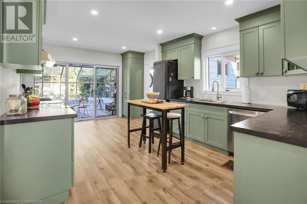 Welcome to 2 Kidd Avenue! This beautiful home is a perfect combination of century home charm and all the modern conveniences that we expect. The cheerful front door welcomes you into a bright and spacious foyer. All rooms lead to the kitchen which is truly the heart of this home. The stylish custom cabinets are complemented by gorgeous wood counters. Made of reclaimed wood from the threshing room floors of old barns, these counters are full of character. Newly refinished hardwood floors accent the gracious living room, dining room & foyer. A natural gas fireplace with stone facing provides a focal point in the dining room. The main floor family room has patio doors that open onto the deck. Enjoy the peace of your backyard in any of the many sitting areas. Or if the weather is uncooperative, have your morning coffee in the sunroom overlooking the well tended backyard. Convenient main floor laundry is combined with a stylish 3 piece bathroom with glass walk in shower. Upstairs, there are four generous bedrooms, all with hardwood floors. The four piece bathroom features a heated floor for chilly mornings. Freshly painted. Unspoiled walk-up attic has huge potential! Basement is unfinished with tons of storage space. Single car garage. Situated on a large beautifully landscaped lot, it is centrally located within walking distance of schools, parks, shopping and all the amenities of downtown Grimsby. Easy QEW access and on the doorstep of Niagara! (id:55009)