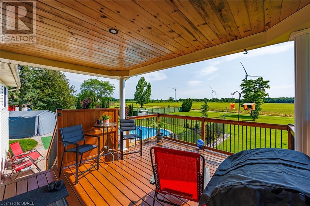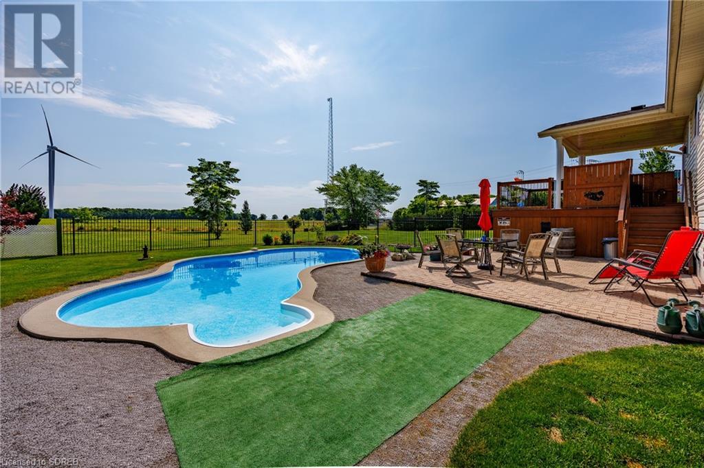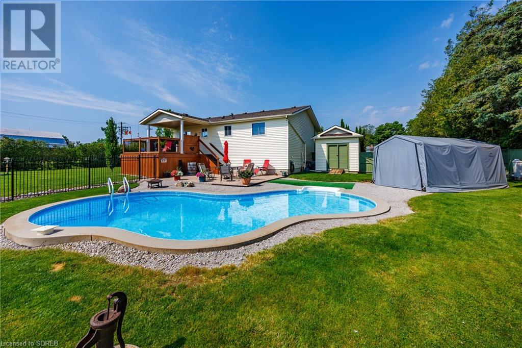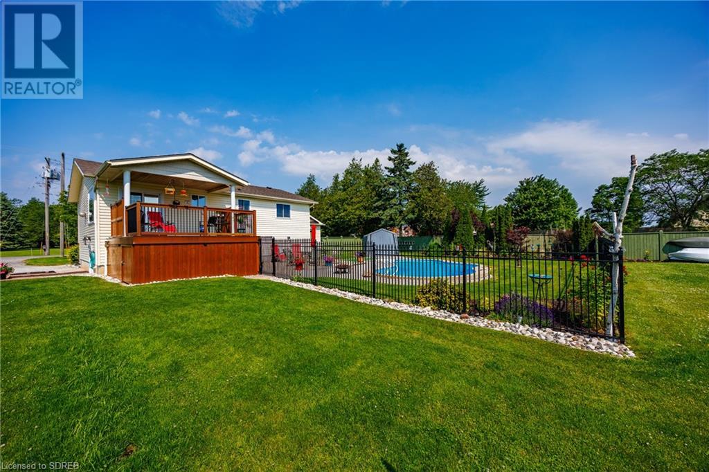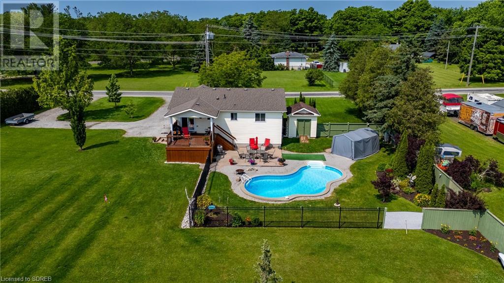 Welcome to 20 Port Ryerse Rd, a charming raised bungalow in the picturesque lakeside village of Port Ryerse. Nestled in a family-friendly hamlet of Norfolk County, this home features a spacious layout with 3+1 bedrooms, providing comfort and functionality for your family's needs. As you enter, you'll find a cozy foyer leading to a well-equipped kitchen with ample counter space, a dining room with views of the surrounding farm fields, and a spacious living room with a gas fireplace. The main level also includes three generous-sized bedrooms and a 4-piece bathroom with ceramic tile and en-suite. The lower level is perfect for family gatherings and entertaining, featuring a large rec room, a roughed-in bath, an additional bedroom, and a utility room. Outside, the fenced yard offers plenty of space for play and relaxation, with a large covered deck and an inground pool. Located in Port Ryerse, this home provides the perfect blend of small-town charm and the convenience of being just a 10-minute drive from Simcoe or Port Dover. Don't miss your chance to own this wonderful property. Check out the virtual tour and book your showing today and experience all that this home has to offer! (id:55009)