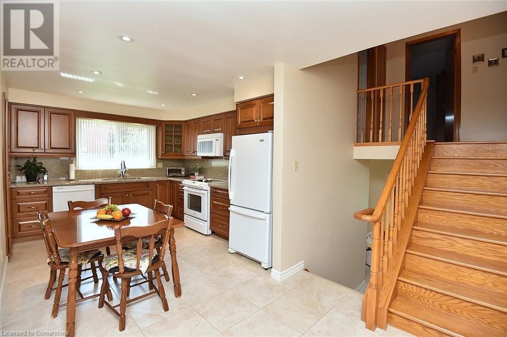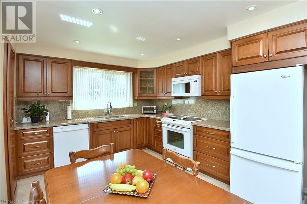 Beautiful & well maintained back split on a desirable West mountain court! All amenities are nearby including shopping at the Meadowlands Power Centre and easy highway access. Features include: formal living & dining room, large eat-in kitchen with b/in dishwasher, micro fan, some pot lights, Maple cabinetry and beautiful granite counters. The unfinished basement offers stairs that lead to the 2 car garage. Bedroom level features gleaming hardwood floors, most windows have been replaced. Newer 3 piece bath off the family room and sliding door to the 34.30X142.92 ft LOT! Aggregate double drive, sides & patio. Eavestroughs feature leaf guard protection for easy maintenance. Great opportunity for the extended family. Buyer to do due diligence for taxes & measurements. Any inclusions will all be in AS IS condition. (id:55009)