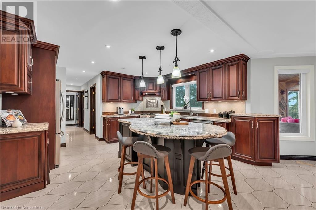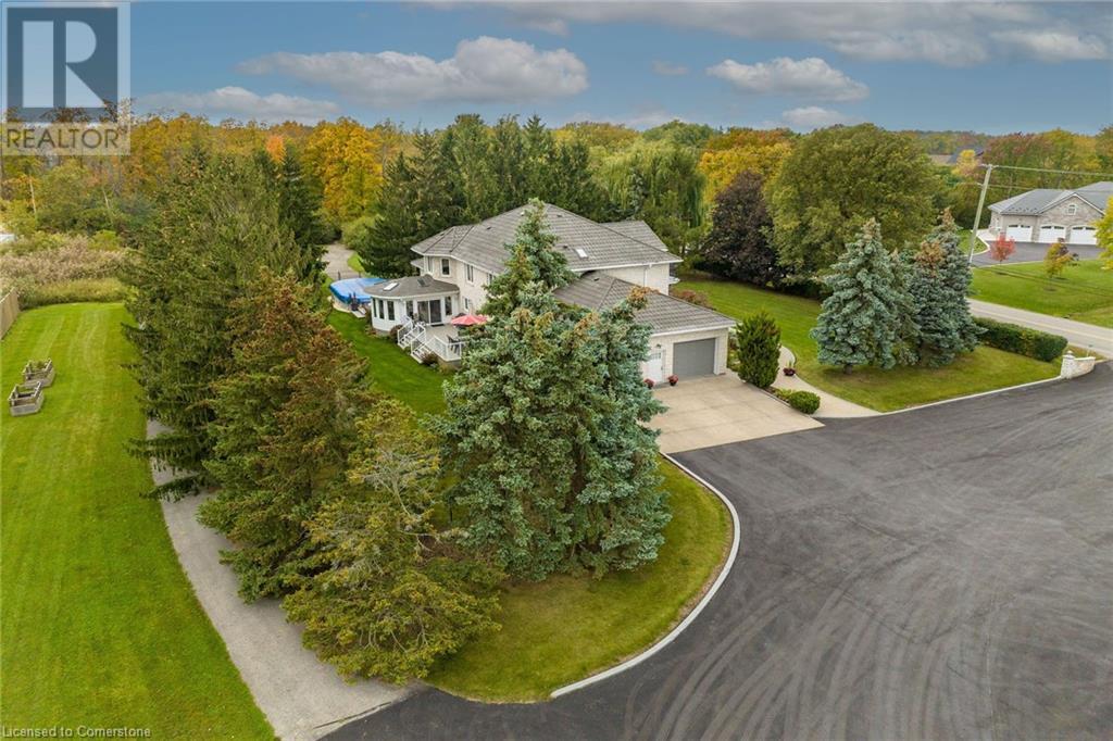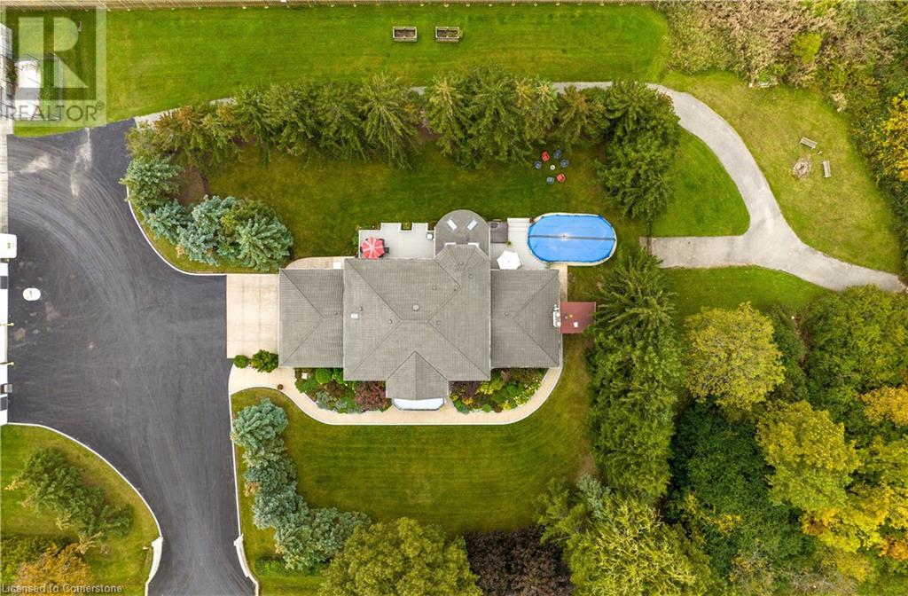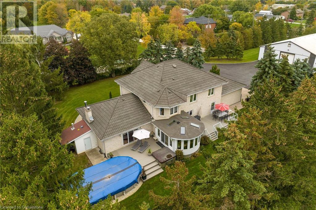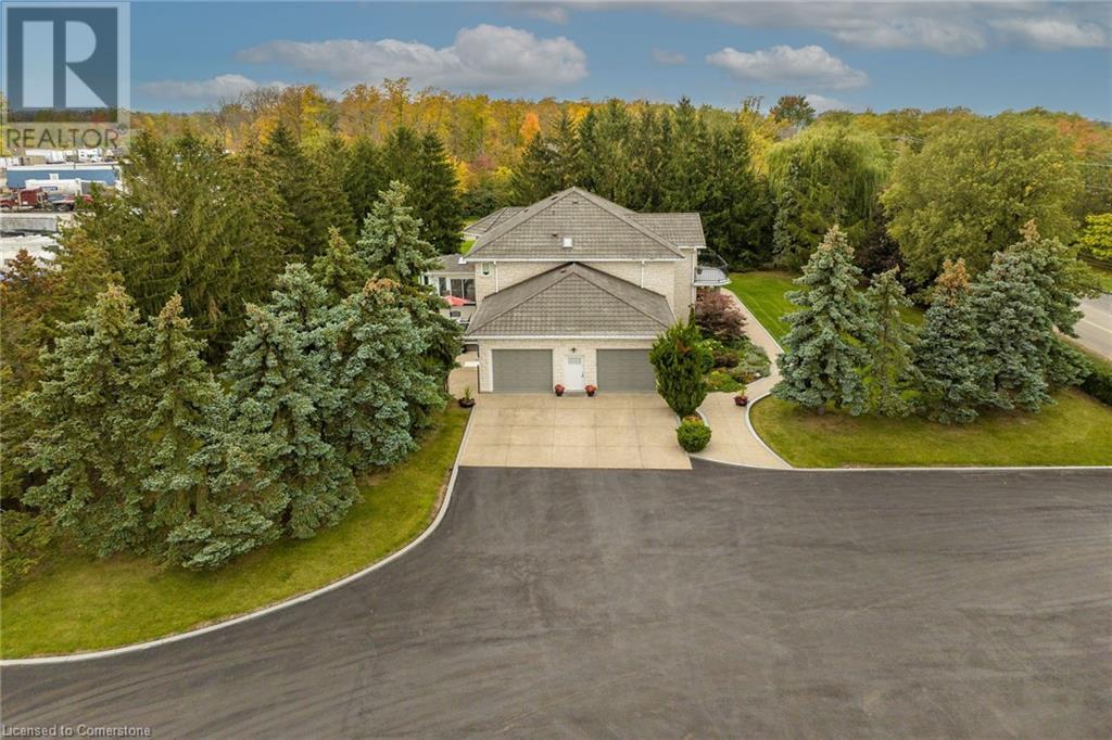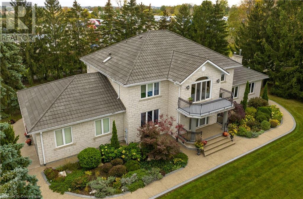 Stunning custom-built home on 3.06 acres, exceptional area in SC. This rare lot has 658 ft frontage x 206 ft depth. Absolute gorgeous home features 4 bedrooms, 5 baths, fully finished basement, with approx 6500 sqf of finished space on 3 levels. Main floor offers elegant finishes & loads of natural light. Massive family room has wood fireplace, large eat-in kitchen, granite counter tops, high-end appliances, formal dining room, grand in-home office, full bath, laundry/mud room & bright sunroom. Solid oak stair case leads to 2nd level with hardwood flooring throughout. Spacious primary bedroom features 7-piece ensuite bath, his & hers closet. 2nd level also has 3 additional large bedrooms, 2 full baths, & access to front balcony. Fully finished basement offers tons of room for family entertainment featuring complete kitchen, full bath, custom wet bar, recreation room, plus a family/cinema with cozy wood fireplace, & 3 large storage rooms. Oversized 2 car garage with entry to home and basement, along with exposed aggregate pathway. Enjoy your backyard oasis with heated above ground pool, composite decks & surrounding beautiful trees that give you complete privacy. BONUS FREE STANDING BUILDING (7200 sqf approx) with business possibilities, features separate natural gas meter & hydro meter, cooler, storage, 2 oversized loading doors, office, washroom & ample parking space. Unique, extraordinary property with huge potential & many income possibilities. Current zoning is A1 & P6. (id:55009)