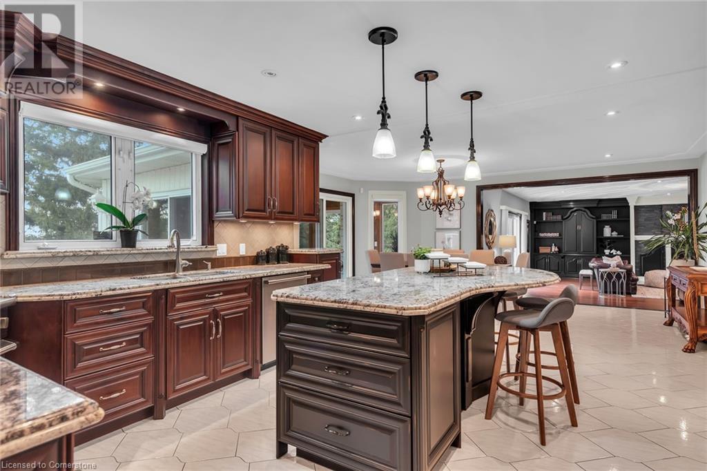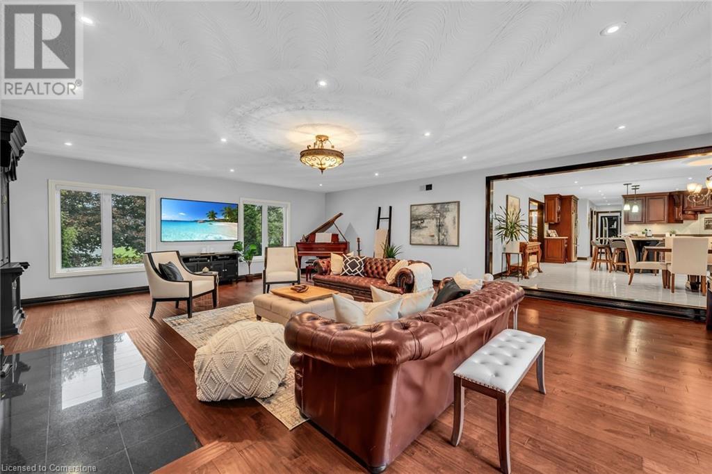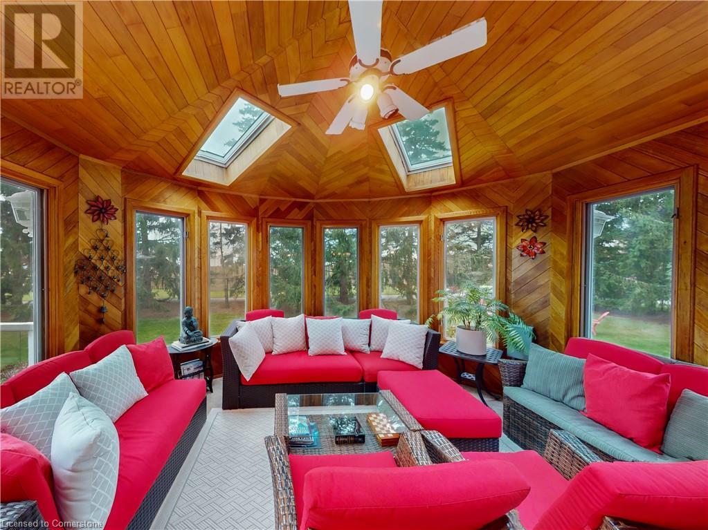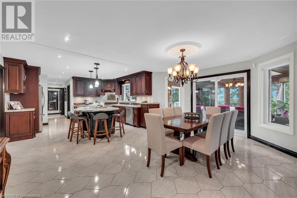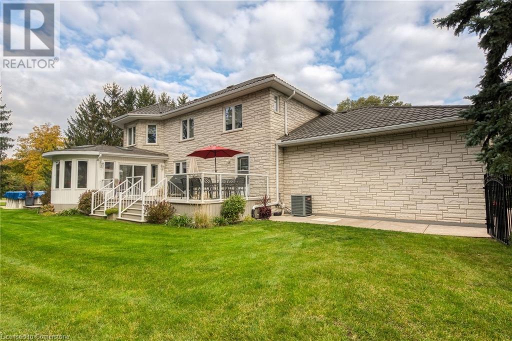 Stunning custom-built home on 3.06 acres, exceptional area in SC. This rare lot has 658 ft frontage x 206 ft depth. Absolute gorgeous home features 4 bedrooms, 5 baths, fully finished basement, with approx 6500 sqf of finished space on 3 levels. Main floor offers elegant finishes & loads of natural light. Massive family room has wood fireplace, large eat-in kitchen, granite counter tops, high-end appliances, formal dining room, grand in-home office, full bath, laundry/mud room & bright sunroom. Solid oak stair case leads to 2nd level with hardwood flooring throughout. Spacious primary bedroom features 7-piece ensuite bath, his & hers closet. 2nd level also has 3 additional large bedrooms, 2 full baths, & access to front balcony. Fully finished basement offers tons of room for family entertainment featuring complete kitchen, full bath, custom wet bar, recreation room, plus a family/cinema with cozy wood fireplace, & 3 large storage rooms. Oversized 2 car garage with entry to home and basement, along with exposed aggregate pathway. Enjoy your backyard oasis with heated above ground pool, composite decks & surrounding beautiful trees that give you complete privacy. BONUS FREE STANDING BUILDING (7200 sqf approx) with business possibilities, features separate natural gas meter & hydro meter, cooler, storage, 2 oversized loading doors, office, washroom & ample parking space. Unique, extraordinary property with huge potential & many income possibilities. Current zoning is A1 & P6. (id:55009)
