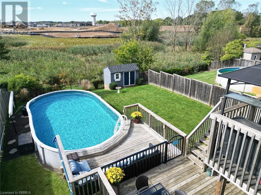 Welcome home to the popular WEST BRANT community where this stunning, two storey home is situated on a beautiful green space lot with walk-out basement and no direct residential backyard neighbours! Offering 3 bedrooms + loft, 2.5 bathrooms, and a finished walk-out basement to the backyard oasis of your dreams! The exterior of this home offers ample curb appeal with manicured lawns and gardens. The front entrance is spacious with ceramic tile that transitions into a gorgeous engineered hardwood floor throughout the large open concept space featuring the kitchen, dining area and large living room. The kitchen offers white cabinetry with centre island, large pantry and stainless steel appliances. The dining area is spacious and comfortably fits 8.  The spacious living room has a modern wainscotting accent wall with sconce lighting and patio doors lead you out to a great BBQ patio which is convenient during warm summer months. A large powder room and garage access complete the main level. Make your way upstairs to find an immense loft space that's perfect for a child's play area or teenage hang out! A large master bedroom with ensuite privilege and walk-in closet awaits. Two additional generous size bedrooms complete the upper level. If more space is what you need then this home has it! The basement offers a beautifully finished recreation room with a large 3 pc bathroom and loads of room for storage. The large windows cascade in pools of natural light and opens up to your second entrance to your backyard with a two-tiered deck, above-ground pool and fenced yard. This is the perfect place to relax and watch your kids enjoy some fun in the sun! This home is great for commuters too - you're less than ten minutes to the highway! Check out the feature sheet for more information! (id:55009)