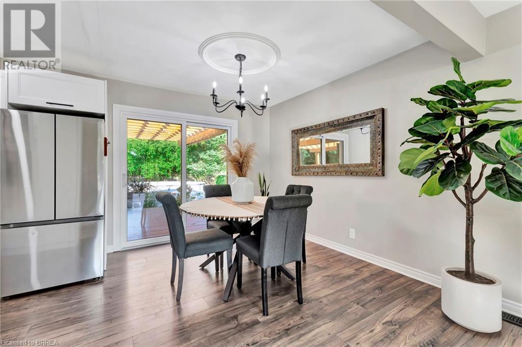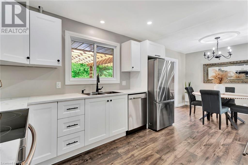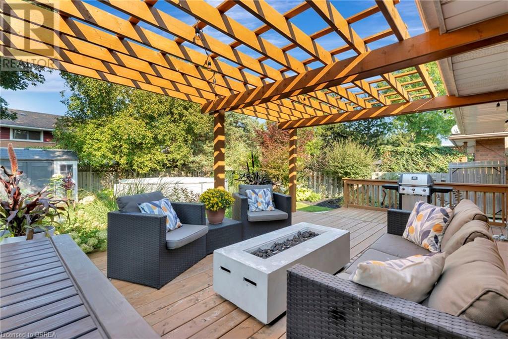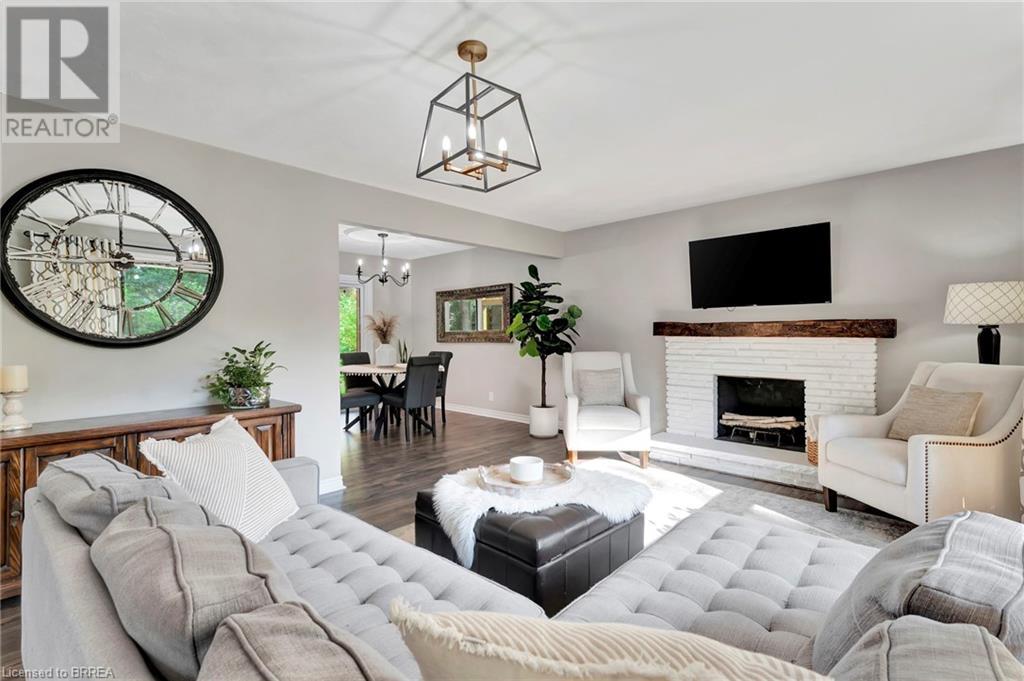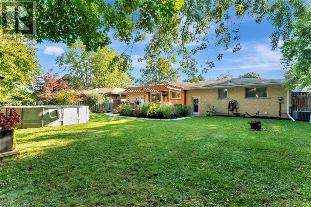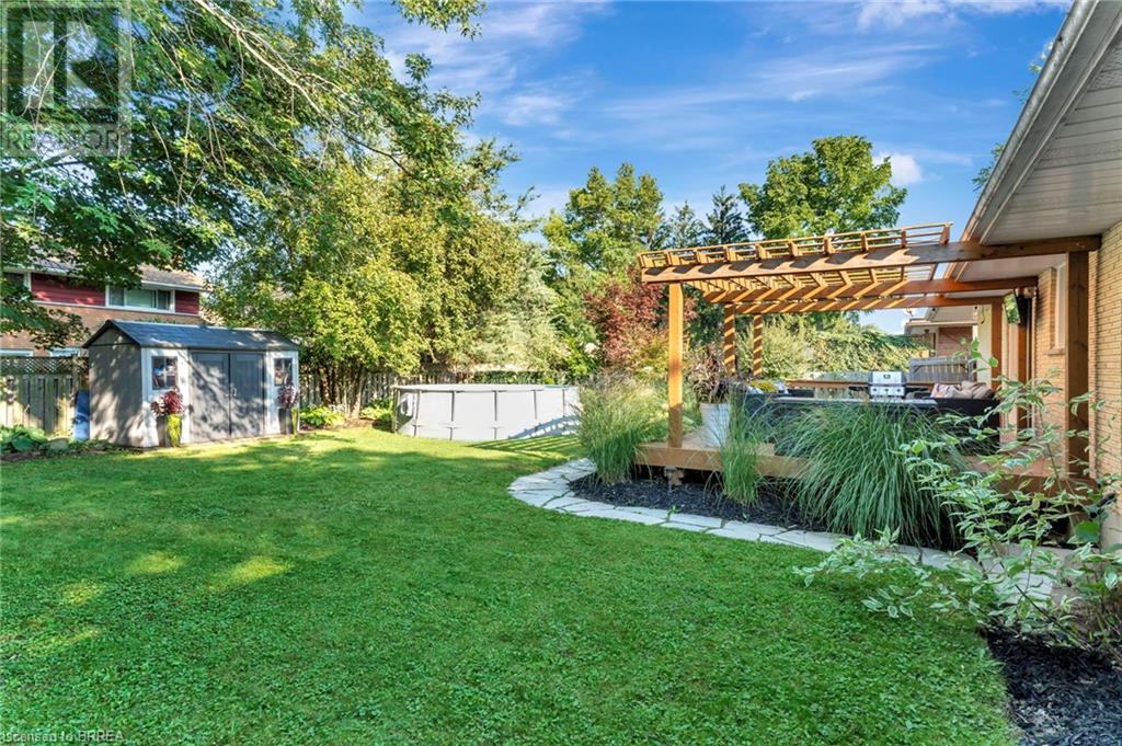 Welcome to 200 Memorial Drive—an exquisitely maintained bungalow nestled in one of Brantford's most coveted north-end neighborhoods. This charming residence is ideal for any family, boasting 4 inviting bedrooms and 2 well-appointed bathrooms. Upon entering, you'll be greeted by a generously sized living room bathed in natural light, courtesy of a large window that frames the picturesque front gardens. This space exudes warmth and comfort, enhanced by a cozy brick fireplace with an elegant wood mantle, perfect for chilly evenings. Adjacent to the living room, you'll find a spacious dining area seamlessly connected to the kitchen. The dining area is an excellent venue for family gatherings and entertaining guests. It opens directly onto a delightful back deck, making indoor-to-outdoor transitions effortless. The kitchen is a culinary enthusiast's dream. It features pristine white shaker-style cabinetry, gleaming stainless steel appliances, and a floor-to-ceiling pantry offering abundant storage. The main level also includes 3 generously sized bedrooms, including a luxurious primary suite with two expansive closets. A conveniently located 4-piece bathroom complements the space, featuring dual vanities and a relaxing tub/shower combination. Descend to the lower level, where you'll discover an extra-large recreation room, an additional bedroom, and a well-designed 3-piece bathroom. Step outside to your fully-fenced, private backyard oasis. The beautifully crafted deck is enhanced by a picturesque pergola and surrounded by mature trees, offering a serene retreat. Cool off in the above-ground pool on warm days or simply relax in your tranquil outdoor space. Additional highlights of this property include a convenient garage-to-backyard access door and a large storage shed. The home is ideally located close to shopping, Highway 403 access, and all the amenities that Brantford's North End has to offer. This home is ready to become your family's dream haven! (id:55009)