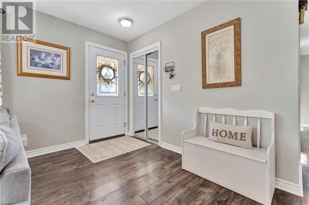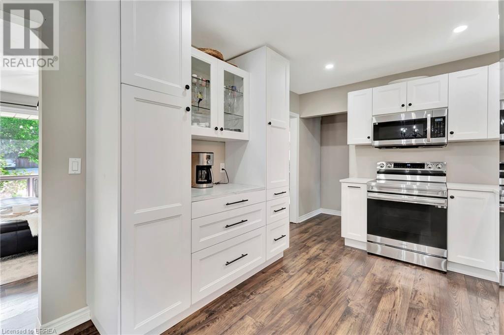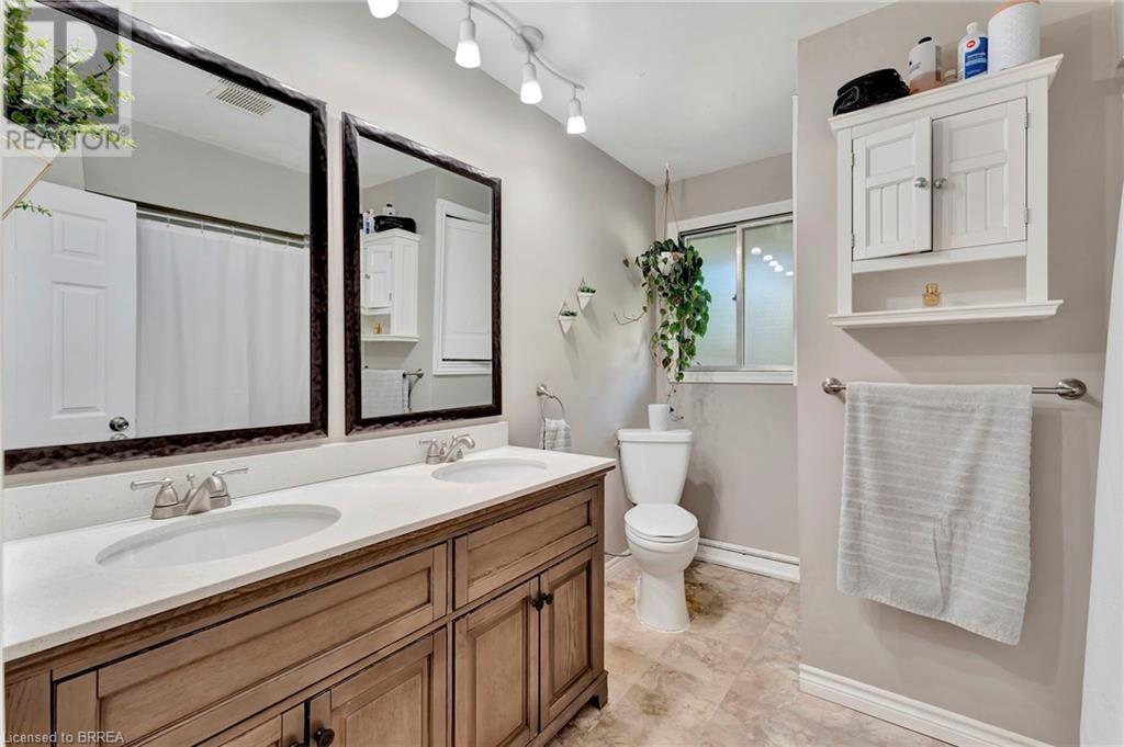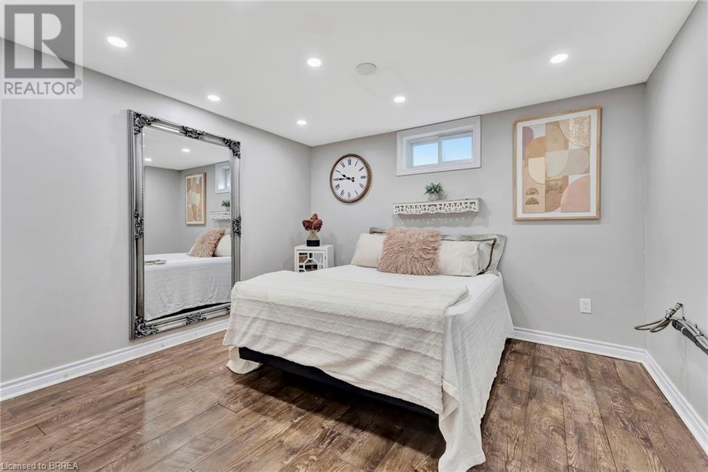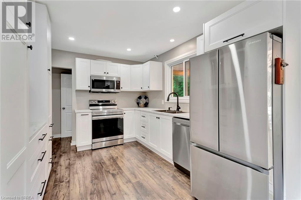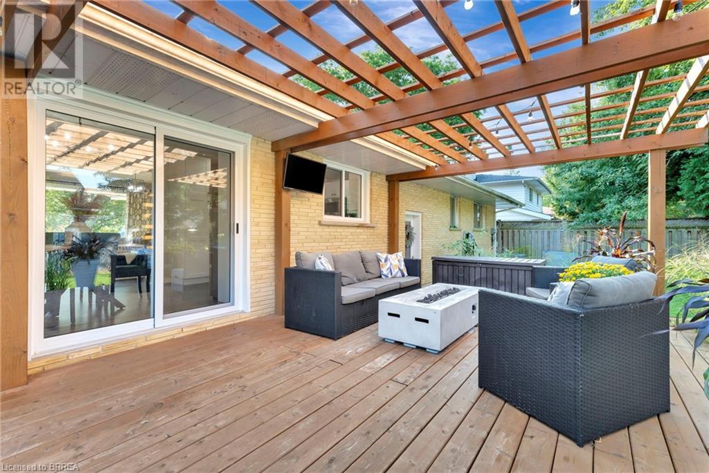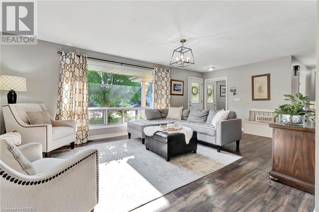 Welcome to 200 Memorial Drive—an exquisitely maintained bungalow nestled in one of Brantford's most coveted north-end neighborhoods. This charming residence is ideal for any family, boasting 4 inviting bedrooms and 2 well-appointed bathrooms. Upon entering, you'll be greeted by a generously sized living room bathed in natural light, courtesy of a large window that frames the picturesque front gardens. This space exudes warmth and comfort, enhanced by a cozy brick fireplace with an elegant wood mantle, perfect for chilly evenings. Adjacent to the living room, you'll find a spacious dining area seamlessly connected to the kitchen. The dining area is an excellent venue for family gatherings and entertaining guests. It opens directly onto a delightful back deck, making indoor-to-outdoor transitions effortless. The kitchen is a culinary enthusiast's dream. It features pristine white shaker-style cabinetry, gleaming stainless steel appliances, and a floor-to-ceiling pantry offering abundant storage. The main level also includes 3 generously sized bedrooms, including a luxurious primary suite with two expansive closets. A conveniently located 4-piece bathroom complements the space, featuring dual vanities and a relaxing tub/shower combination. Descend to the lower level, where you'll discover an extra-large recreation room, an additional bedroom, and a well-designed 3-piece bathroom. Step outside to your fully-fenced, private backyard oasis. The beautifully crafted deck is enhanced by a picturesque pergola and surrounded by mature trees, offering a serene retreat. Cool off in the above-ground pool on warm days or simply relax in your tranquil outdoor space. Additional highlights of this property include a convenient garage-to-backyard access door and a large storage shed. The home is ideally located close to shopping, Highway 403 access, and all the amenities that Brantford's North End has to offer. This home is ready to become your family's dream haven! (id:55009)