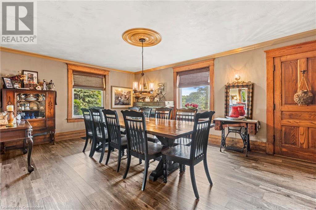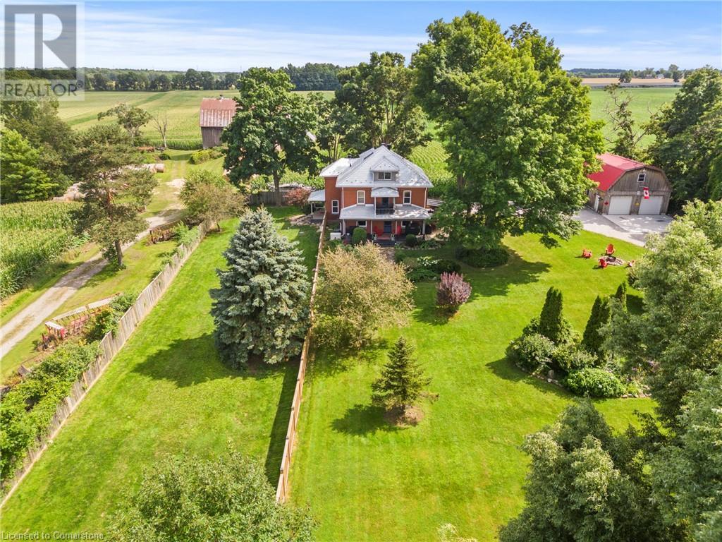 One of a kind Stunning well kept 1800s original double brick farmhouse , sitting on just shy of 2 acres, surrounded 200 acres of cropland as scenery ,sitting on a very private rd near the quaint mill pond in brant county , gorgeous chestnut woodwork throughout the home , 5 large bedrooms , 2 upscale newly renovated bathrooms , new flooring throughout, 2022 addition with 3 private rooms for office or personal use, 3 sets laundry, two storey heated barn loft and w/ 3 car shop, 2 custom Grand River sheds, wraparound porch with built in hot tub, and serene landscaping. Updates include new septic , drilled well , water softener , furnace , central air , electrical , generac system , appliances , metal roof , windows both bathrooms and much much more , 9 km from Waterford, 11 from Brantford, and 10 min to 403. Ideal for those looking for a peaceful country home with a short distance to the city! (id:55009)