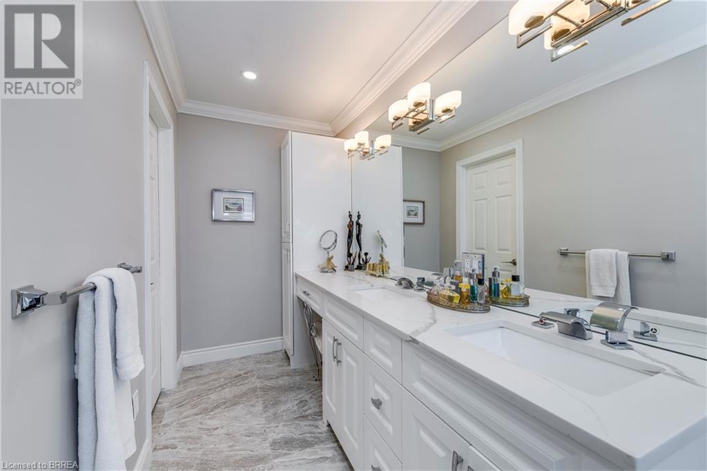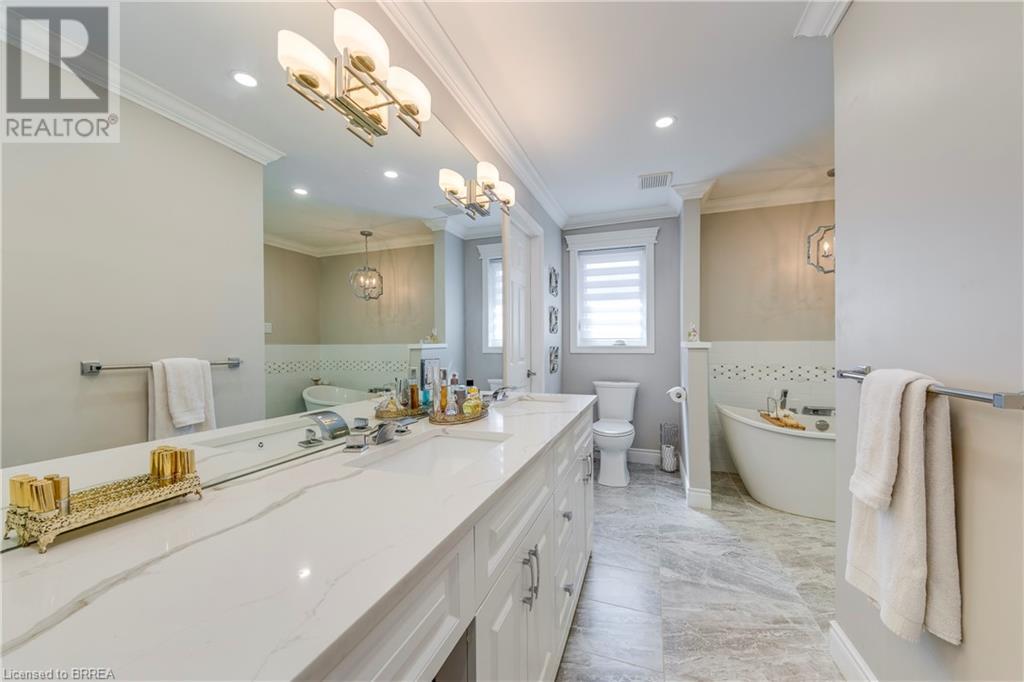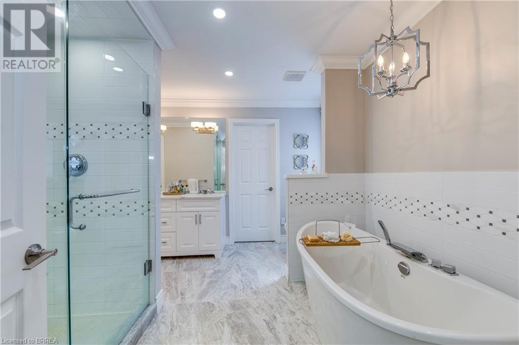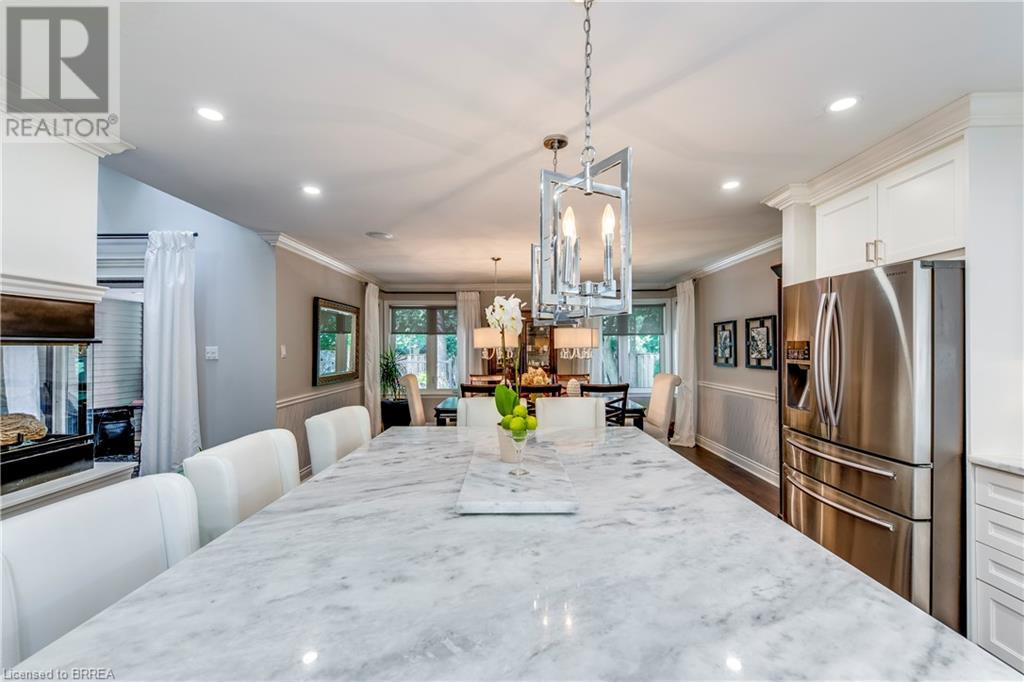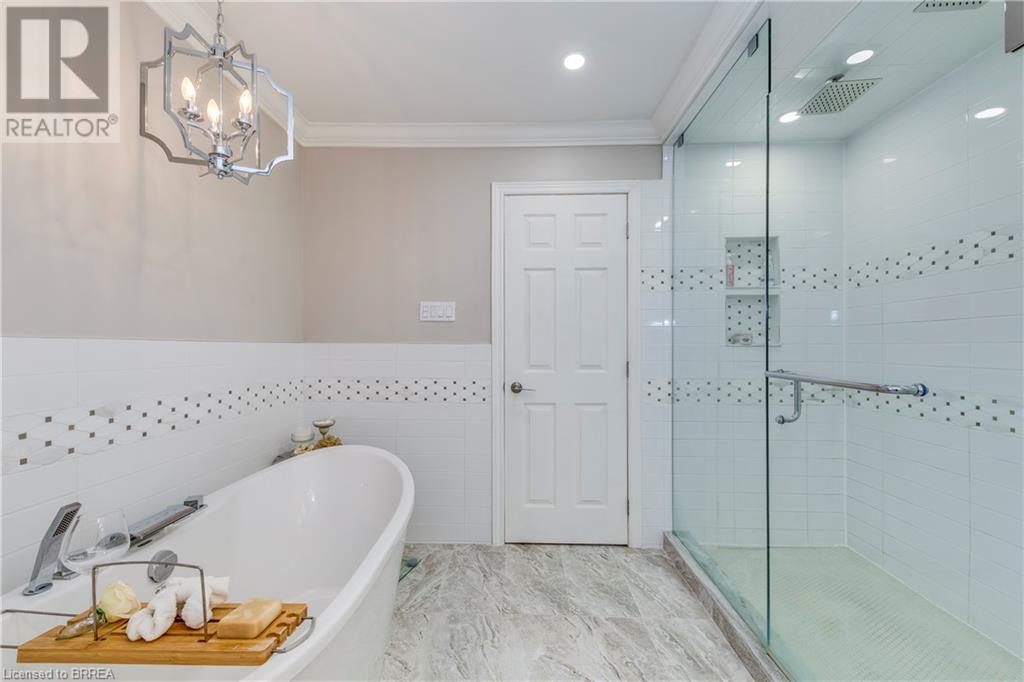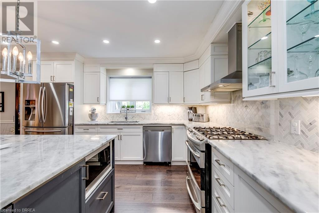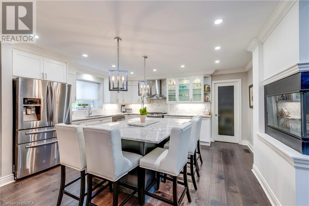 This fabulous 3+1 bedroom bungalow just became available in the heart of old Ancaster, just minutes to the old town village, central to shopping & the 403. This Incredible multigenerational home features 3 main floor bedrooms, a soaring cathedral ceilings leading to the secluded backyard with lots of mature trees and no rear neighbours and a fenced yard. In the heart of the home, is a 3 sided fire place visible from the new designer Kitchen (2020) , the large living room & adjoining space dining room. Your family will enjoy gathering around the massive island with seating for 5 while the chef prepares the feast. The Spacious Master Bedroom and luxury ensuite with free-standing soaker tub and glass shower, with his & her walk-in closest finished in modern design. Entertain & relax in the family theatre room, with builtin sound system. SMART home features, automated lights, and sound. Other updates include main floor bathrooms, newer lighting, modern neutral decor, a covered patio with glass rails, beautiful 6 person hot tub and so much more! Making this home, truly a place for family & entertaining. the partially finished basement complete with theatre room, custom bath & family room, make this space a place to gather or potential in-law suite. With too many updates to list, includes New Furnace 2024, A/C 2023, roof 2019, windows, 2020. (id:55009)