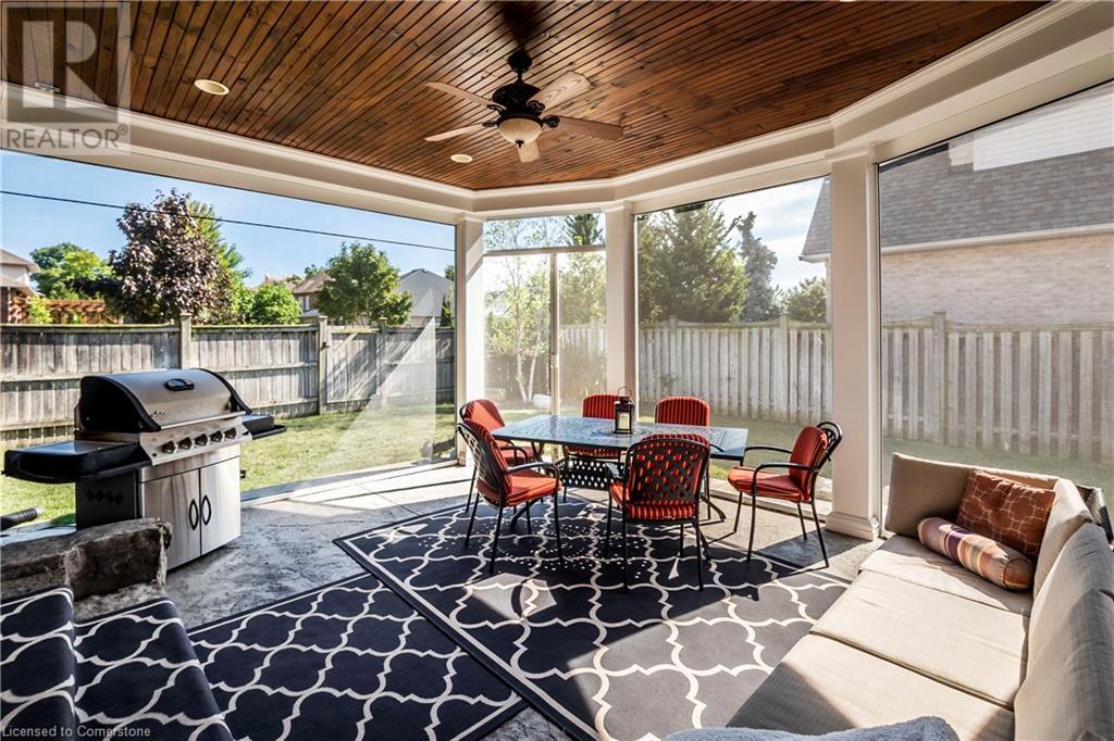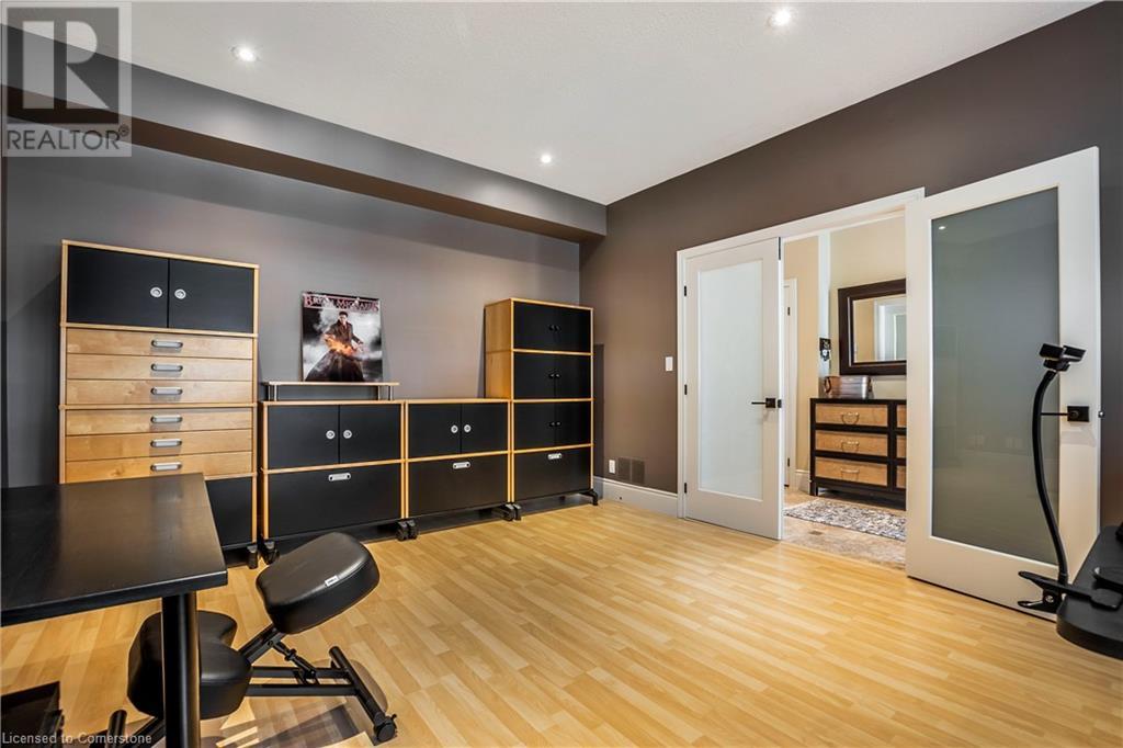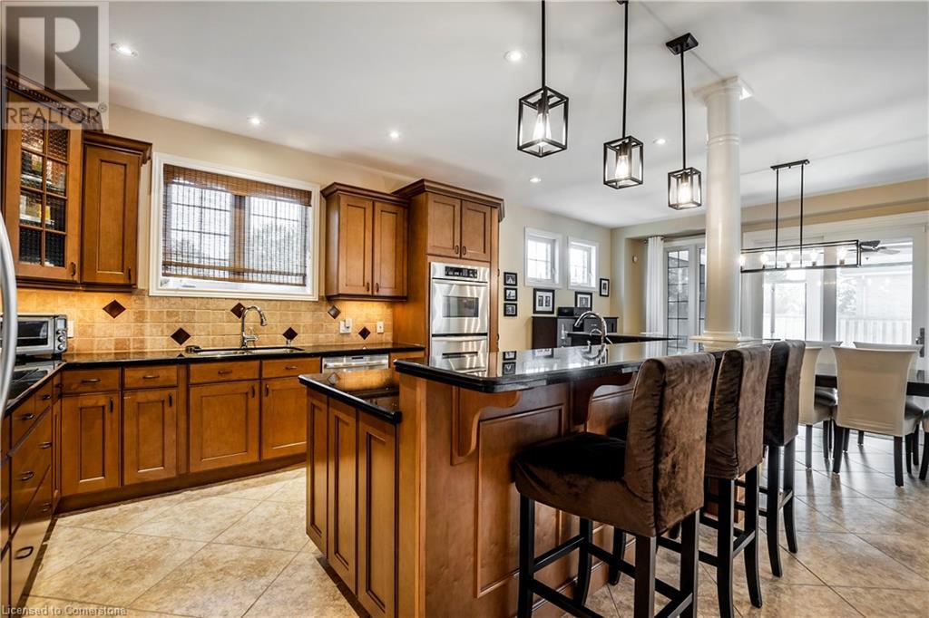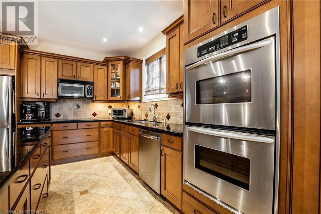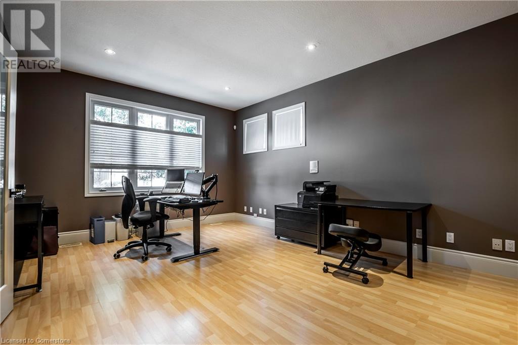 A must see Millcroft Gem, this home’s spaciousness will impress! Several updates and upgrades are evident in this 4+1 bed, 3 ½ bath home. The open concept main floor includes: maple kitch cupboards & stainless appliances b/i ovens, large prep island with sink and room for seating, spacious dining area, great room with h/w floors & gas f/p with view of yard, sliding doors to enclosed patio with retractable screens. In-floor heating, flat ceilings, pot lights and tasteful light fixtures throughout. Main floor also includes separate substantial office space. Lower level is fully finished and includes additional bedroom plus 3pc bath, plenty of organized storage areas. H/W floors on bedroom level, primary bdrm with builtins and ample closet space, 5 pc bath. Home is finished with concrete drive and walkways, sprinkler system and insulated oversized double garage, gas bbq hookup, & security system. Roof 2016 (id:55009)