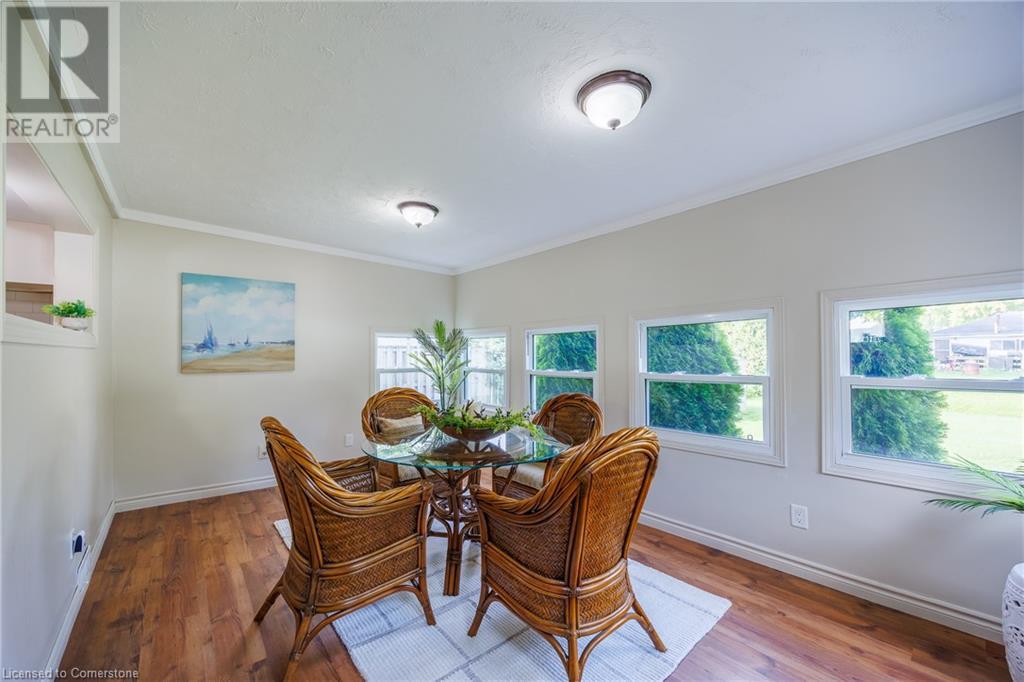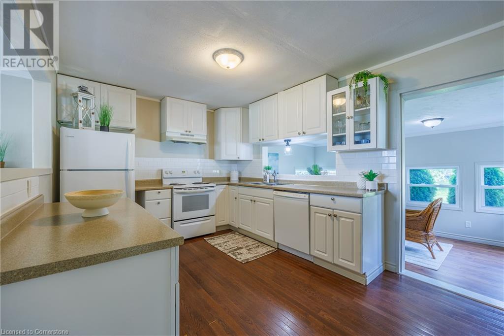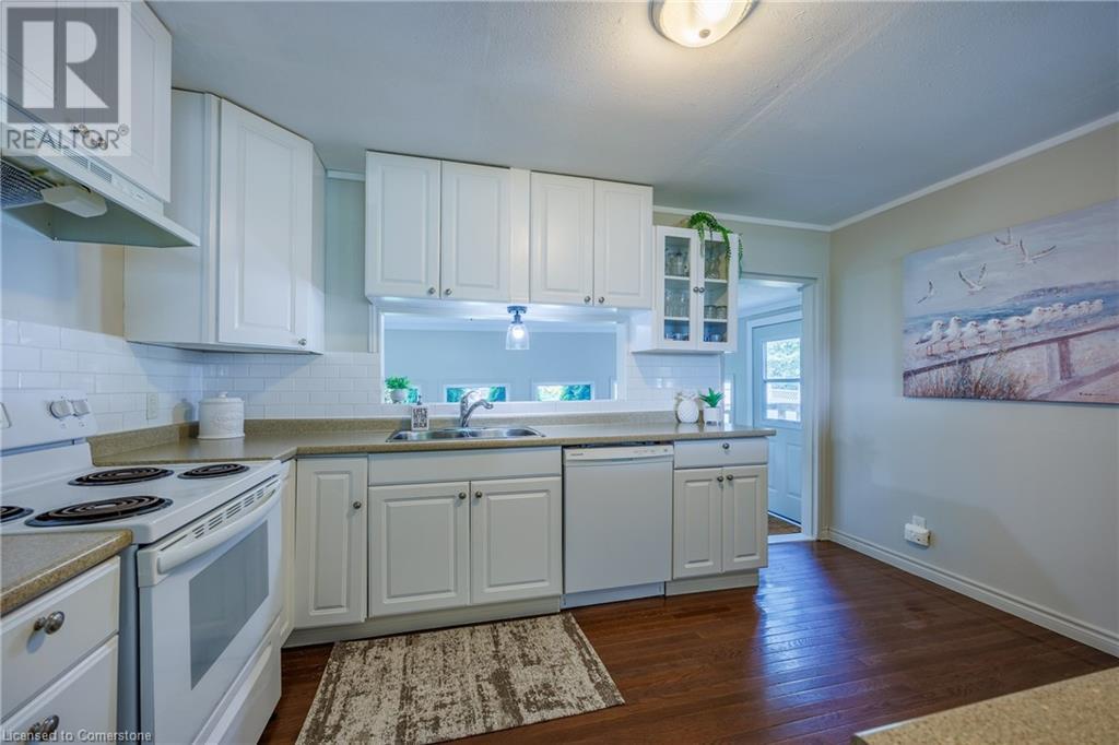 Welcome to 21 Lakeview Avenue in Port Dover! This charming 2-bedroom, 2-bath home, complete with a beautifully landscaped front yard, perfectly combines character and location. Nestled in a mature neighborhood, you'll be just minutes from a links-style golf course, marina, parks, and the vibrant downtown area filled with unique shops and eateries, not to mention the sandy shores of Port Dover beach. As you step inside, you’ll be greeted by a warm living room featuring a gas fireplace and a large window that fills the space with natural light. The dining room, adorned with hardwood floors and five windows, creating a bright atmosphere for meals and access to the rear deck. The kitchen is designed for both convenience and entertaining, featuring a passthrough window to the living and dining areas, along with ample cupboards and counter space. The main floor also includes a laundry room, a 2-piece bath, and a cozy bedroom, leading to the spacious primary bedroom with direct access to the back deck. The backyard is a true retreat, showcasing a deck, shed, and expansive green space—perfect for outdoor activities. Whether you're a first-time buyer, looking to downsize, or interested in a rental opportunity, this home is an excellent choice. Don’t miss out on the chance to make this delightful property your own. Check out the virtual tour and call today to schedule your private showing! (id:55009)