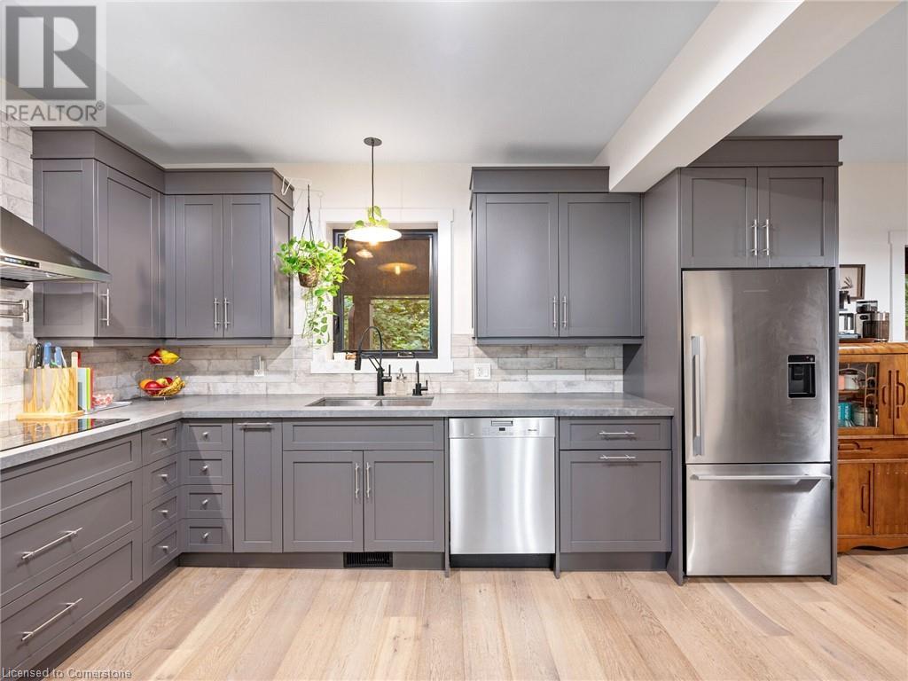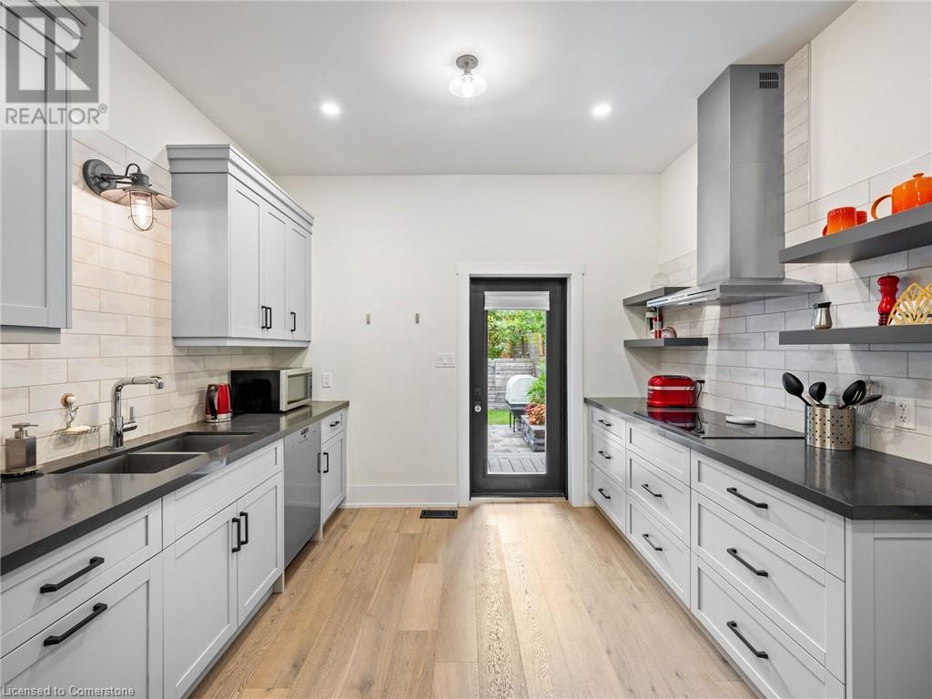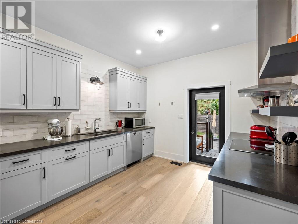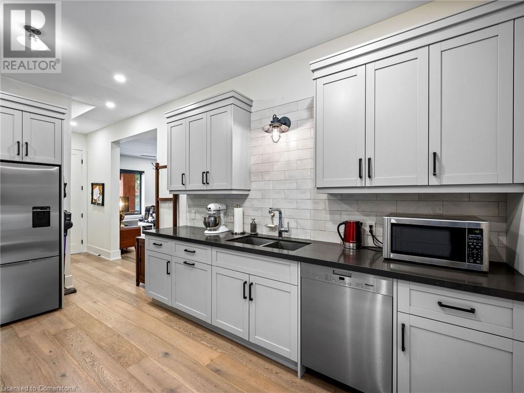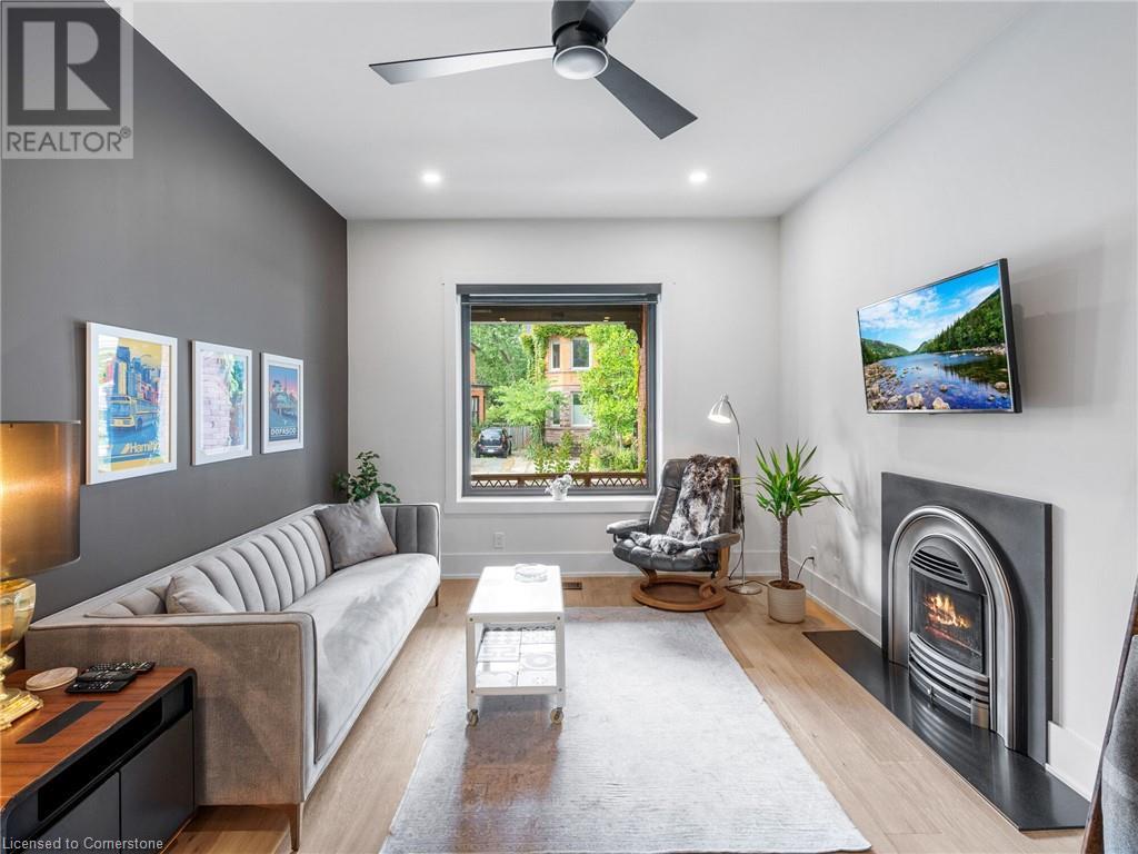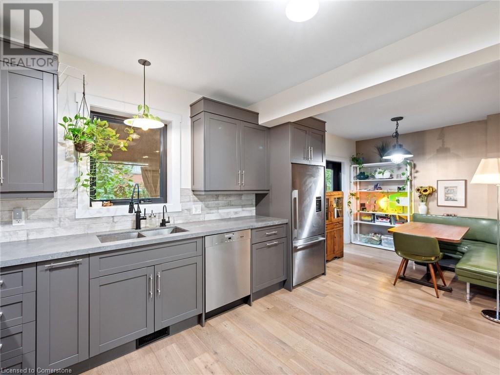 Welcome to Sweet (and Suite) Caroline. A stunning century home that has been completely renovated with the highest quality of craftsmanship. Located in beautiful Durand, this legal duplex has both units above ground and is brilliantly designed with high-end finishes for the modern lifestyle. Set up for living in one unit and renting out the other or supporting a multi-generational home. Well suited for short- and/or long-term occupancy with its walkability to downtown, Locke St, farmers markets, cafes, schools, trails, and event spaces all while maintaining a warm community feel. Main-floor unit offers 10’ ceilings, gorgeous kitchen with walkout to private yard, living room, primary bedroom that has a 4-pc ensuite in addition to the powder room. Upper unit spans the 2nd & 3rd floors and is finished with the same superior quality. The 2nd floor has 9’ ceilings, large kitchen leading to expansive balcony with its own gas hook-up, 4-pc bathroom, living room, and a bright spacious room that could be used as a bedroom, office, dining room … whatever you need! The 3rd floor has 2 good-sized bedrooms separated by a loft space and 3-pc bathroom. Both units have oak wide-plank flooring throughout; solid core doors with Emtek handles and hinges; Restoration Hardware fixtures; Ciot patterned tile in entrances, kitchens, and bathrooms; top-of-the-line appliances and quartz countertops; premium faucets, toilets and tubs. No detail has been overlooked. See list of improvements attached. (id:55009)