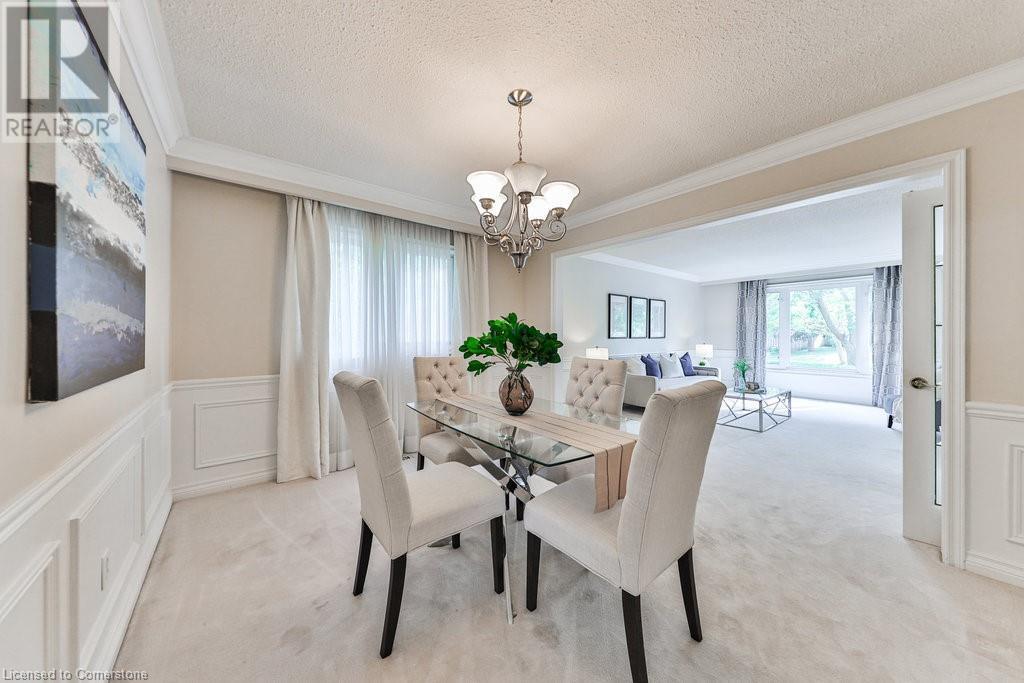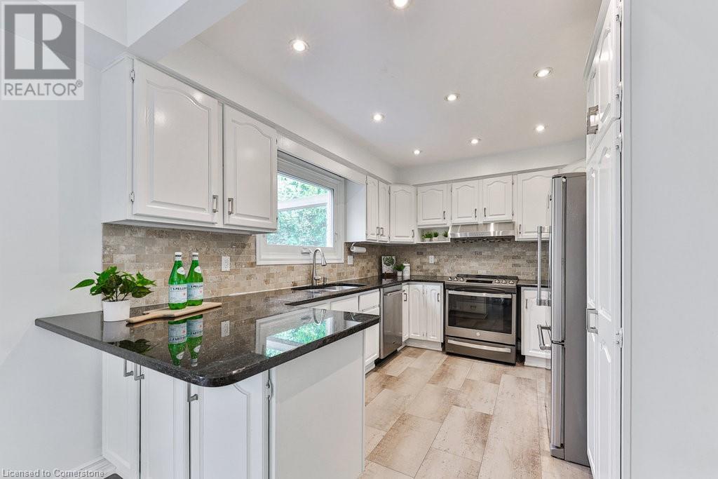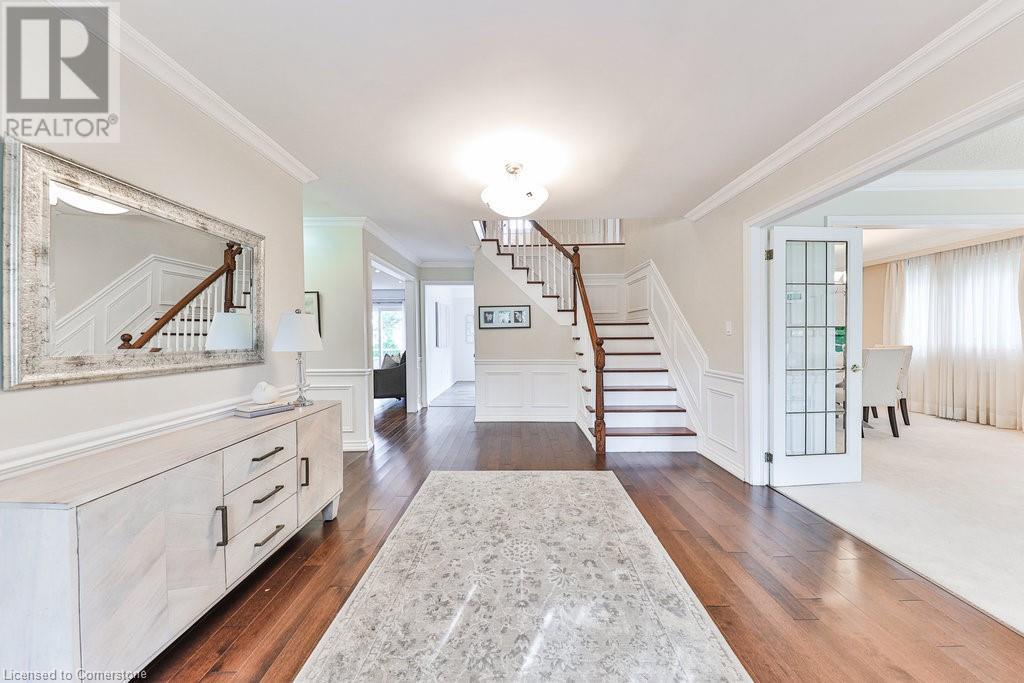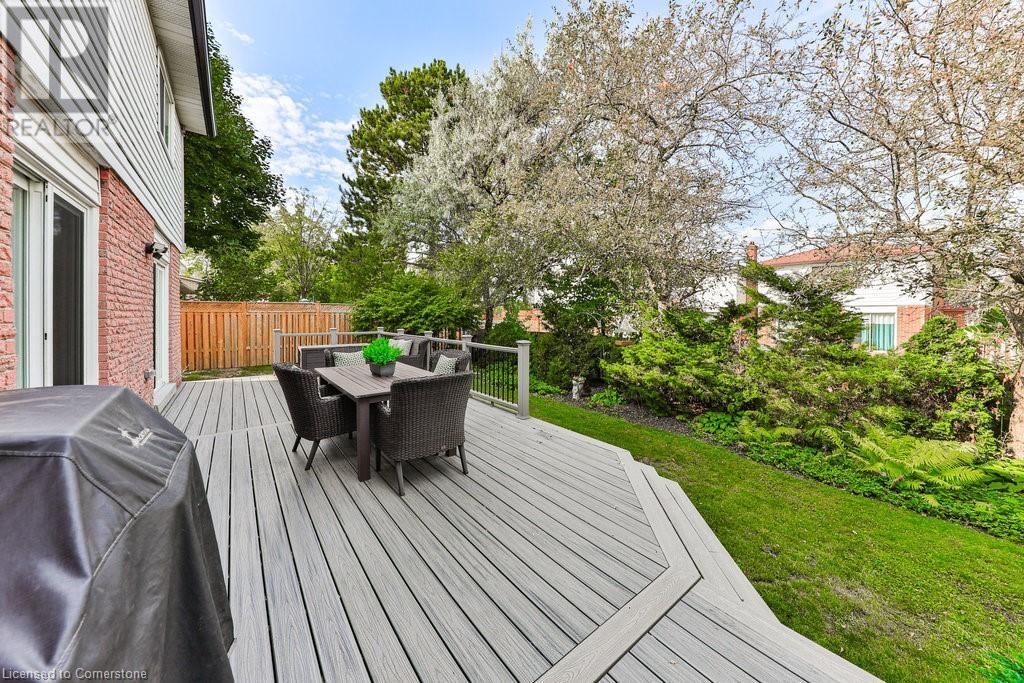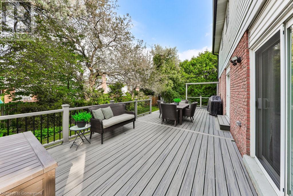 Unparalleled living experience in rarely offered Tyandaga Highlands, Burlington's best kept secret. Nestled in Burlington's prestigious neighbourhood & steps to hours of hiking on escarpment trails. This 4+1 bed, 3.5 bath home offers over 3900 sf of finished living space and is located on a quiet court, providing privacy & tranquility on a spacious lot. A welcoming foyer leads to a beautifully designed main floor. Unwind in the cozy family room w/ a gas fireplace, or host elegant dinners in the living & dining rooms with French doors. The kitchen features s/s appliances, granite countertops, and a generous dining area that flows seamlessly onto the deck, perfect for outdoor enjoyment. The primary bed is a private retreat with a walk-in closet and a luxurious 4pc bath. Three additional bedrooms offer comfort for family or guests. The fully finished basement provides versatile space for an office rec room, along with ample storage. This home combines elegance and functionality, making it a true gem. (id:55009)