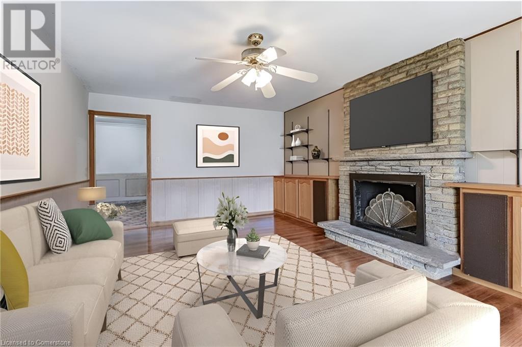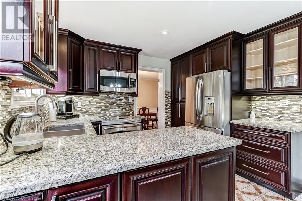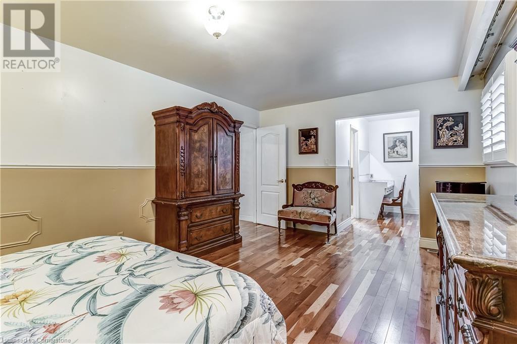 This 5+2 bedroom home is a hidden treasure in family friendly Brant Hills. Owned solar panels (with monthly rebate from hydro). Large principal rooms, potential for 2 more bedrooms in the spacious finished basement with gas fireplace, 3 pc bath and wet bar. Upper lvl boasts 5 large bedrooms with California shutters, master with en-suite and main bath with double sinks. Main lvl features an eat-in kitchen, large living/dining room and a family room with wood burning fireplace and patio doors to the fully fenced pool sized lot. Minutes to Sinclair park, close to hwys and shopping. This is a must see home. (id:55009)