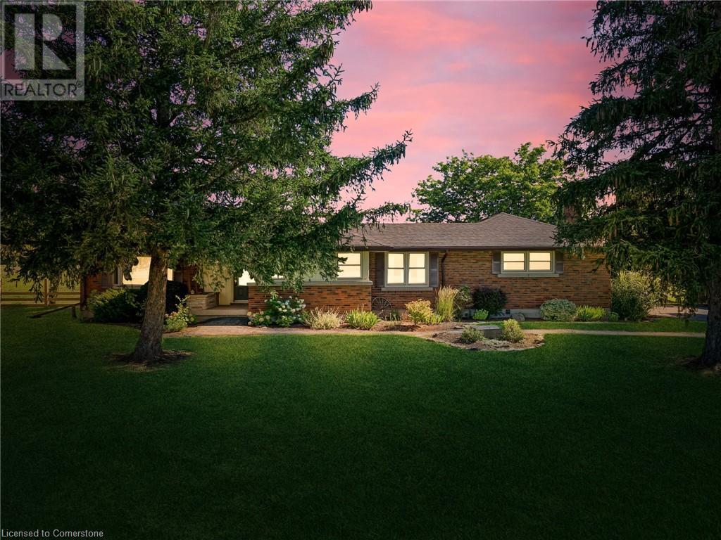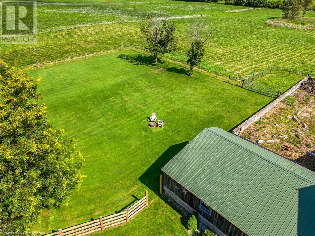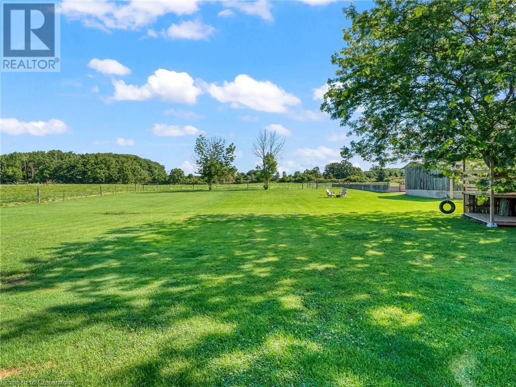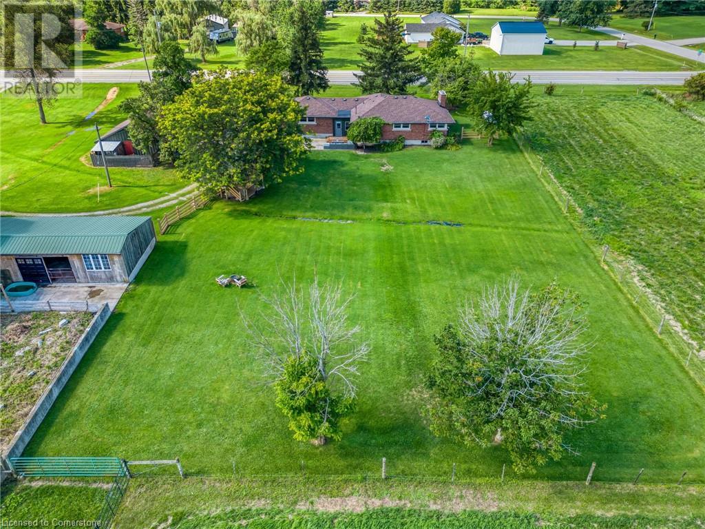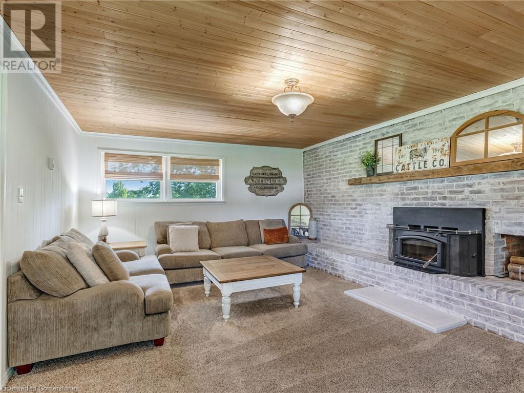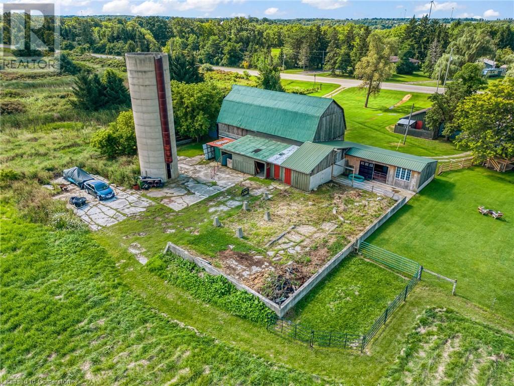 This extensively updated 3+1 bedroom bungalow is situated on a 5.78-acre property, perfect for a horse/hobby farm and nestled in a picturesque setting, surrounded by serene fields and forest landscapes. The property is rich in features, including a 24'x21' double garage, a sturdy 55'x29' hip roof barn with hay loft, and an attached 40'x19' single-story north section. Additional structures include an 18'x55' lean-to, a 10'x12' shed, a silo, a pond, and more. The charming brick bungalow has a spacious family room with a wood-burning fireplace, a living room with rustic wood ceiling, new flooring and propane fireplace, a bright kitchen with granite countertops, main floor laundry and an updated full bathroom. Basement offers the family even more living space with multiple storage spaces, partially finished rec room, and additional bedroom. This is a value packed package for someone looking for space/hobby farm. (id:55009)