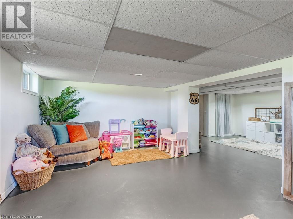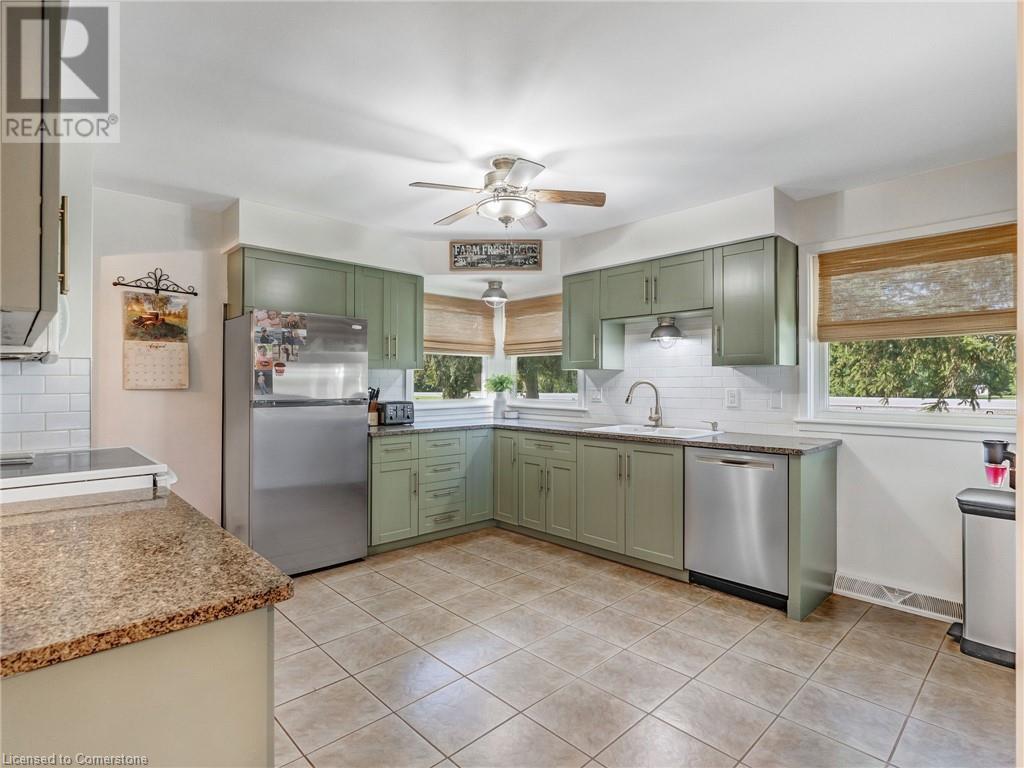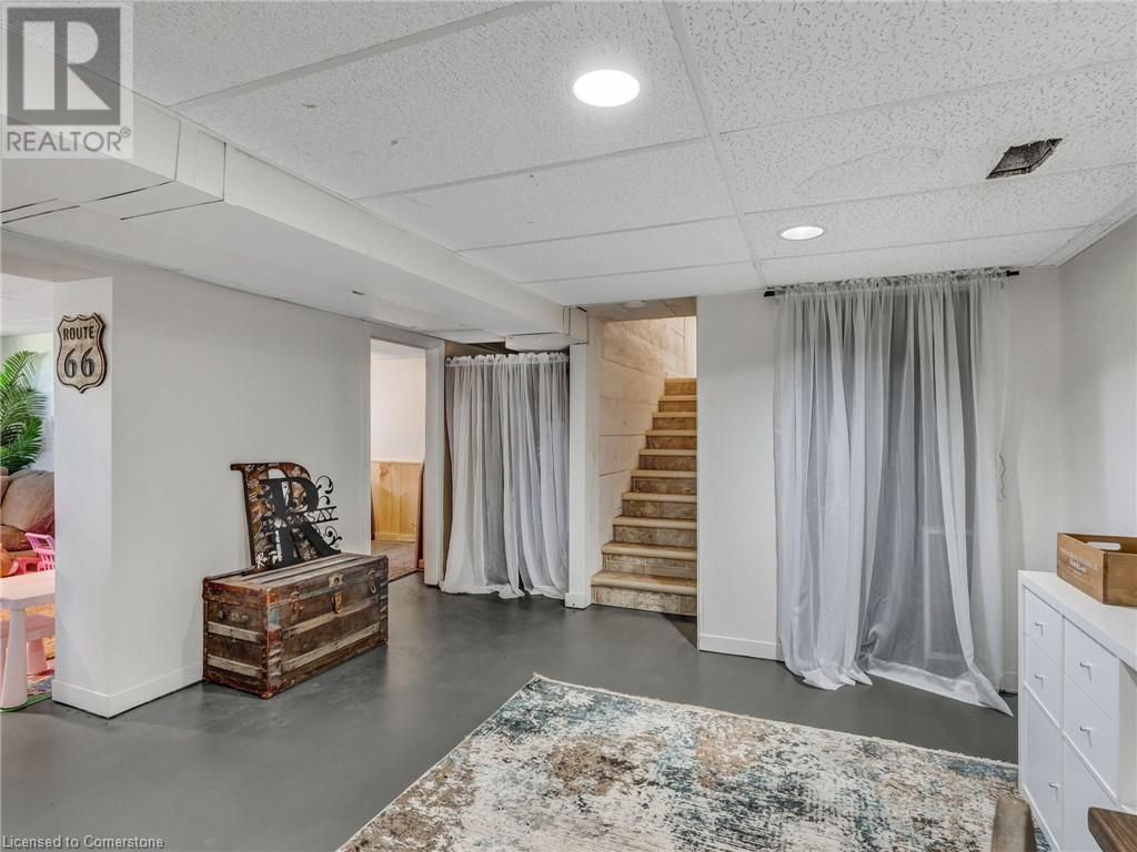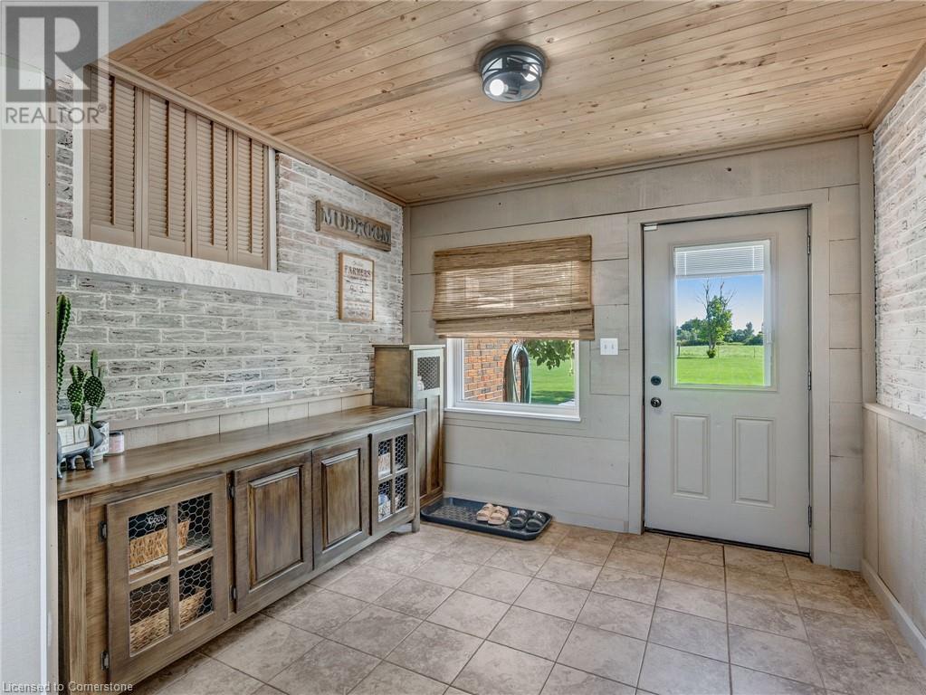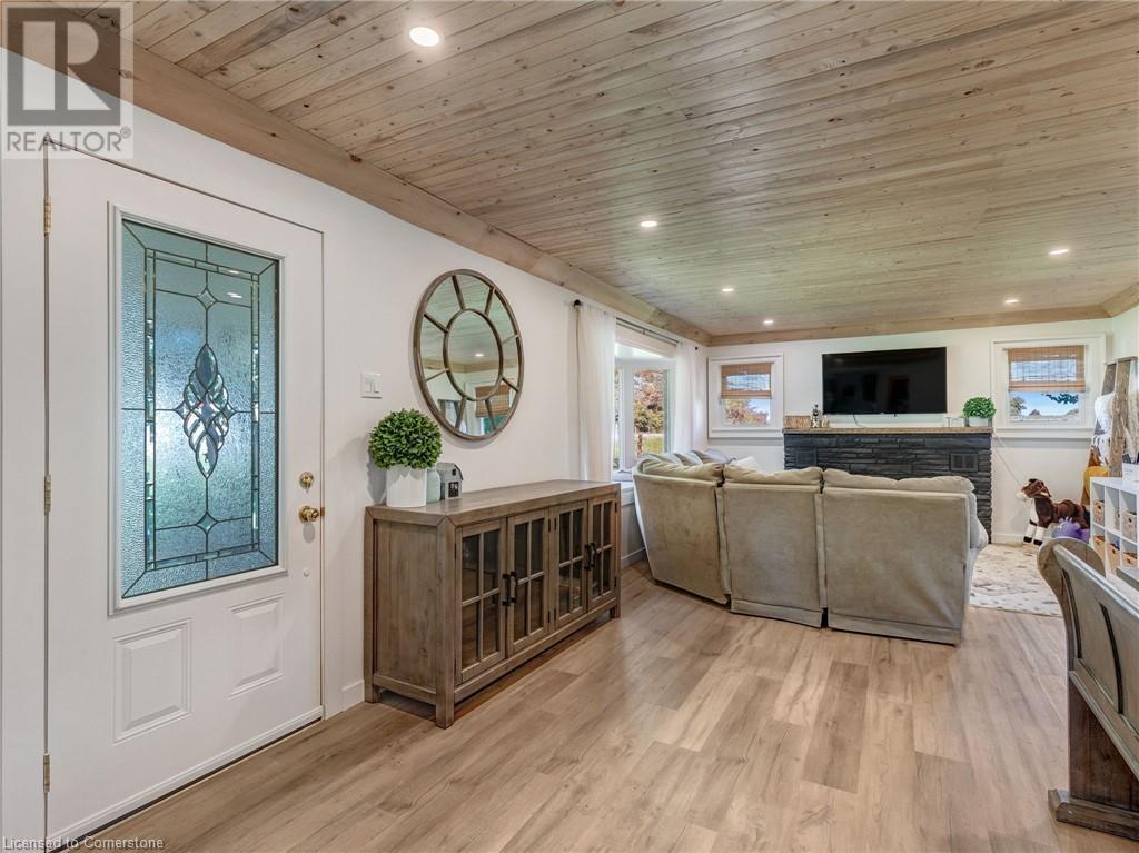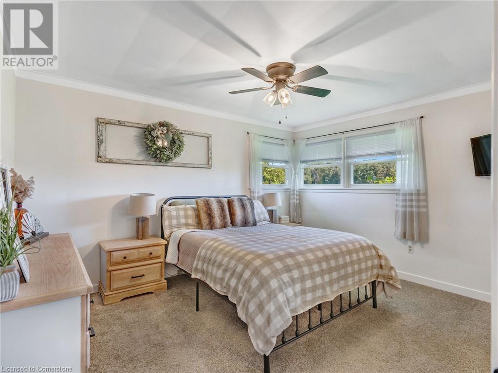 This extensively updated 3+1 bedroom bungalow is situated on a 5.78-acre property, perfect for a horse/hobby farm and nestled in a picturesque setting, surrounded by serene fields and forest landscapes. The property is rich in features, including a 24'x21' double garage, a sturdy 55'x29' hip roof barn with hay loft, and an attached 40'x19' single-story north section. Additional structures include an 18'x55' lean-to, a 10'x12' shed, a silo, a pond, and more. The charming brick bungalow has a spacious family room with a wood-burning fireplace, a living room with rustic wood ceiling, new flooring and propane fireplace, a bright kitchen with granite countertops, main floor laundry and an updated full bathroom. Basement offers the family even more living space with multiple storage spaces, partially finished rec room, and additional bedroom. This is a value packed package for someone looking for space/hobby farm. (id:55009)