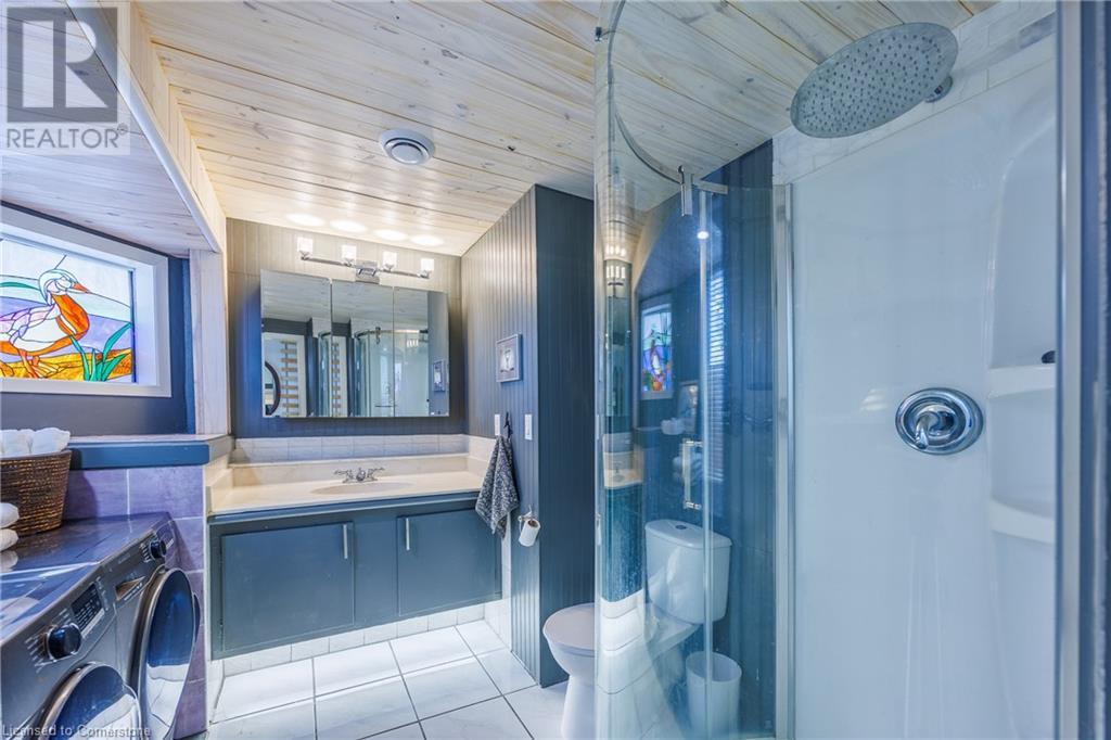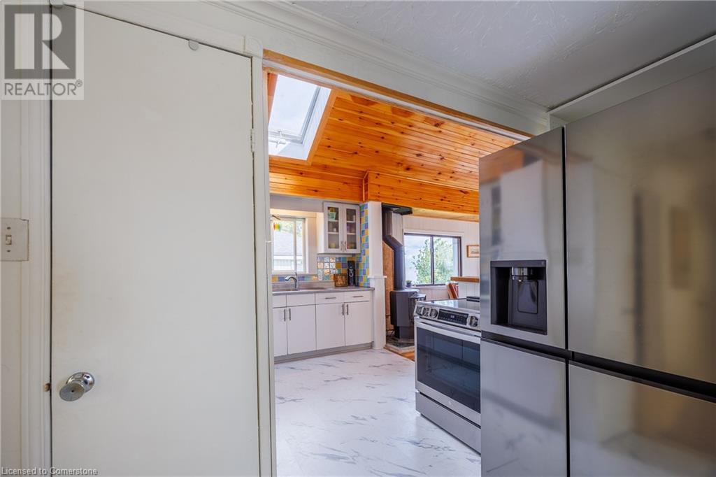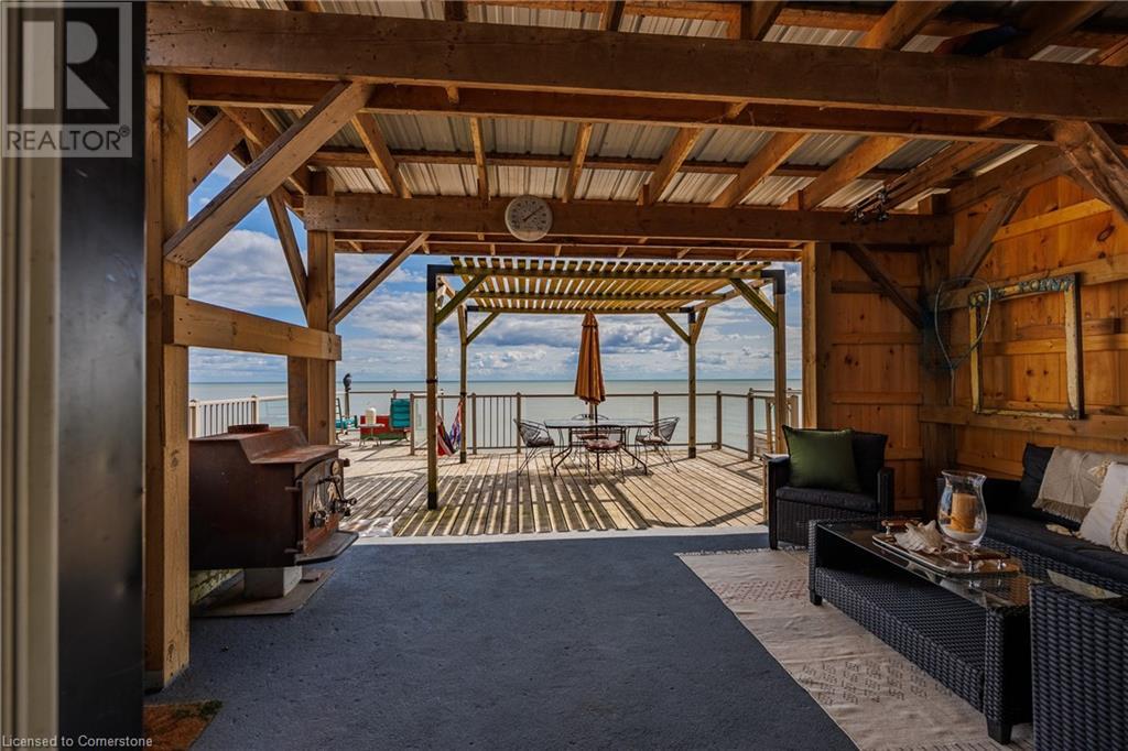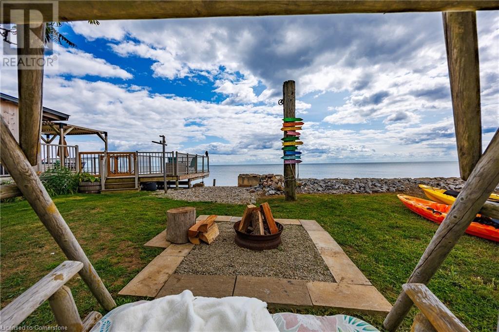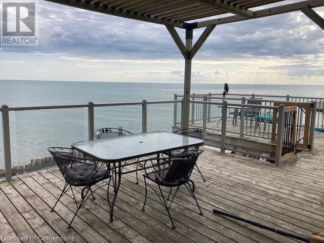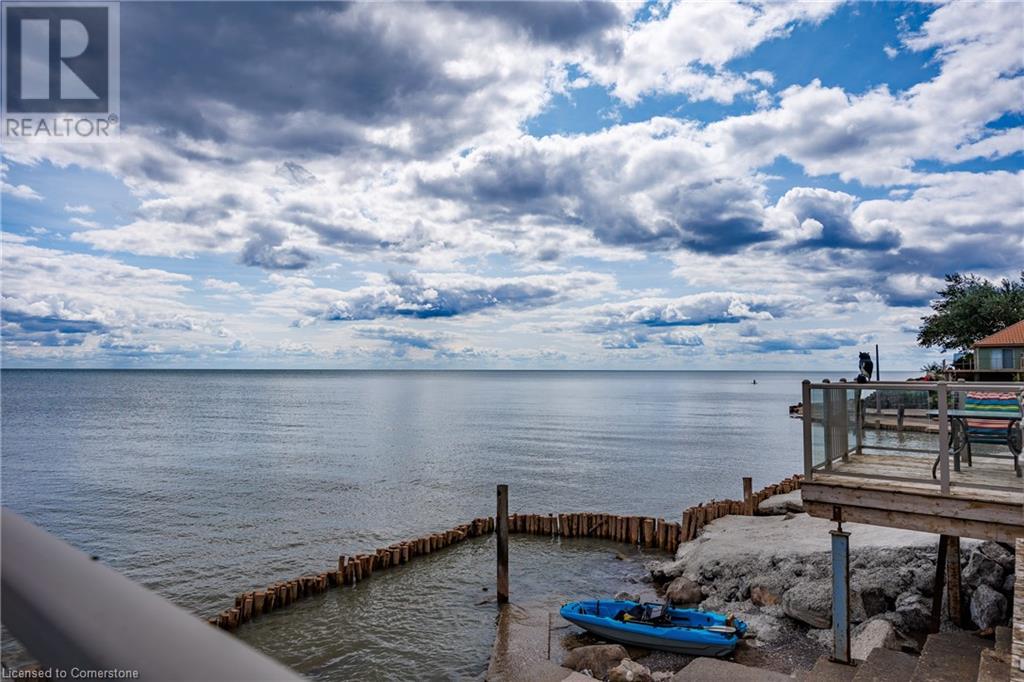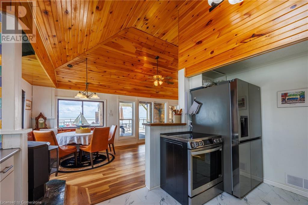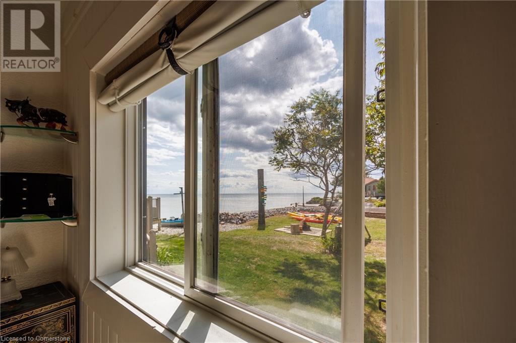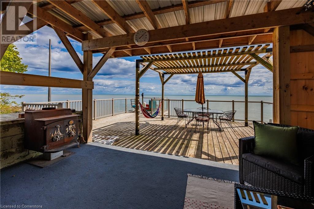 Fantastic lake views! Cute cottage on Hasting Drive - a retreat away from the crowds. Extensive outdoor living space with a deck perched on the edge of Lake Erie, and extending over 40 feet along the lakeshore. Extensive erosion protection with concrete blocks, boulders, and poured concrete along the shoreline with steps and launching space provided for kayaks or small boats. Open concept dining /living area with vaulted pine ceiling integrates nicely with a shaded outdoor sitting area. Updated kitchen with plenty of storage space as well as skylight to provide extra natural light. Stainless steel kitchen appliances included along with washer and dryer (all new in 2023). Two bedrooms (one with a vaulted ceiling) and a third room currently used as an office. Bathroom totally redone in 2023 with laundry space added. Heating and cooling provided by a ductless mini split heat pump. For those colder nights a free standing propane fireplace provides extra warmth. Extra lot provides space for a firepit, storage sheds and outdoor storage of water toys or other items. Adjacent to Big Creek National Wildlife Area - lots of opportunity for wildlife viewing with huge flocks of swans, cranes, ducks and more during migration and lots of turtles during the summer. The Sellers have directed that 221 Hastings Drive and 223 Hastings Drive must be purchased together. (id:55009)