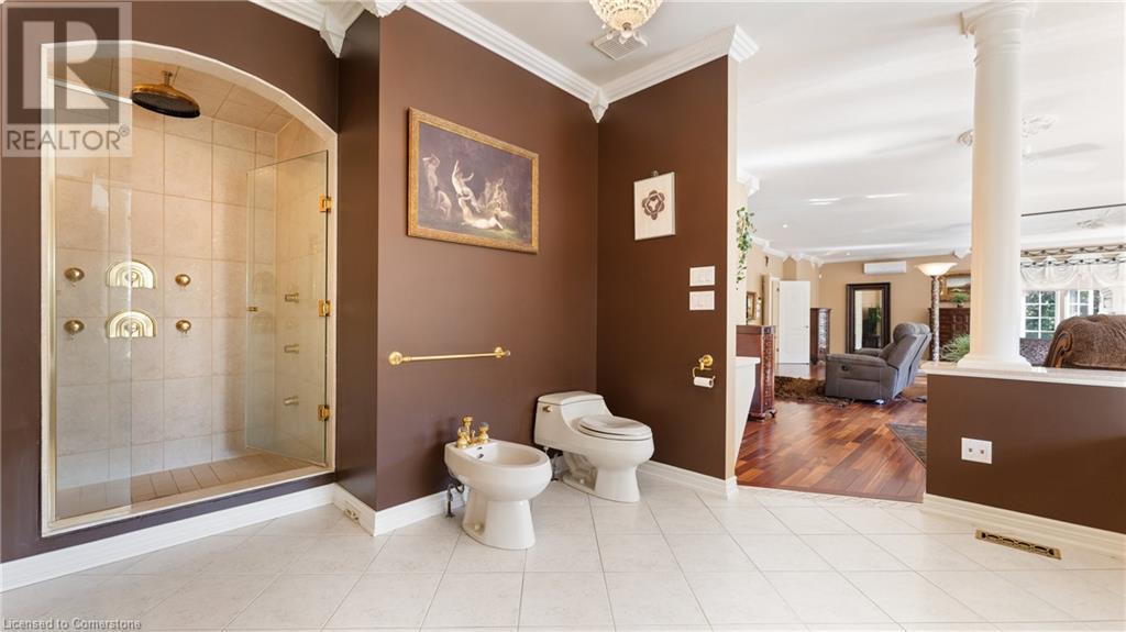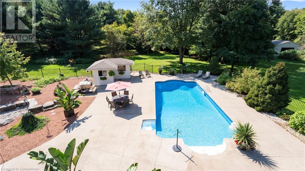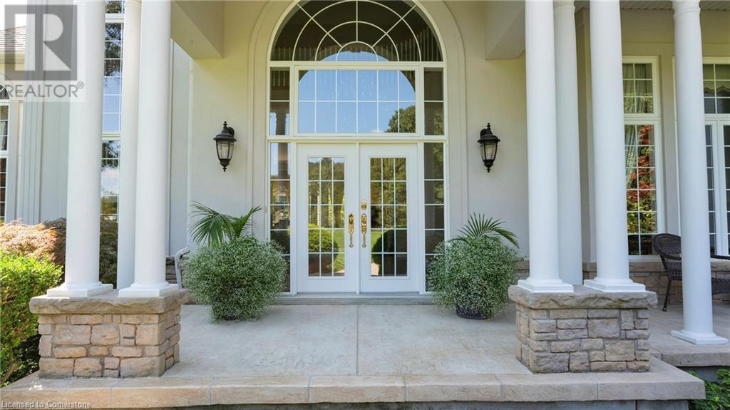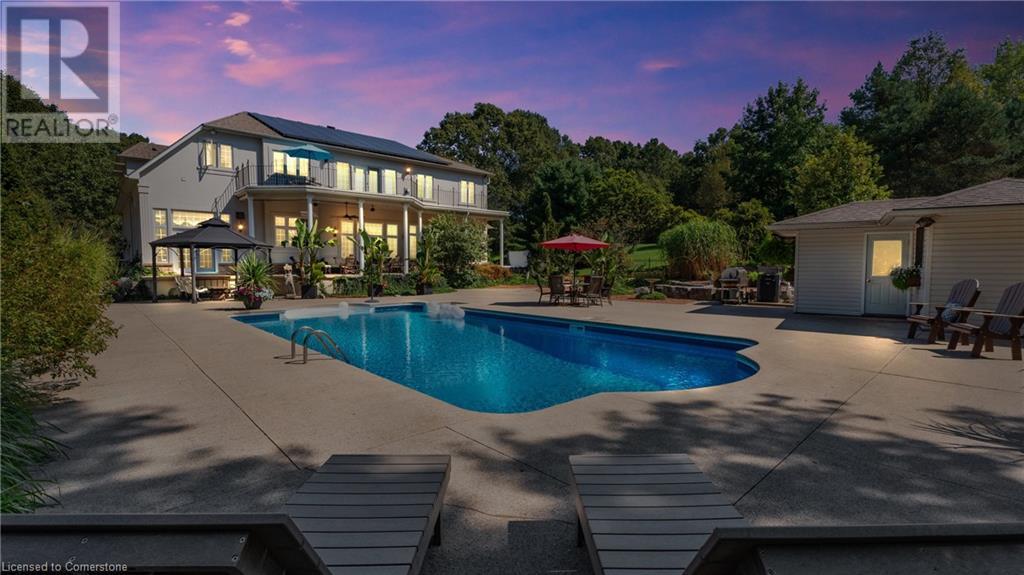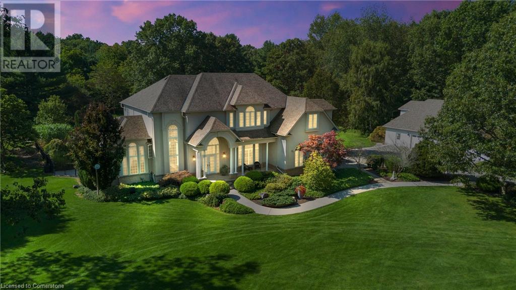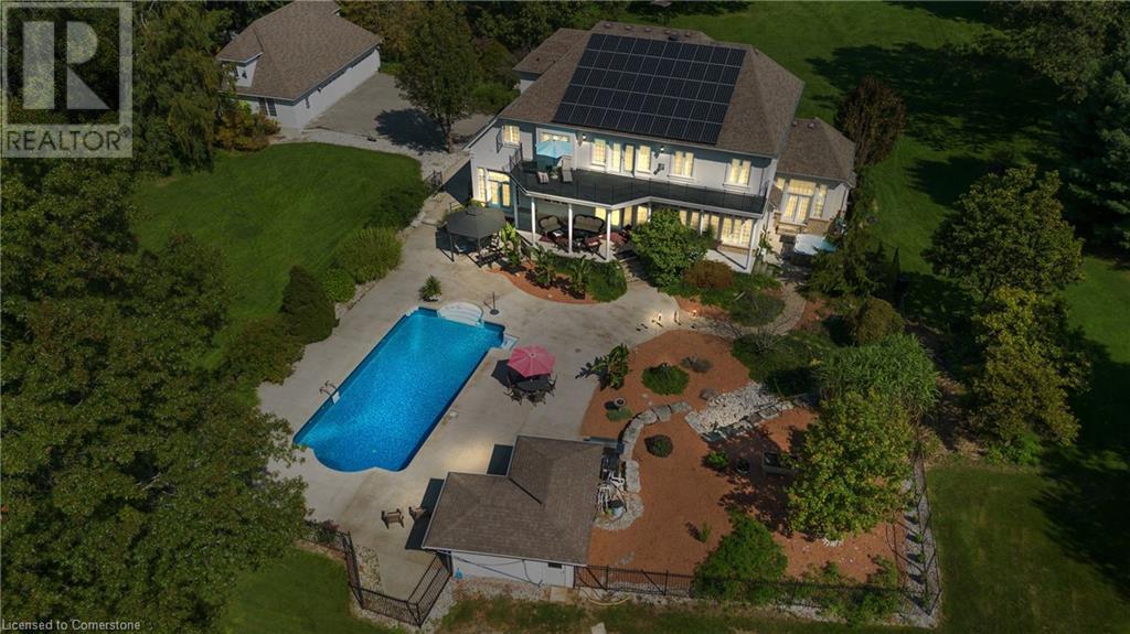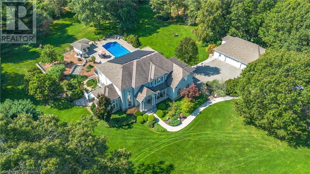 Welcome to 224 Hillcrest Rd, Simcoe. This majestic 2-story, 4-bedroom, 4-bath stone & stucco estate is nestled on 21 private acres, surrounded by mature trees, lush landscaping, and a 1-acre horse pasture. Enjoy complete privacy, w/a 1-km groomed walking trail circling the property, creating your own peaceful sanctuary. Built in 2000, this one-of-a-kind home spans over 7,000 sq. ft. Step inside to be greeted by soaring 22’ ceilings, 4 fireplaces and an abundance of natural light. The gourmet kitchen boasts top-of-the-line appliances, perfect for culinary enthusiasts. Entertain guests in the formal dining room or relax in the spacious entertainment area. A main-floor office/den offers a quiet retreat, while the luxurious details throughout the home, such as Swarovski Crystal Chandeliers, solid brass Baldwin hardware & tigerwood flooring speak to the impeccable craftsmanship. The second floor features 3 bedrooms, each with 10’ ceilings, including a master suite designed for ultimate relaxation. The master offers a spa-like ensuite & a private deck overlooking your backyard oasis. The fully finished lower level includes a gym, a rec room with a pool table, wet bar, bedroom and convenient access to the attached 2-car garage. Step outside to your private outdoor retreat, complete with a 40x20 heated saltwater pool, sauna & beautifully landscaped grounds. Additional features include a 30x50 detached garage w/4 bays, a loft, dog kennel, 16-zone automatic sprinkler system, a natural gas generator, trailer campsite with hookups for water/septic/hydro. A solar-paneled roof and a stunning tree-lined paved driveway complete this incredible estate. This property has been meticulously maintained and offers countless upgrades. Located in Norfolk County’s beautiful south coast, you're just a short drive to beaches, marinas, golf courses & more. Come experience the natural beauty and thriving community of Norfolk County! (id:55009)