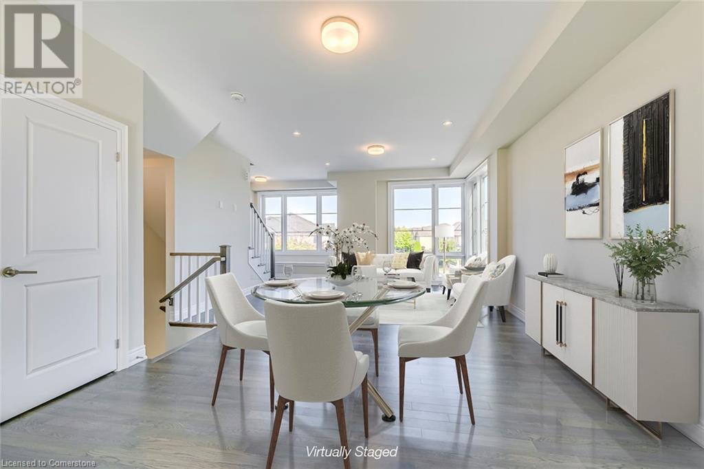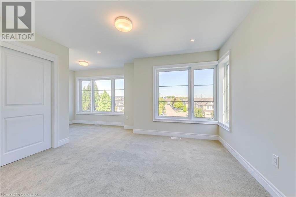 $321.43 MonthlyIntroducing 2273 Turnberry Road, #8, a brand new executive end-unit townhome nestled within an exclusive enclave in Millcroft! This residence offers a lifestyle of refined luxury, set amidst a community renowned for its top-rated schools, Millcroft Golf and Country Club, vibrant shopping, dining options, and easy highway access. The extended-height windows flood the interior with natural light. Quality built by Branthaven, the Knightsbridge model boasts approximately 2,415 square feet of luxurious living space (including 270 square feet in the finished basement) and over $60,000 in upgrades. The main level hosts a guest bedroom with a four-piece ensuite. The open-concept second level, with 9’ ceilings, is perfect for entertaining, and features an expansive living room, dining room, and a chef-inspired kitchen equipped with quartz countertops, large island, and French door access to terrace. Ascending to the third level, discover the oversized two primary retreats complete with its own spa-like ensuite and walk in closets. A generous-sized laundry room and tons of storage space complete this floor. Outdoor entertaining is effortless on the partially covered terrace with a gas barbecue hook-up and plenty of space for a dining area. Additional highlights include finished basement, with a spacious recreation room and ample storage space in the basement, along with inside access to the oversized two-car garage. This luxury townhome is situated on the premier lot of this subdivision and offers ideal south exposure and panoramic views of the Niagara Escarpment. (some images contain virtual staging) (id:55009)